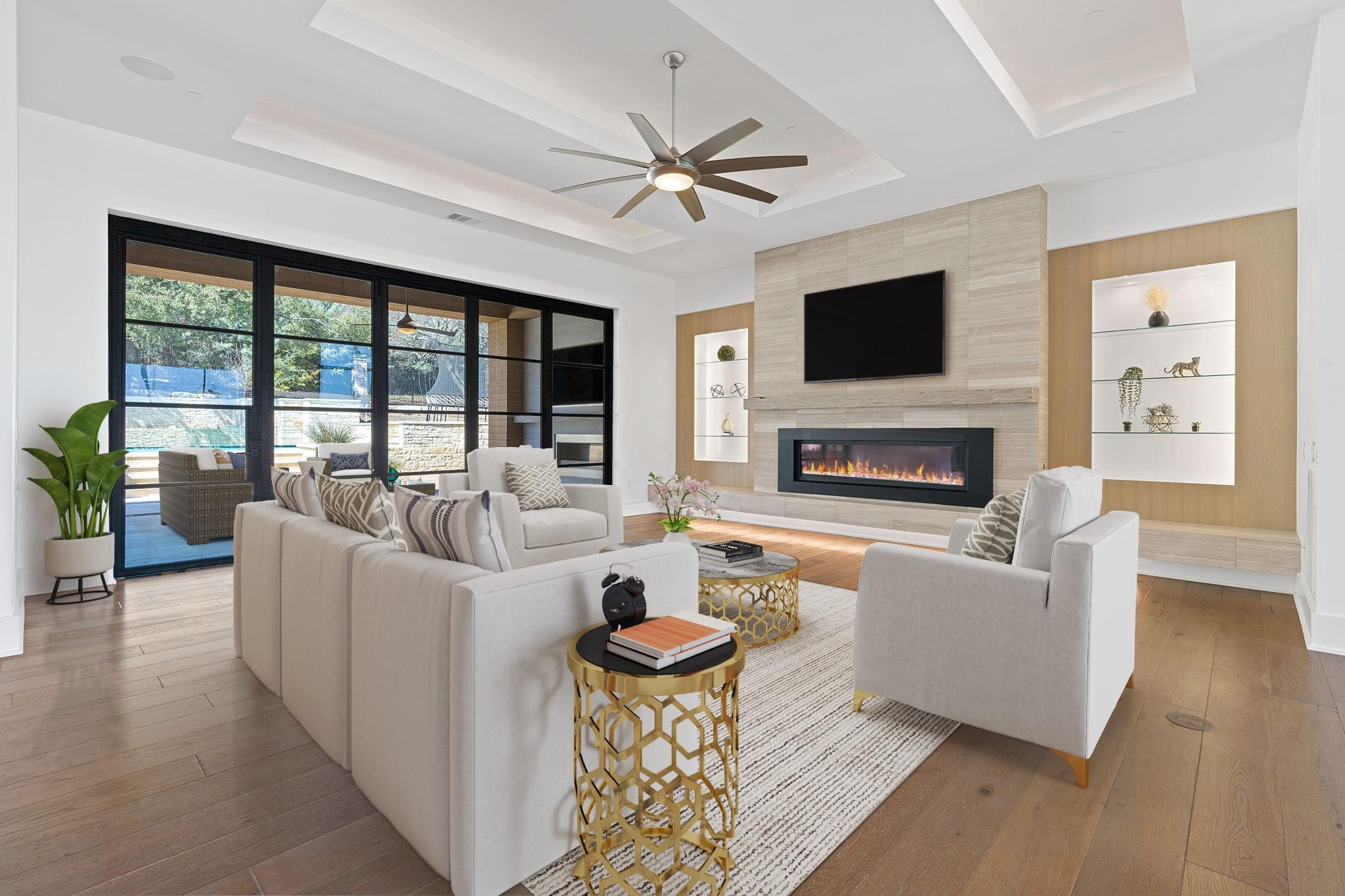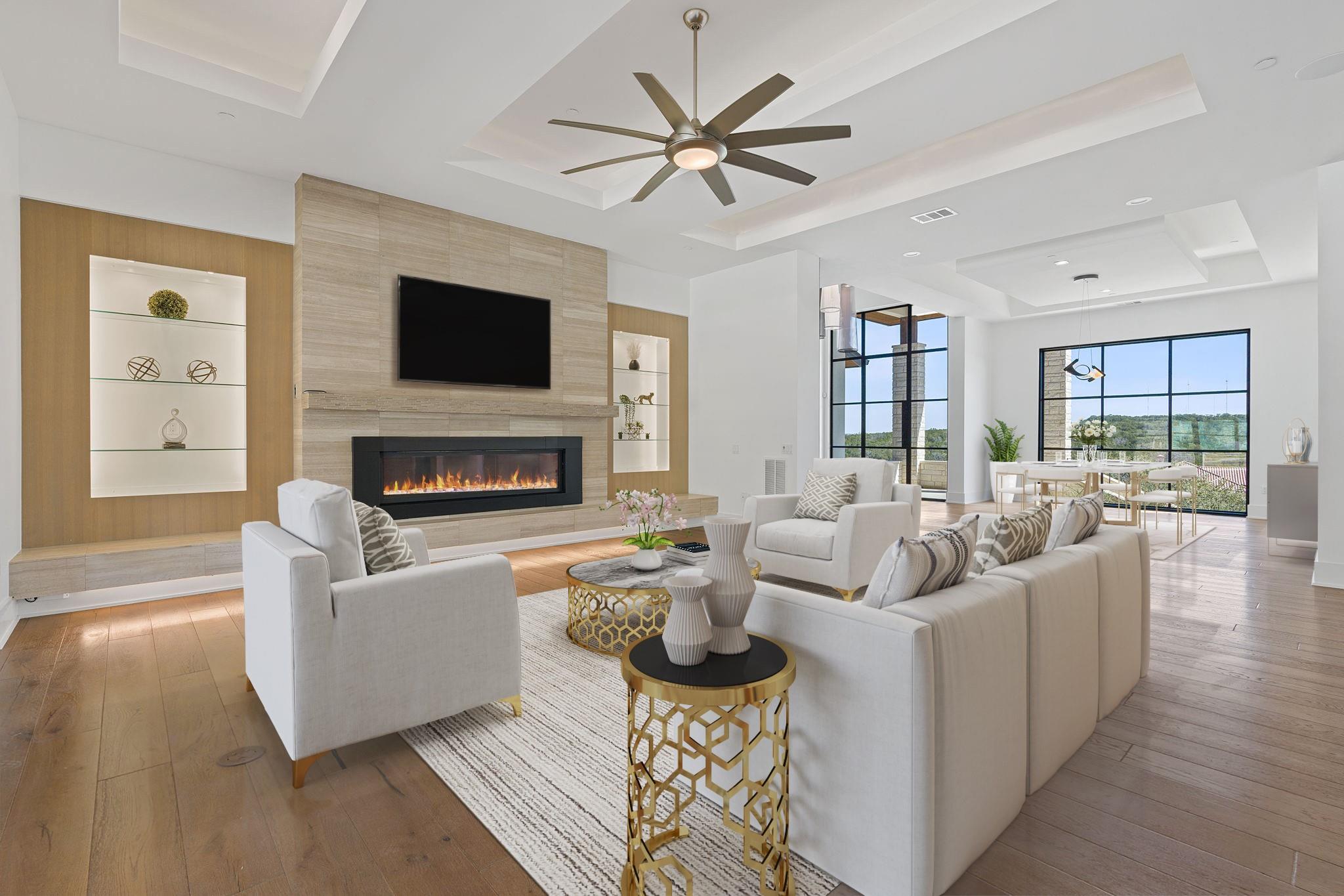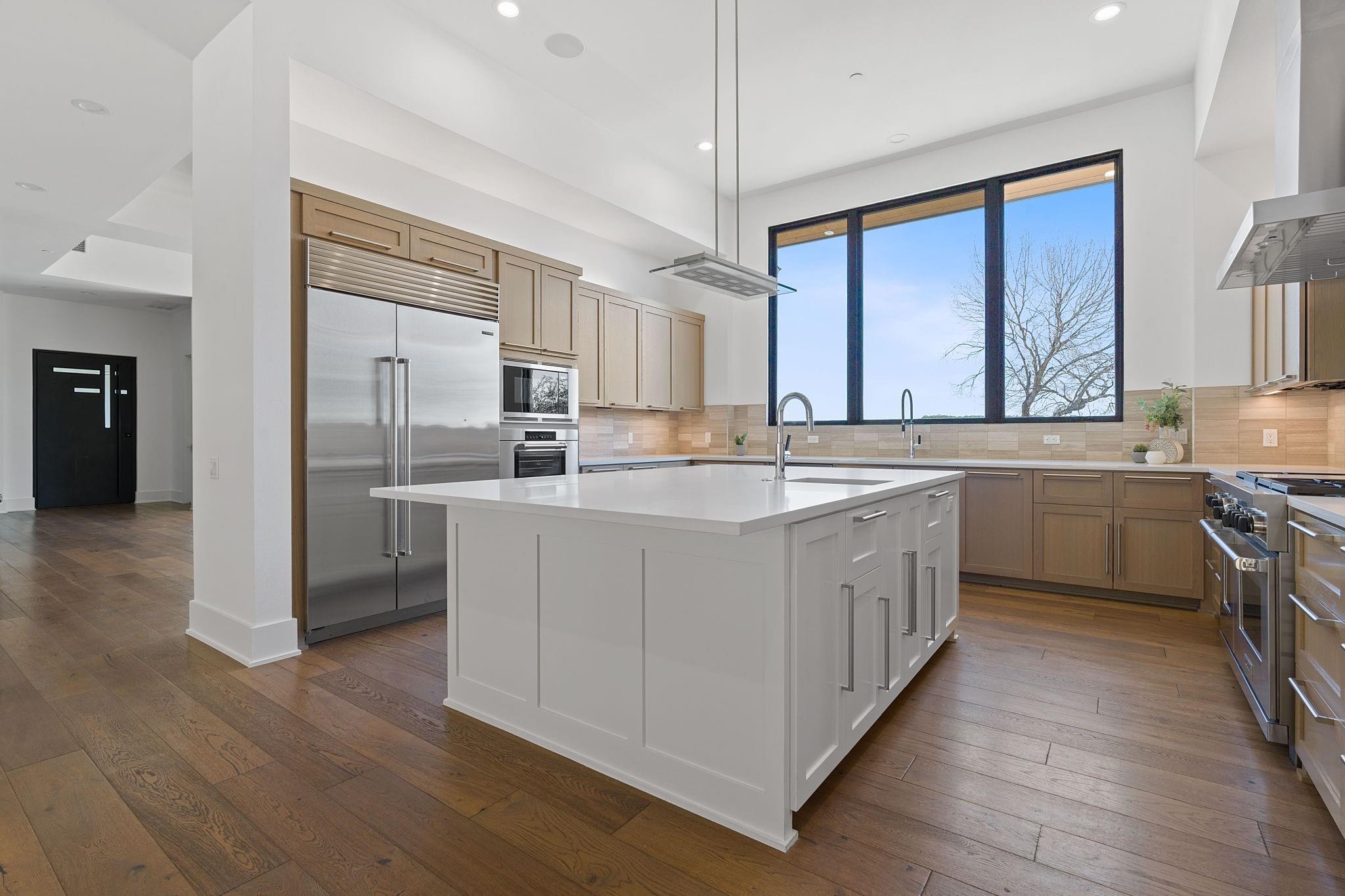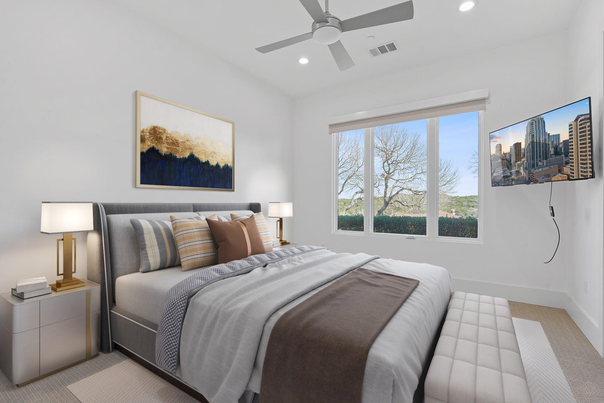 Welcome to your hilltop oasis in the heart of West Austin, where modern luxury meets serene comfort. This stunning home, nestled on a sprawling 1.2 acre estate, offers an idyllic retreat from the hustle and bustle of city life. Perched majestically atop the hill, the home boasts breathtaking views of the surrounding landscape. Complete with a cozy cabana and a crackling fireplace, perfect for unwinding with family and friends on cool evenings. The main level of the home exudes an inviting ambiance, with an open floor plan, three spacious bedrooms, a study, and a media room on the main llevel, providing ample space, and two bedrooms+ gameroom upstairs. Each bedroom features its own luxurious ensuite bath. The gourmet kitchen is a chef's dream come true. Equipped with top-of-the-line commercial-grade appliances, including a 48" Wolf Range with double oven, a Sub Zero refrigerator, built-in toaster oven, microwave, and two beverage coolers. Despite its grandeur, the home exudes a cozy charm, ensuring that every corner feels inviting and intimate. Don't miss the 4 Car Garage with ceilings high enough for a lift in all 4 bays. Located in the highly sought-after Eanes Independent School District and boasting the lowest tax rate in the city at 1.36%, this home offers both luxury and practicality in equal measure.