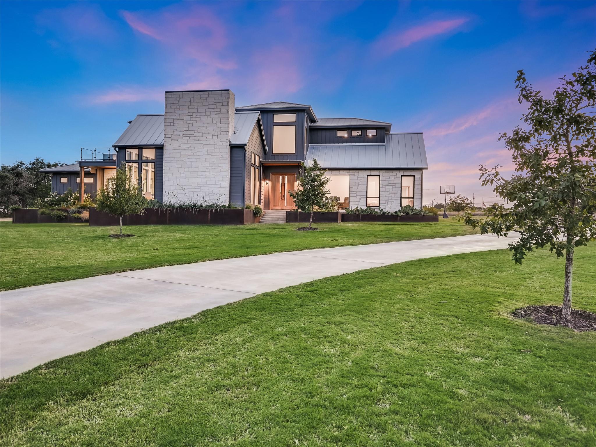 Welcome to this exceptional property that perfectly blends modern architecture with sophisticated design elements. From the moment you arrive, you'll be captivated by the sleek lines and contemporary appeal of this stunning home.Large windows throughout flood the interior with natural light, creating a bright and airy ambiance. The seamless integration of indoor and outdoor spaces allows for breathtaking views of the surrounding landscape, while providing a sense of serenity and tranquility.The pristine kitchen is a chef's dream, boasting high-end appliances, sleek cabinetry, and ample counter space. A large pantry offers plenty of storage space, keeping your kitchen organized and clutter-free.This charming outdoor space provides a welcoming retreat and adds to the overall curb appeal of the property. Upstairs, a balcony awaits, providing an elevated vantage point to admire the surroundings. Whether you're enjoying a quiet moment with a book or savoring a morning cup of tea, this balcony offers a serene escape. Indulge in the ultimate entertainment experience in the media room, where you can enjoy your favorite movies or host game nights with friends and family. Step outside into the expansive back yard and discover an outdoor kitchen that is perfect for hosting unforgettable gatherings. Embrace the luxurious lifestyle that awaits and make this house your dream home. Additional features include hardwood flooring, custom tile work, a three-car garage for ample parking and storage, and a wildlife ag exemption that helps keep taxes low. Convenience is at your fingertips with the property's proximity to highly rated schools in the Wimberley Independent School District (WISD).Schedule a showing today and experience the perfect blend of modern living and outdoor paradise.