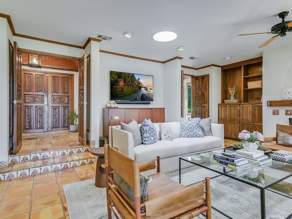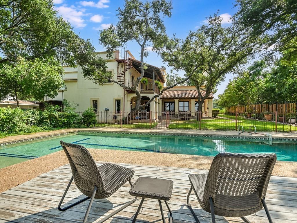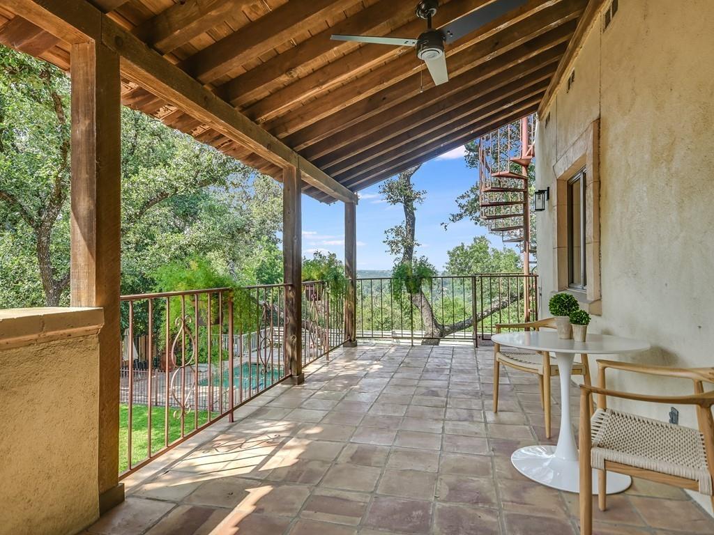 This character-filled home offers just over a half-acre private lot and stunning Hill Country views. Centrally located in Highland Park West, this home enjoys a great location close to everything, surrounded by beautiful nature. Live in as-is or put your stamp on this unique property. Distinctive style and details fill the interior, including saltillo tile floors, Talavera Mexican tile accents, and intricate millwork. The spacious 4-bed/3.5-bath floor plan offers plenty of flexible and family-friendly space with three living rooms. A lower-level portico winds around the property with stucco arches and a tongue-and-groove ceiling. The shady outdoor living room and dining area overlook a large backyard with mature oak trees, a swimming pool, and an unobstructed tree-top view. A covered second-floor balcony offers additional outdoor living space with even more expansive vistas. Minutes from Mount Bonnell, Bright Leaf Preserve, and the Colorado River. Enjoy excellent public and private schools –walkable to Highland Park Elementary– and proximity to 2222 and MoPac. Downtown Austin is fifteen minutes away.