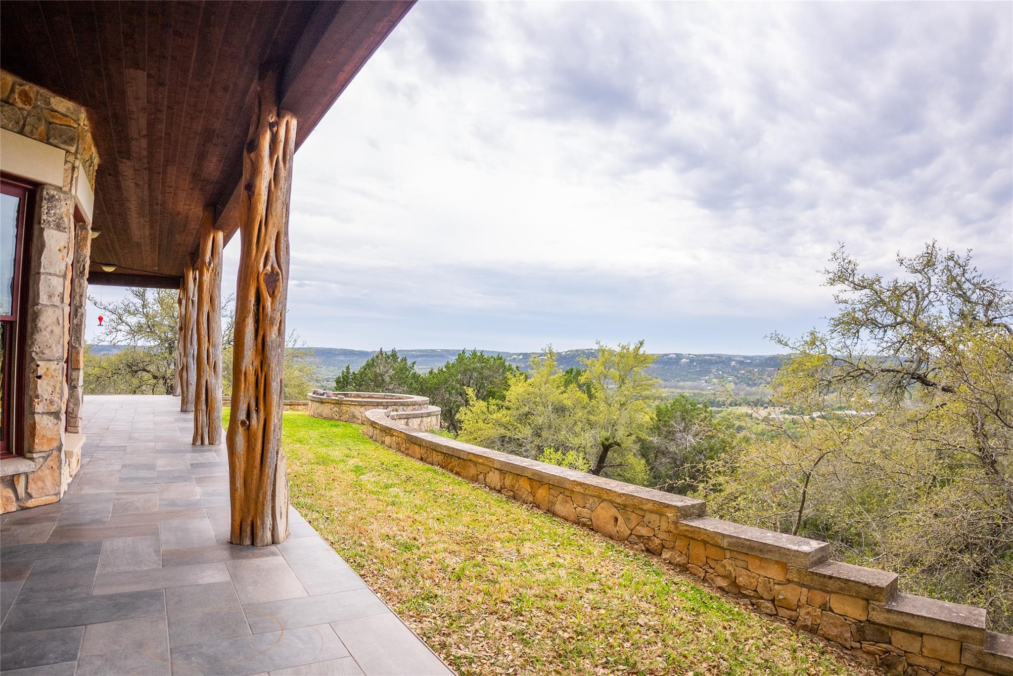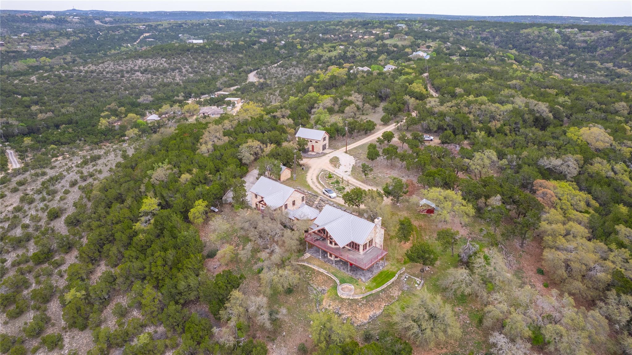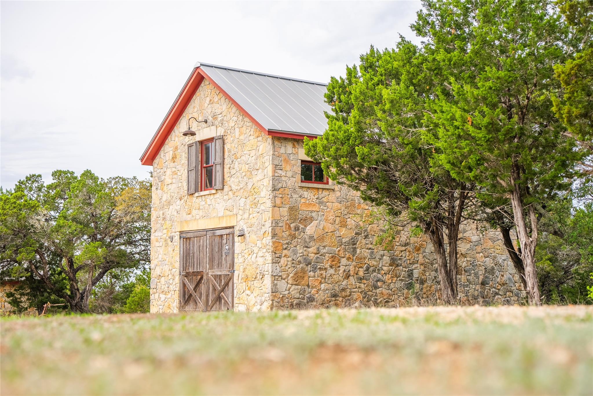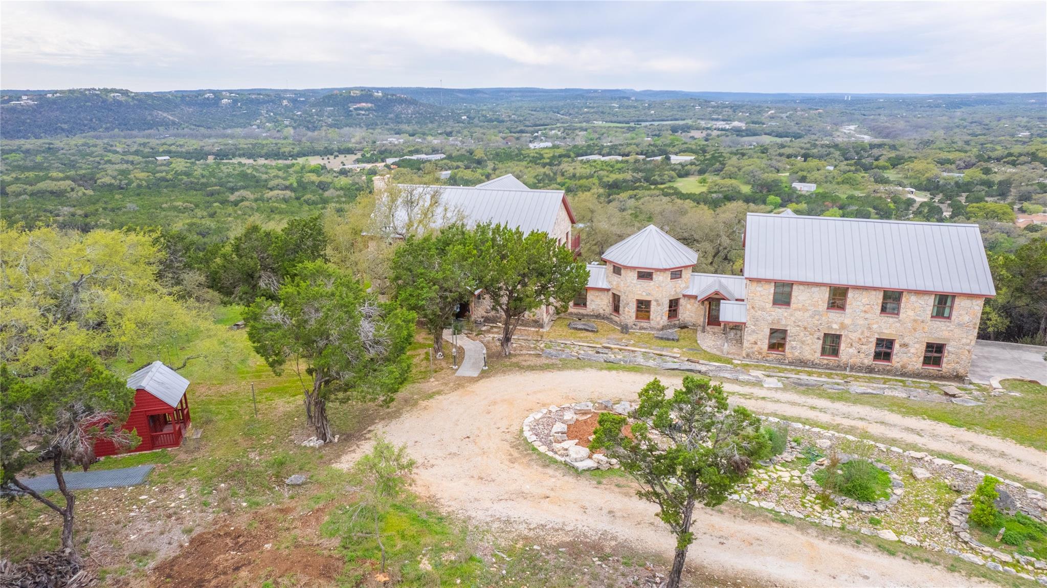 Buttercup Ridge Ranch presents an incredibly rare opportunity to own a stunning home/compound nestled on +/- 53.4 acres overlooking Wimberley Texas and the Blanco River Valley! This home is such an incredible artistic creation with superior quality and detail. Every single room of this two-story masterpiece capture the amazing views. The floorplan is unique and can offer multiple uses for the new owner. There are four bedrooms and three and a half bathrooms. Travertine tile floors are also in the home and bathrooms with beautiful tilework in the showers and upgraded fixtures throughout. The main portion of the home features the main living area with formal dining and breakfast area. The primary bedroom is upstairs with full bathroom and laundry. A beautiful cathedral ceiling with amazing woodwork connects the main portion of the home to the garage and another room that could be utilized as the fourth bedroom with a half bath. That room also connects to the upstairs apartment which additionally has an exterior entrance for privacy for guests. The apartment has two bedrooms and two full bathrooms, large living room and a kitchenette. Also, every room opens to a balcony or deck that captures the magnificent views! There are two outbuildings, a very nice storage building and a barn with an upstairs used as an art studio. This building has a half bathroom and can easily be finished out to utilize as living quarters. Both have matching masonry with stone from the property as well. The barn has very pretty lighting, tile flooring, and a wood-burning stove. There are many options for this space with the nice finish and plumbing in place. The land is amazing! There is significant elevation change creating the views, but the best part is the views aren’t isolated to the home. The ridge runs the length of the property and is covered in oaks creating a beautiful setting for additional uses including other homesites or subdividing etc. Great family compound or STR potential!