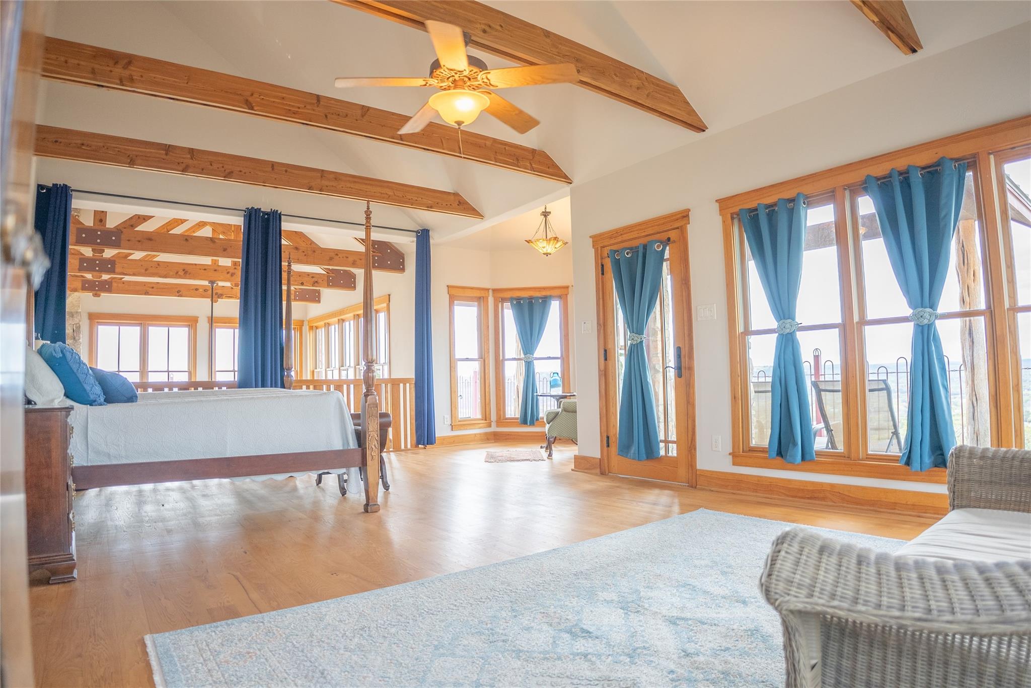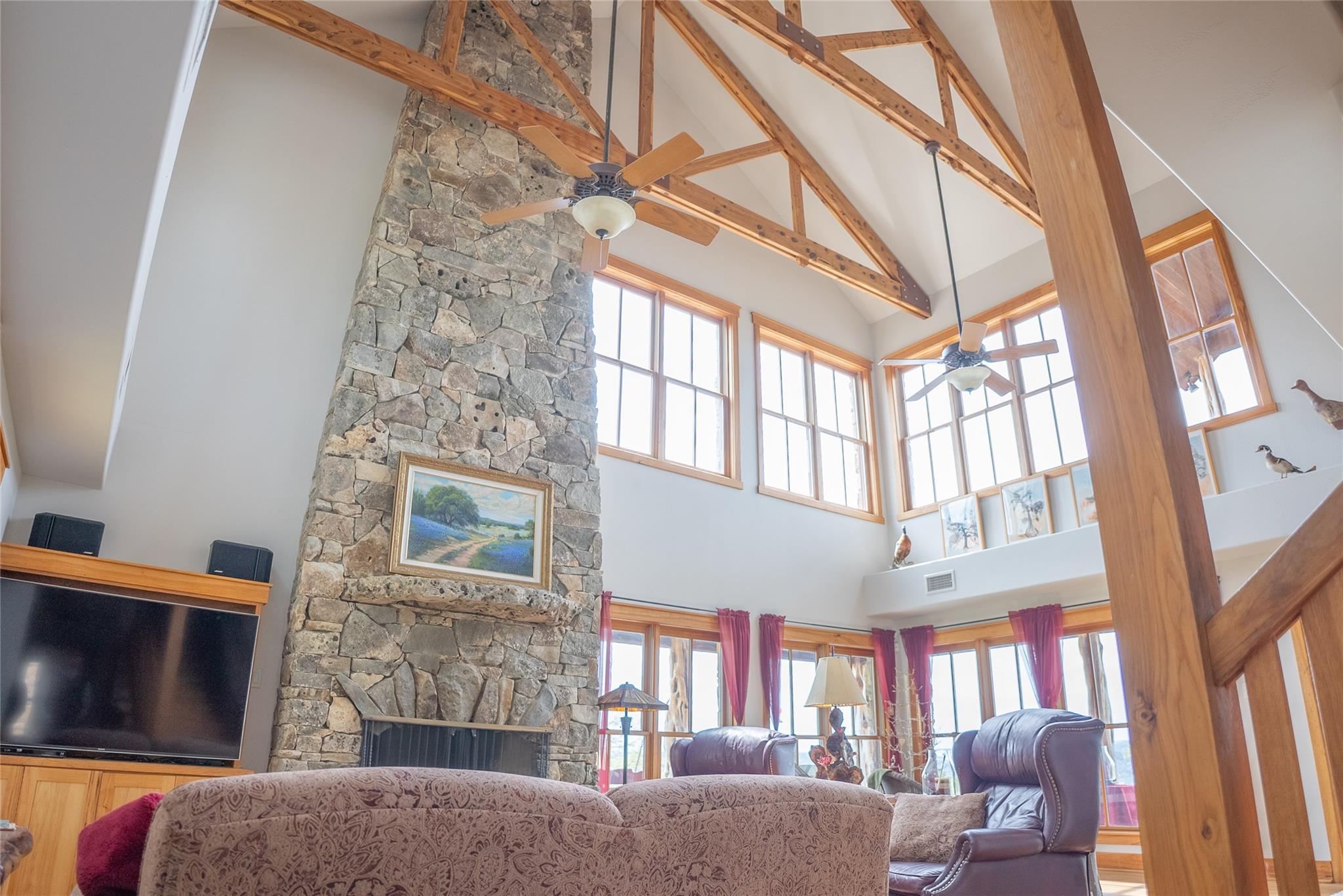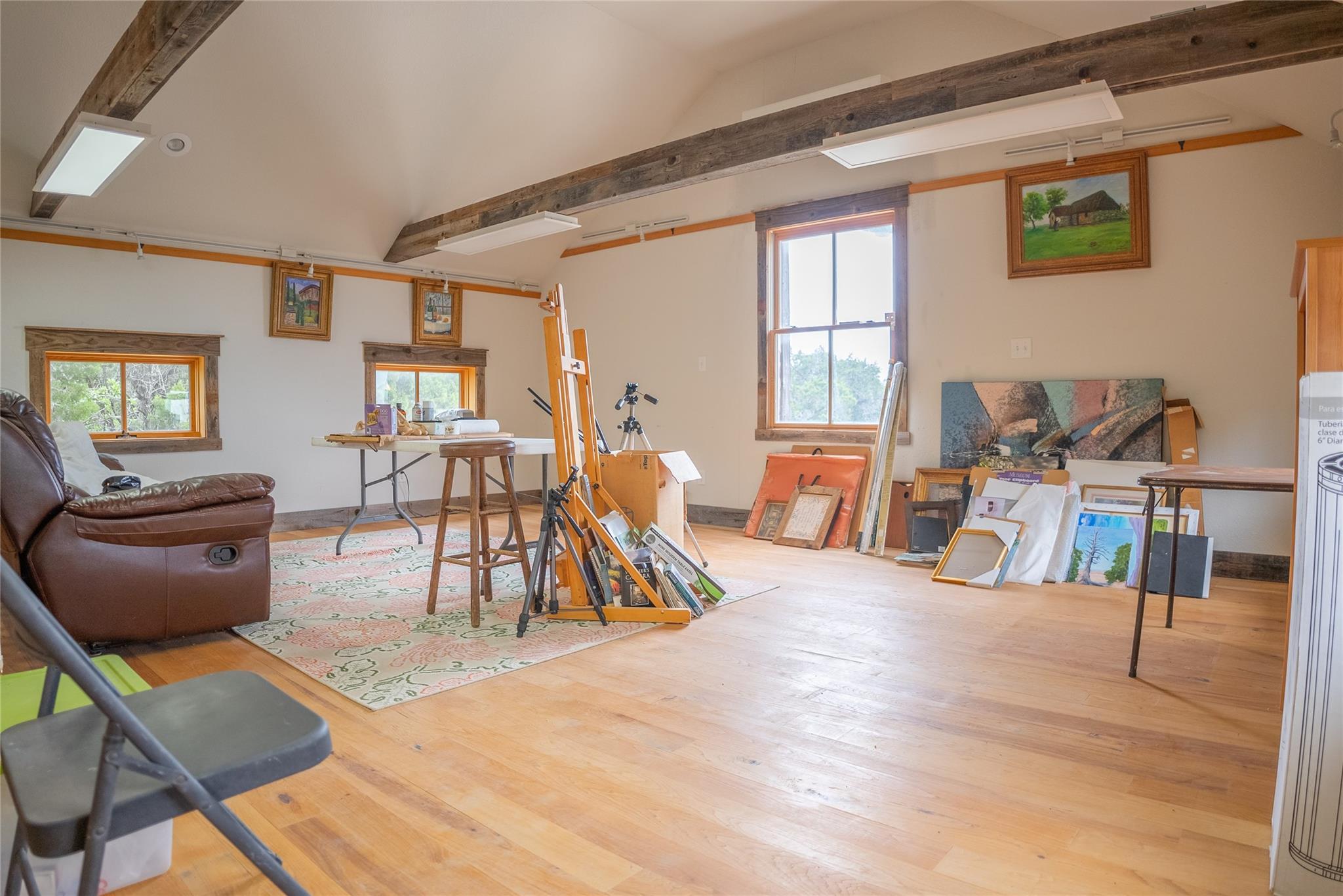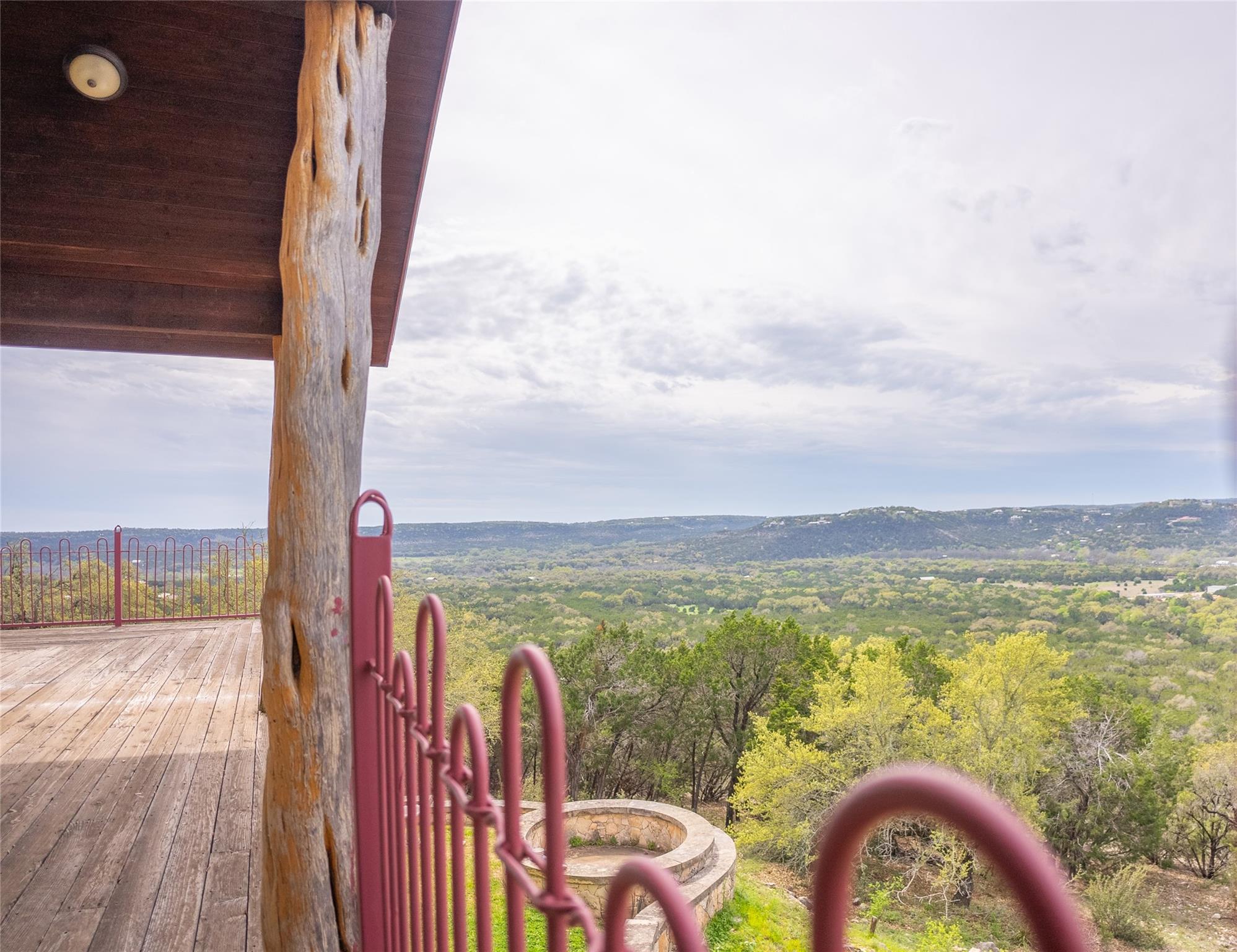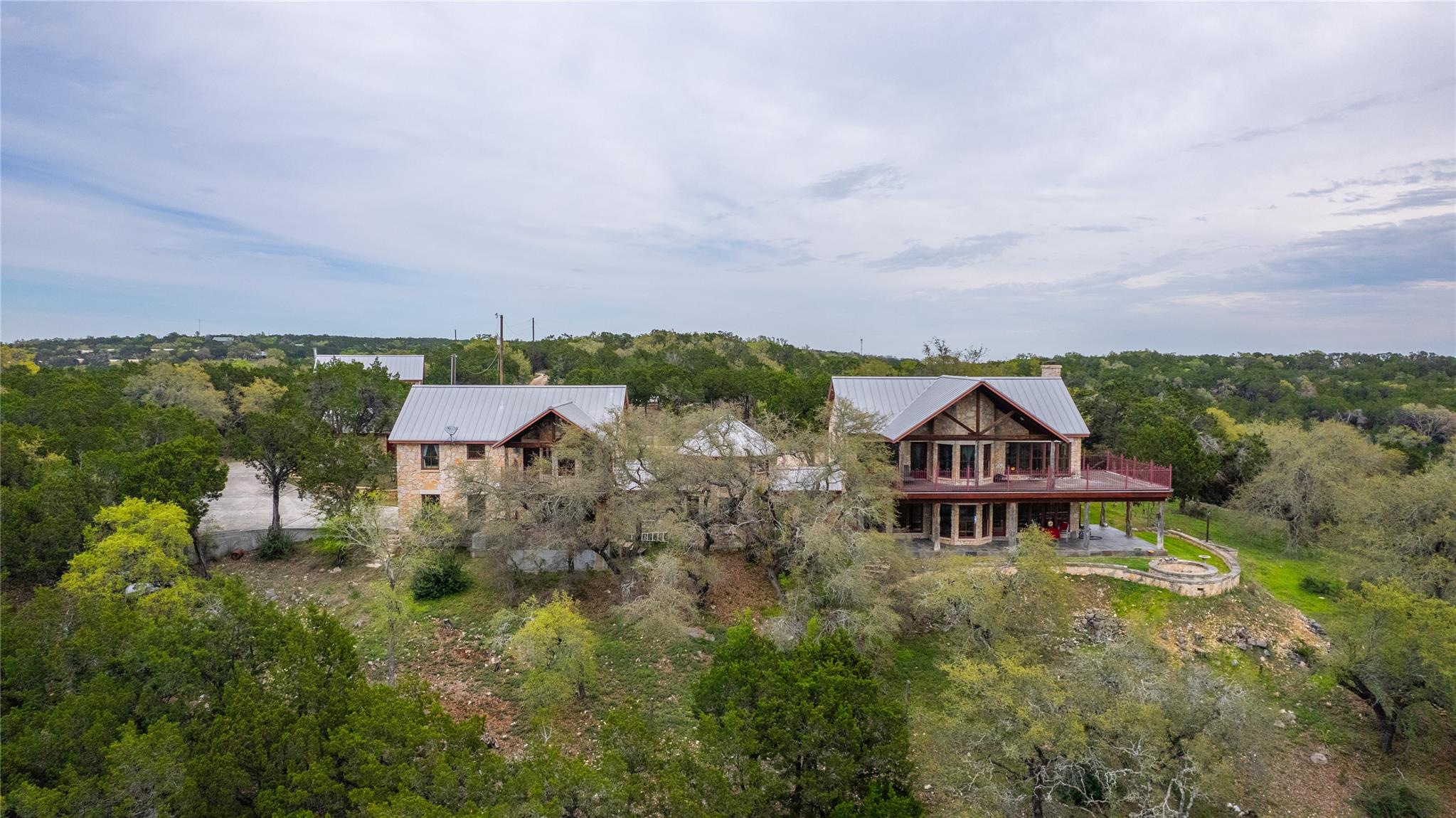 Buttercup Ridge Ranch presents an incredibly rare opportunity to own a stunning home/compound nestled on +/- 53.4 acres overlooking Wimberley Texas and the Blanco River Valley! This home is such an incredible artistic creation with superior quality and detail. Every single room of this two-story masterpiece capture the amazing views. The floorplan is unique and can offer multiple uses for the new owner. There are four bedrooms and three and a half bathrooms. Travertine tile floors are also in the home and bathrooms with beautiful tilework in the showers and upgraded fixtures throughout. The main portion of the home features the main living area with formal dining and breakfast area. The primary bedroom is upstairs with full bathroom and laundry. A beautiful cathedral ceiling with amazing woodwork connects the main portion of the home to the garage and another room that could be utilized as the fourth bedroom with a half bath. That room also connects to the upstairs apartment which additionally has an exterior entrance for privacy for guests. The apartment has two bedrooms and two full bathrooms, large living room and a kitchenette. Also, every room opens to a balcony or deck that captures the magnificent views! There are two outbuildings, a very nice storage building and a barn with an upstairs used as an art studio. This building has a half bathroom and can easily be finished out to utilize as living quarters. Both have matching masonry with stone from the property as well. The barn has very pretty lighting, tile flooring, and a wood-burning stove. There are many options for this space with the nice finish and plumbing in place. The land is amazing! There is significant elevation change creating the views, but the best part is the views aren’t isolated to the home. The ridge runs the length of the property and is covered in oaks creating a beautiful setting for additional uses including other homesites or subdividing etc. Great family compound or STR potential!