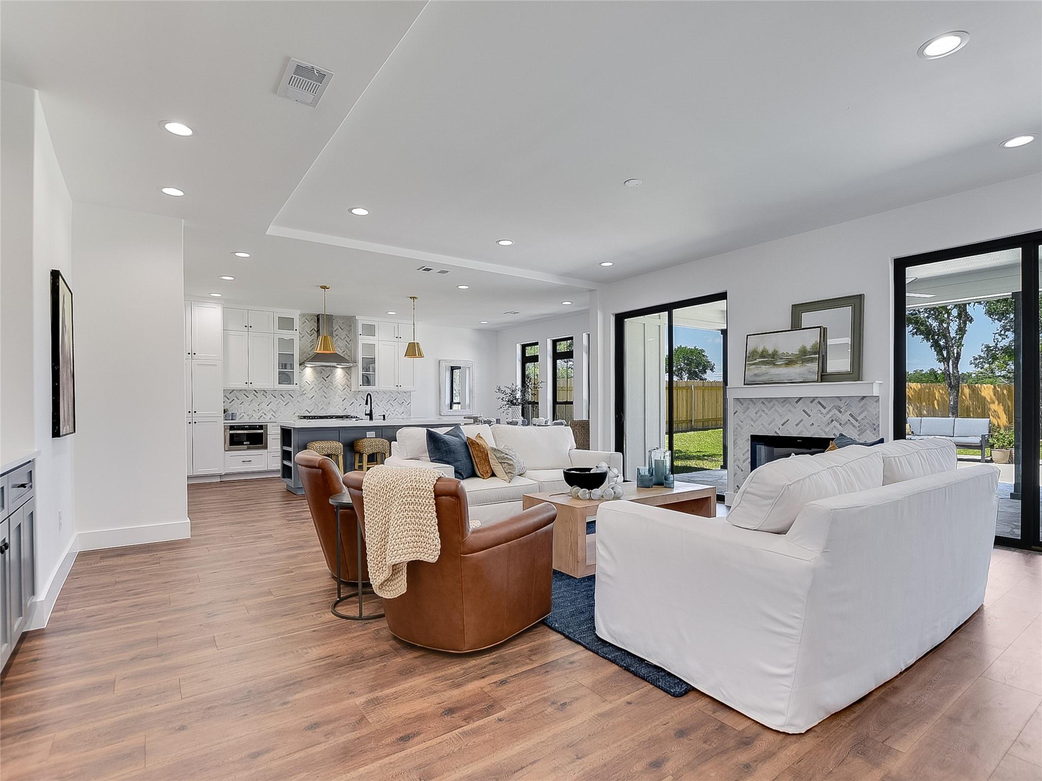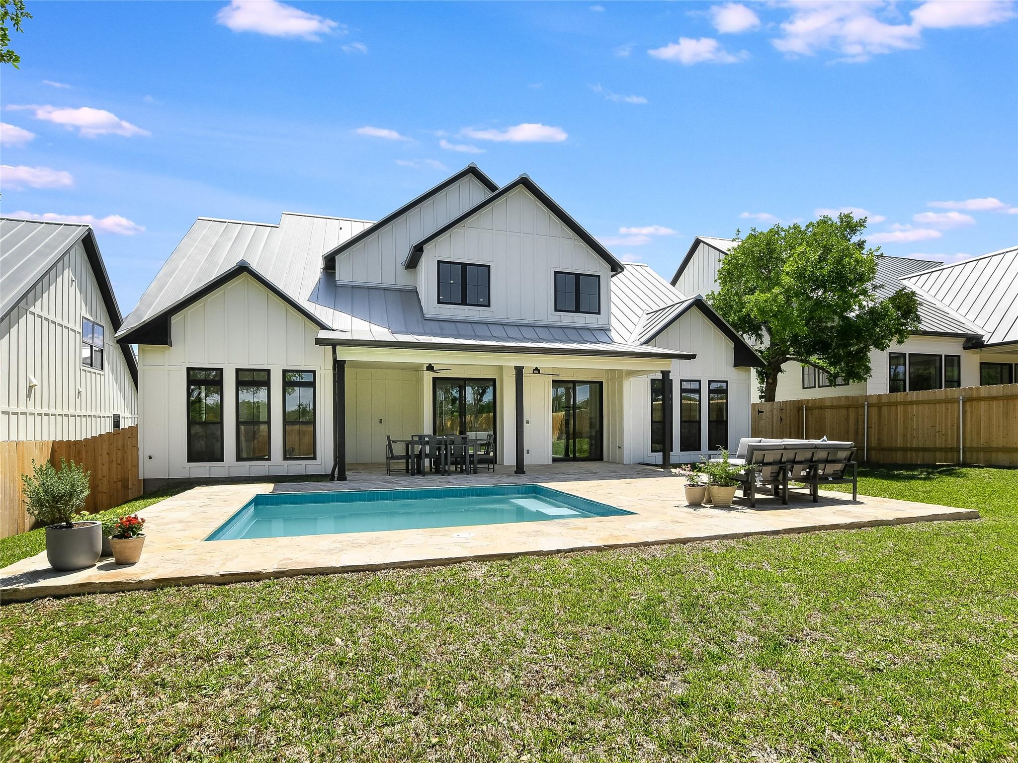 THE BEST OF LAKE LIVING WITHOUT THE WORK! At The Cove at Lake LBJ the yard, pool, trash pick up and amenities are maintained for you! Featuring 2415 Cherry Ln- 4 bdrms, 3.5 baths, huge living rms up and down; a large treed yard w private pool. The Cove is a gated 4+ acres consisting of 10 newly built modern farmhouse single family homes ranging from 2932 to 3429 SqFt with 4 & 5 bedrooms, 3.5 bathrooms, professionally designed & sleep 12-16 people per residence. The houses each boast the finest in materials including hardwood floors, quartz counter tops in the large kitchens & bathrooms, custom finishes, & one bedroom as an over-the-top bunk room, laundry rooms upstairs as well as downstairs, a private heated splash pool in each fenced private yard. The community features a regulation pickle ball court, also with use as a basketball court, a covered pavilion with grills, flat screen tv, dining areas, lounging areas as well as uncovered lounge areas, all under the towering oak shade trees & overlooking the lake. The highlights of course are the 8 boat slips & a slip for jet ski’s & easy access for kayaking & stand-up paddleboards. Tucked in a cove right off open water makes this a highly desirable & user-friendly watersports haven. There is also a convenient onsite parking lot for visitors parking as well as extra parking. The Cove at LBJ is also minutes from worldclass golfing. Enjoy wine tasting in the Hill Country, shopping, casual or fine dining or all-day enjoyment on the lake & in your private home.