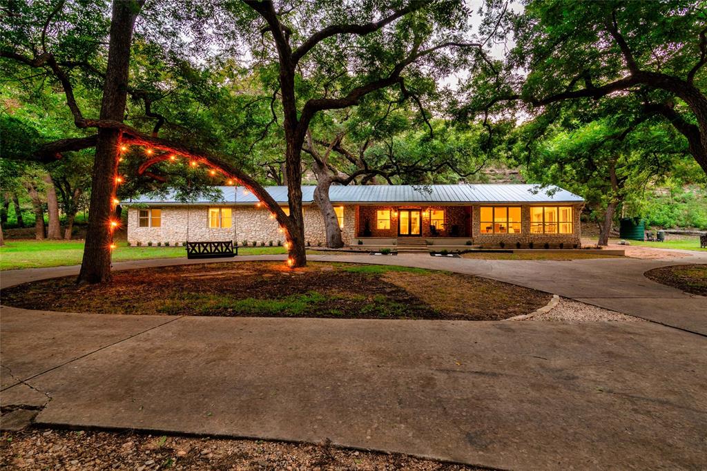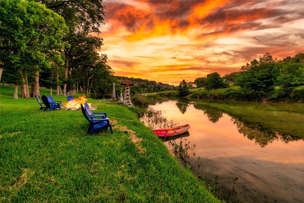Welcome to River's Canopy, a stunning waterfront retreat on the Blanco River in Wimberley. This one of a kind property offers a rare opportunity to own a slice of paradise. Situated on a beautiful bend on iconic River Road, this ranch style home is surrounded by Heritage Oaks and boasts a park-like setting that will take your breath away. The highlight of this property is its expansive river frontage, providing you with a private, tranquil retreat. Imagine spending lazy summer days lounging by the river, or enjoying a leisurely kayak ride along the gentle currents. After a day on the river, you'll enjoy the spacious home that offers a comfortable living experience with ample room for entertaining friends & family, or simply winding down. There are four private bedrooms, all with an en-suite bathroom. One of the bedrooms is very large, with windows facing the river. It is currently being used as a second living area. The layout offers many possibilities. You will also enjoy the wine room off of the kitchen, with access to the back terrace. At the back of the property you'll fine a hiking trail to a bluff that offers panoramic views of the Wimberley Hills. This vantage point is sure to leave you in awe. There are many options to enjoy the natural beauty of this property- from the brick terrace in the front of the property, one of three fire-pits, the river front area, or the bluff up top. Despite its serene location, this property is conveniently close to the beloved Wimberley Square. Just a short drive away, you'll find an array of charming shops, local eateries, and cultural attractions to explore. If you'd like even more space and privacy to enjoy, the adjacent one acre lot is available to purchase. Don't miss the chance to make this extraordinary property your own. Come and experience the magic of Wimberley living at its finest!