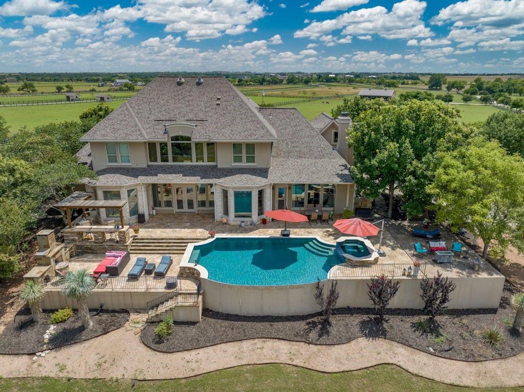 Luxurious Riverfront Estate with Amazing Views of the natural treasures of Georgetown's San Gabriel River. CR 103 has become one of Georgetown's most prestigious luxury enclaves-This property is gated, ag exempt, and full of views of the crystalline waters of the river. Enjoy the serenity of soaring cranes, butterflies on the southern breeze, and pastoral views out of nearly every window. Escape the stresses of life and enjoy star-filled skies over green pastures and flowing water. The back patio and pool area is ripe for entertaining and/or a peaceful morning coffee ritual. Interiors are fit for Hill Country Nobility with a commercial grade Kitchen appliance package, custom cabinetry, built-ins and trim work, and unique spaces for all your home applications. Enjoy 5 true bedrooms + office, or make it a 6th bedroom (with attached bath). Also opportunities for 2nd office, craft room, or other unique needs and purposes. Don't miss touring the dream barn for equestrian applications or possible workshop opportunities. Nowhere in Georgetown is there an enclave of luxury estates to protect your financial interests like those along the river and County Road 103. Ask listing agent for a full run down of surrounding properties, history, and interesting facts.