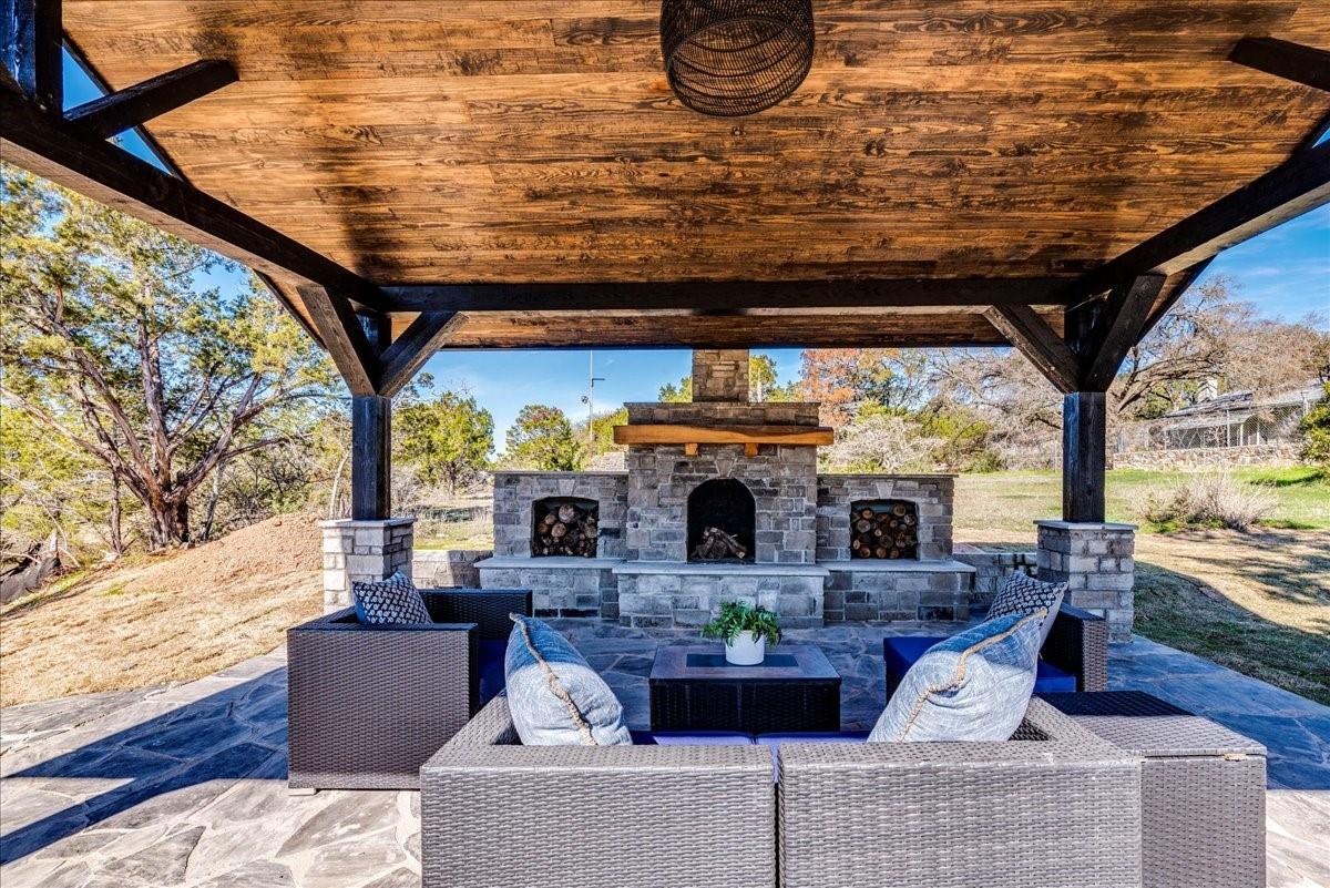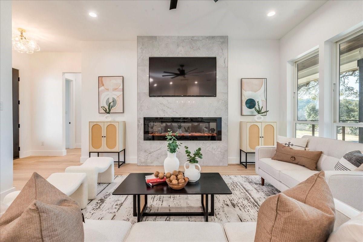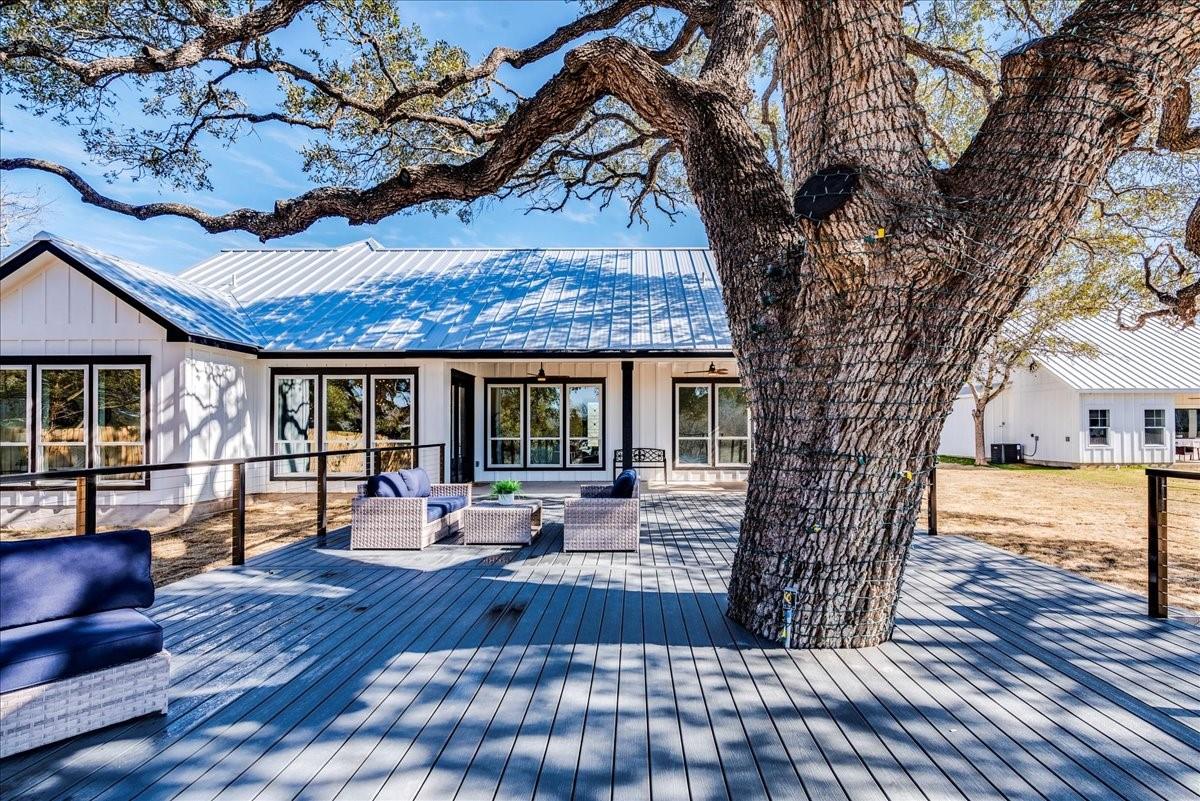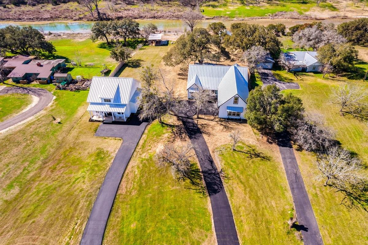 Two Waterfront Properties...One Dream. Welcome to your waterfront dream retreat on the Blanco River in Wimberley! Nestled on almost 2 acres of picturesque landscape, this property features not one, but two new custom construction homes with over 3,500 sqft of combined living space spread over a 3 bedroom, 2 bath main house and a 2 bedroom, 2 bath second house that promises unparalleled views of the river and the Hill Country. Perfect for multigenerational families or that weekend getaway spot for you and your friends, these homes feature top of the line finishes, designer touches and tons of energy saving features. Just minutes from downtown Wimberley yet steps to the river, this compound truly embraces the town motto of "A little bit of heaven". The main house has 3 bedrooms, 2 bathrooms with a dedicated office space. There is an upstairs flex room, perfect for a media room, playroom, or art studio. An attached oversized 2-car garage has plenty of room for extra storage or hobbies. The 1,000 sqft Trexx deck with breathtaking views of the massive oak tree make it ideal for entertaining or enjoying a peaceful evening. The covered back porch features a fully equipped gas grill and beverage fridge. Enjoy the expansive outdoor pavilion with a 21' fireplace. Follow the charming flagstone path to the river for an intimate seating area or refreshing swim. The second house has 2 bedrooms and 2 bathrooms, providing a cozy and private space for friends and family. There is extensive attic space, offering the potential for additional customization or storage. The covered back porch with panoramic views overlooks a second pavilion and one of a kind outdoor shower hand crafted from natural resources found on the property. A carved path leads you to the river where you will find a stone picnic table made from boulders nestled along the river bank. This is a rare opportunity to own two homes situated on the Blanco River in the heart of the Hill Country.