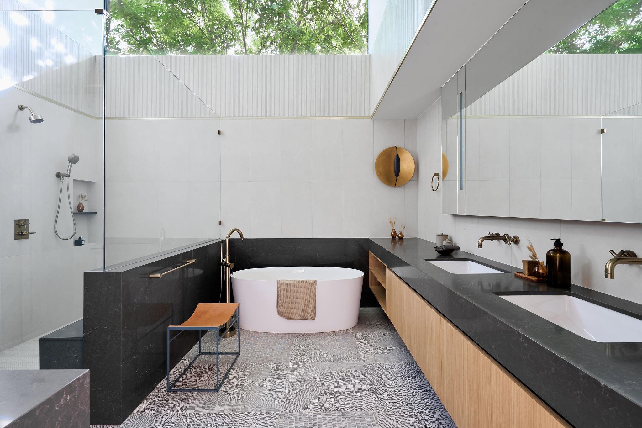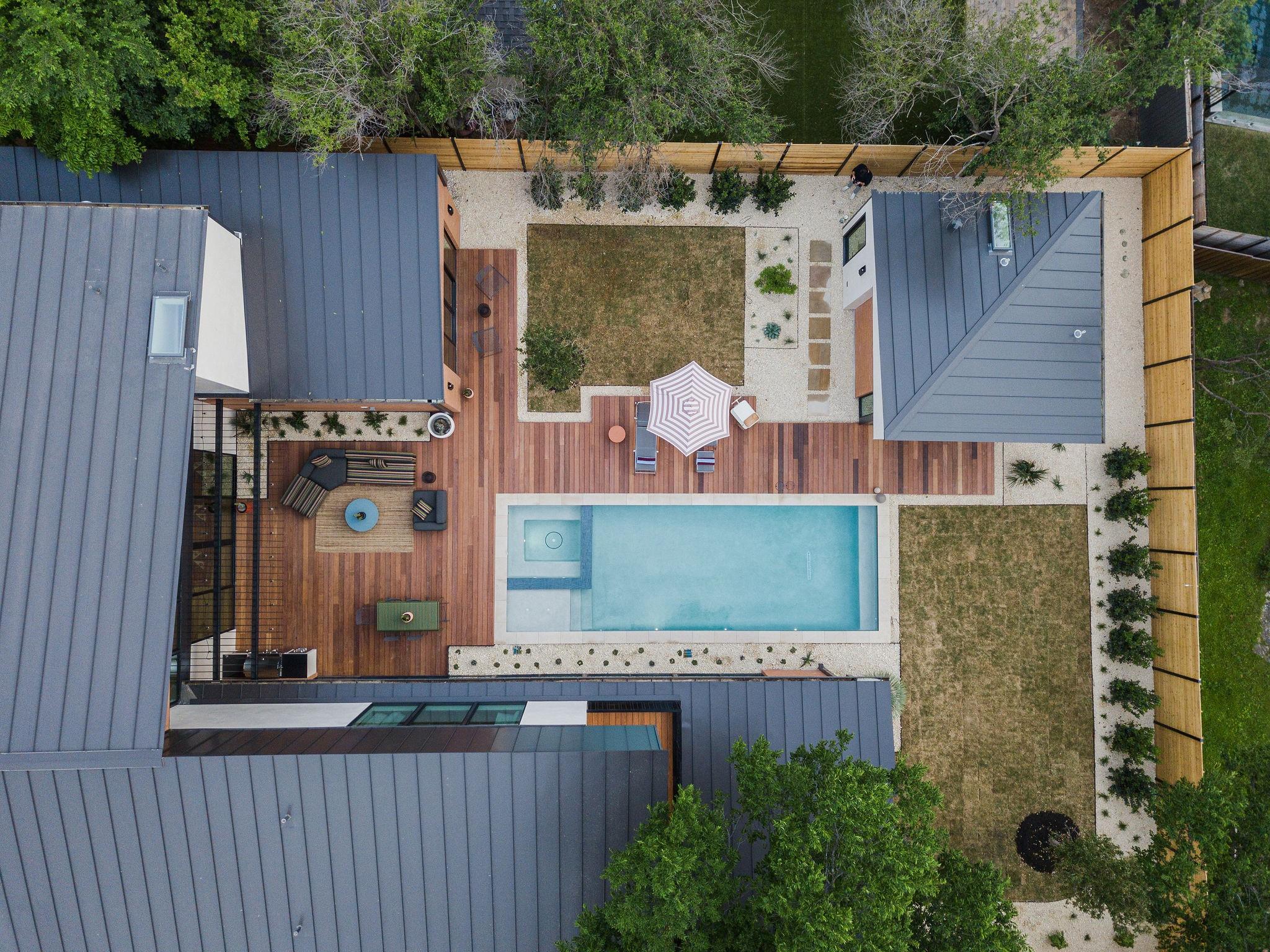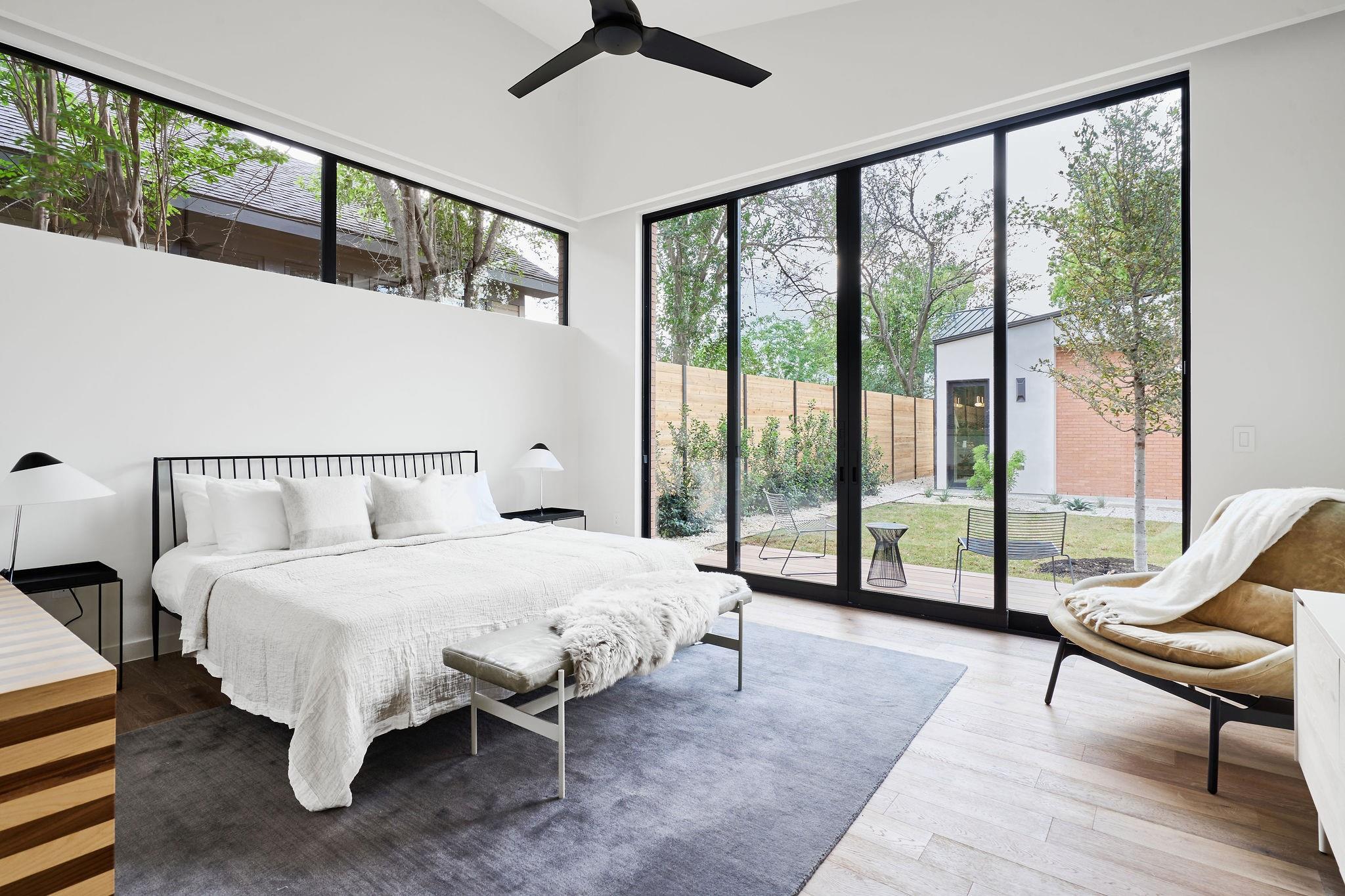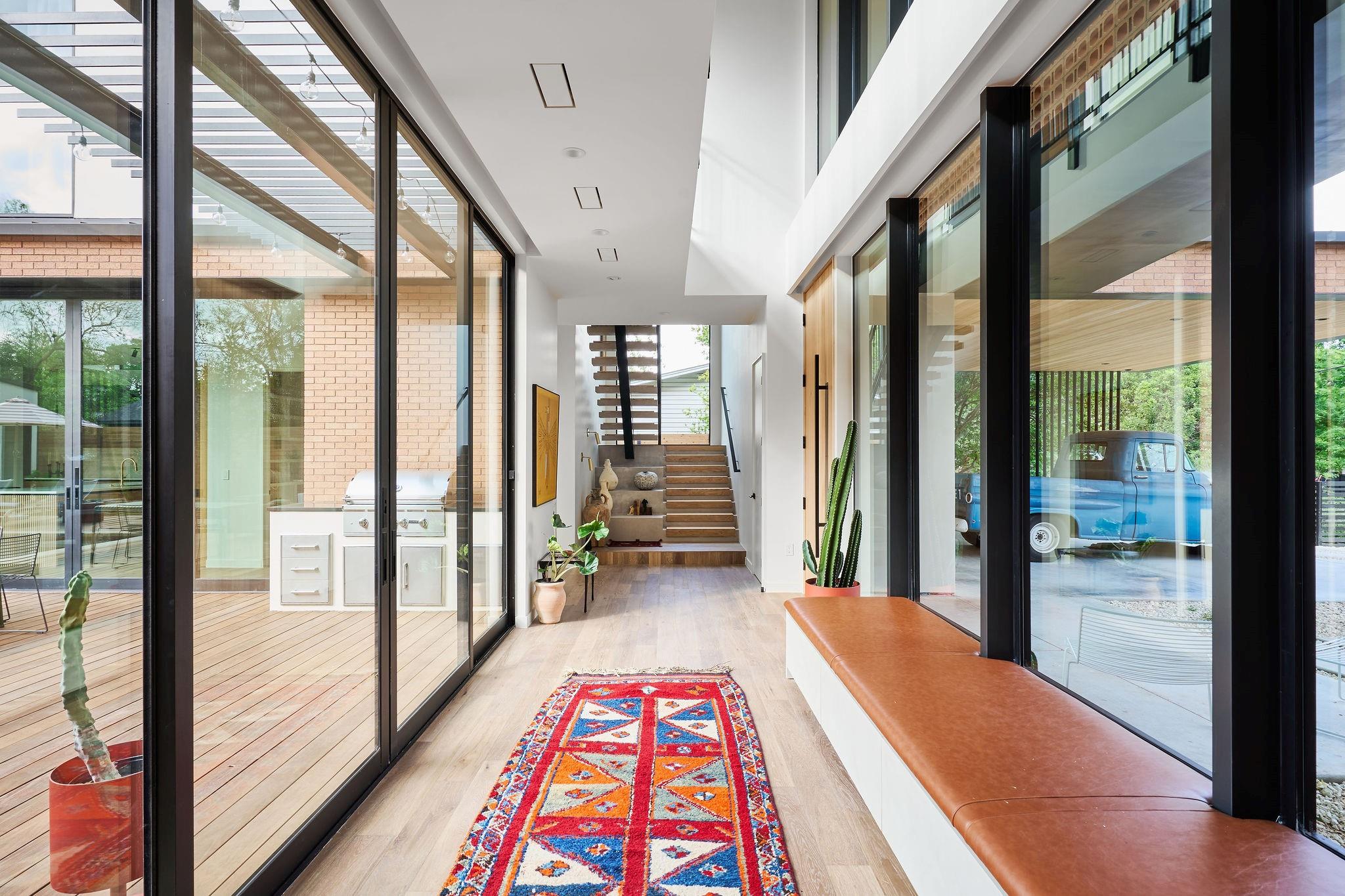 Welcome to an exceptional reimagining of Mid-Century Modern, meticulously crafted by FIA Homes and designed by CoXist Architecture. Nestled in Austin’s tranquil Zilker area, this impressive 4,361 sqft property boasts 5 bedrooms, 5.5 baths, and a thoughtfully designed 2-story floor plan. It is surrounded by custom landscaping and private courtyards, with a Casita perfectly situated at the back of the property. Enter through a crafted steel gate and pass a solid stucco wall that offers privacy. The home’s exterior blends clean brick lines with natural hemlock wood overhangs and striking black steel details, setting the stage for its sophisticated atmosphere. The elevated entry features suspended terracotta breeze blocks that filter sunlight while maintaining privacy. Inside, function and elegance seamlessly coalesce. Extensive windows, reaching towards the modern gable roof, flood the living spaces with sunlight, complementing the kitchen’s Italian Olmo Elm and Laccato Opaco cabinets set atop Caesarstone countertops. The living area is enriched by fireplaces encased in stone and textured wood. The design harmoniously integrates indoor and outdoor spaces through vast windows and glass doors, leading to an expansive serene pool that enhances the property’s thoughtful design. Discreetly positioned, the primary suite is a luxurious retreat with custom tile work and gold accents. Customizable integrated ambient lighting throughout allows for a personalized atmosphere in each space. The bathrooms feature unique lighting and tile work that exude sophistication. The adaptable casita can serve as a home office, guest quarters, or a lounge area by the pool. With meticulous attention to detail, this home is a celebration of refined design and quality craftsmanship. Your new home awaits in the heart of Austin’s Zilker neighborhood.