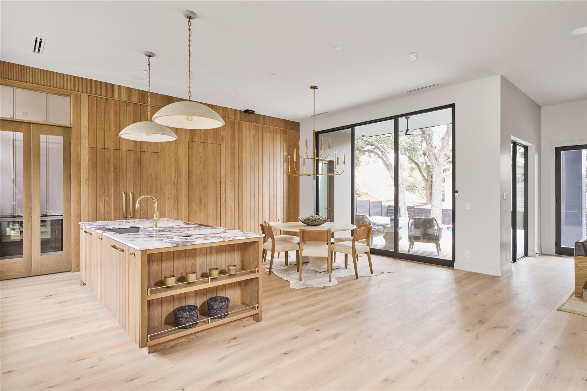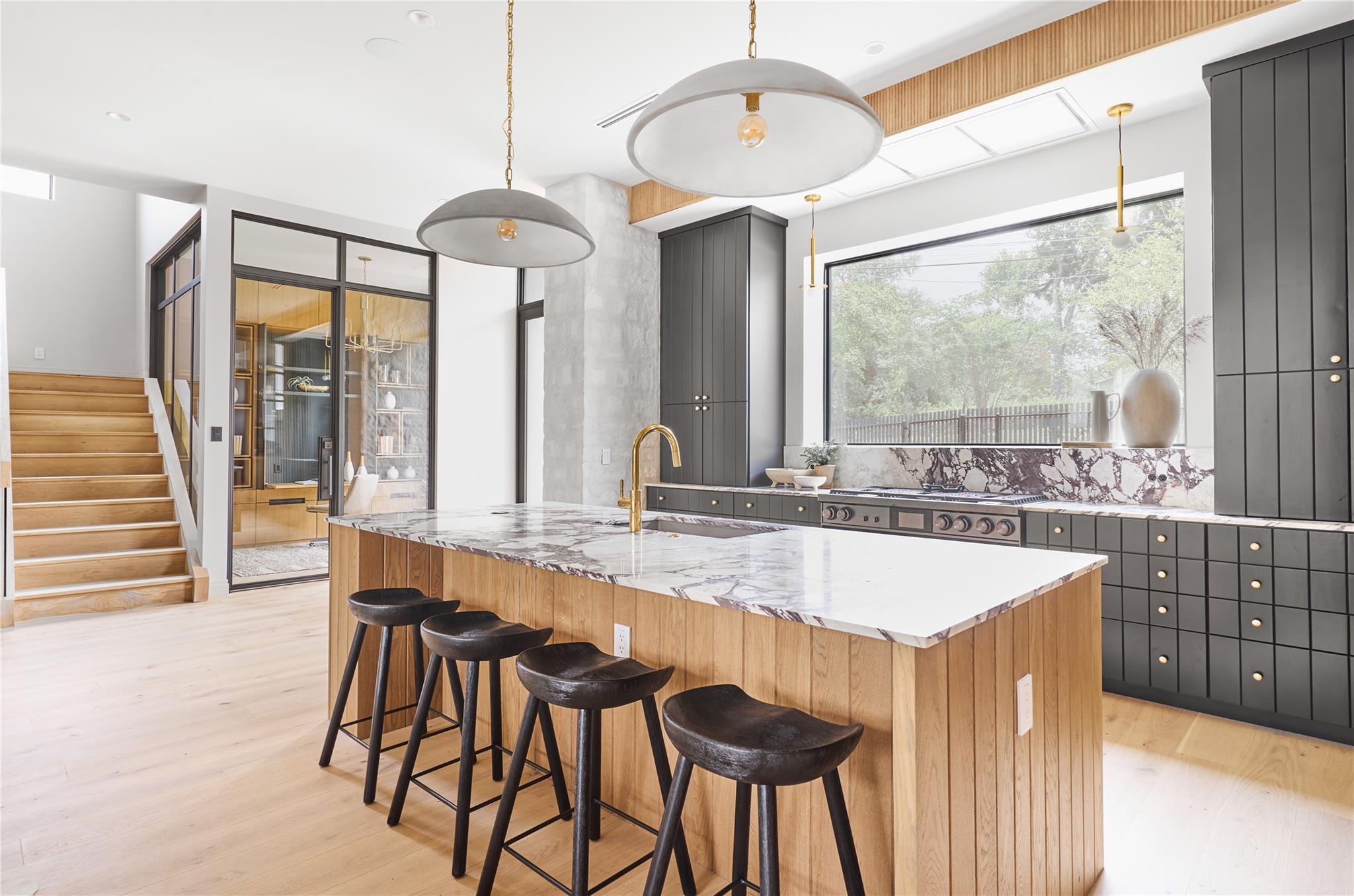 Introducing a truly remarkable & one-of-a-kind offering by the elite team of CKN Capital Group + Kelley Design Group + Etch Design Group. This brand new single-family home consists of 4 bedrooms + a dedicated office + 4 full bathrooms in the main home + a detached casita consisting of an additional bedroom & full bath equaling 5 bedrooms + office & 5 full bathrooms for a total of 3,237 sq.ft all on a lush & private .21 acre lot. Upon entering through the custom 9ft steel & glass front door you are greeted with an incredible open floor plan with soaring 11ft ceilings. Truly a chef's kitchen which consists of gorgeous hand-selected marble countertops & custom cabinetry throughout. Commercial-grade Decor appliances from the stove to the paneled fridge to the walk-in glass pantry that includes an ice machine, microwave drawer, beverage fridge & a wine fridge. On the first level you will additionally have a hidden entryway taking you to the formal mudroom which is adjacent to the 2-car garage. Through the mudroom you have bedroom #1 & bathroom #1 which serves as your guest bathroom on the main level as well as your dedicated pool bathroom with a door that is accessible from the outside. Built-in fire pit & outdoor kitchen, as well the detached casita/pool house that includes a mini fridge & micro drawer w/ upper & lower cabinets & a full bathroom making it the ultimate guest quarter/man cave space. The second floor consists of the primary bedroom/bathroom + bedroom #3 Bedroom/ bathroom ensuite + bedroom #4 bedroom & shared full bathroom + as well as the walk-in laundry room that includes a washer/ dryer. Primary en suite has a glass enclosed shower that consists of 2 shower heads & wands + a rain shower above + freestanding tub & floating bench. Custom double floating vanity with a one-of-a-kind green quartzite stone. Take advantage of this chance to own an incredible home just minutes to DT Austin/East Austin/and the bustling 78704.