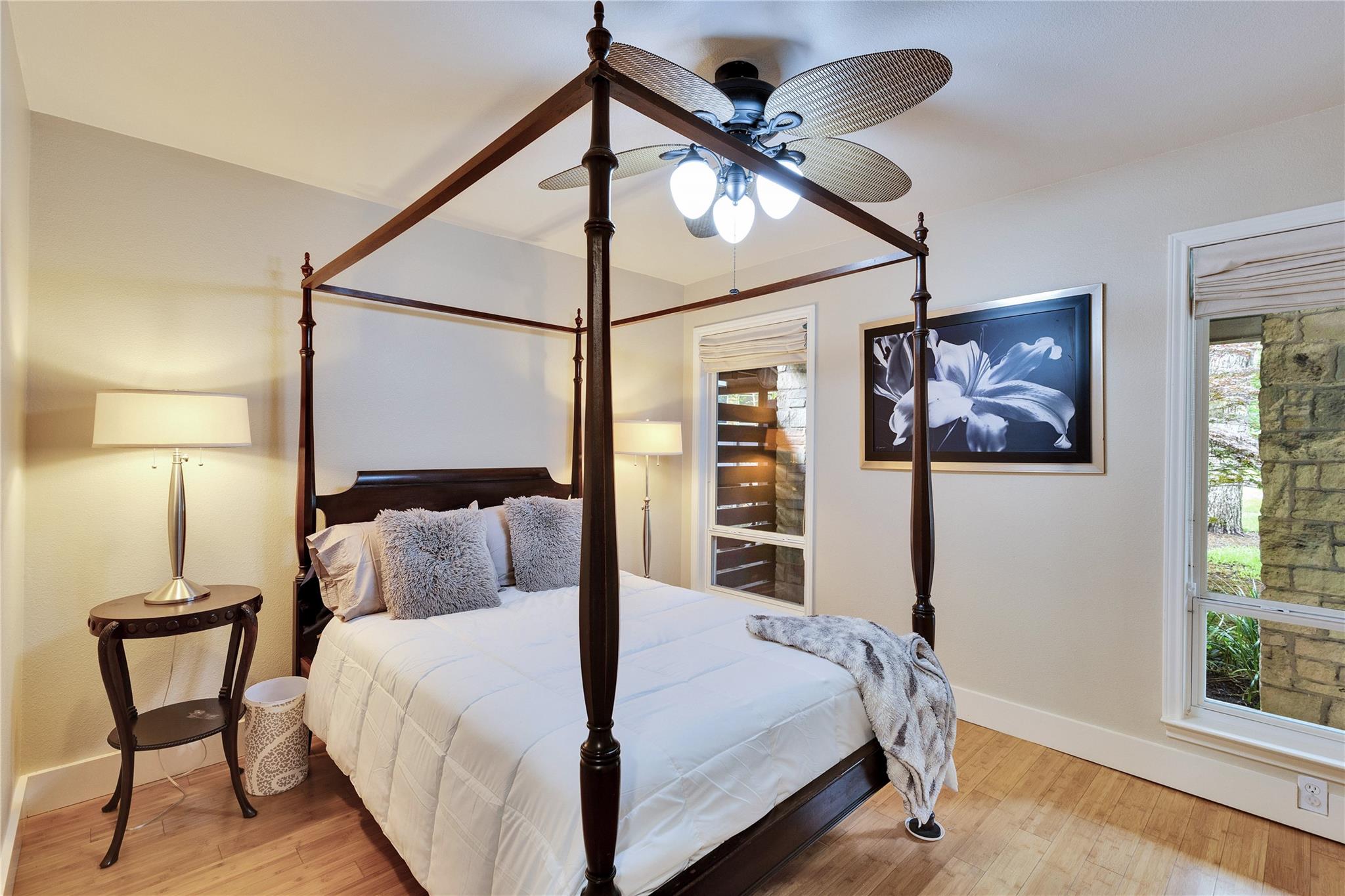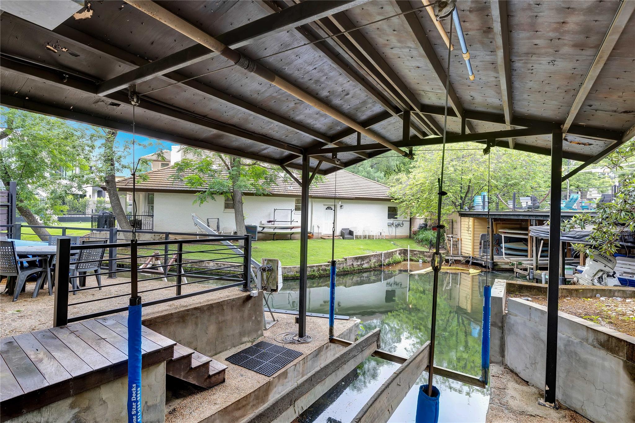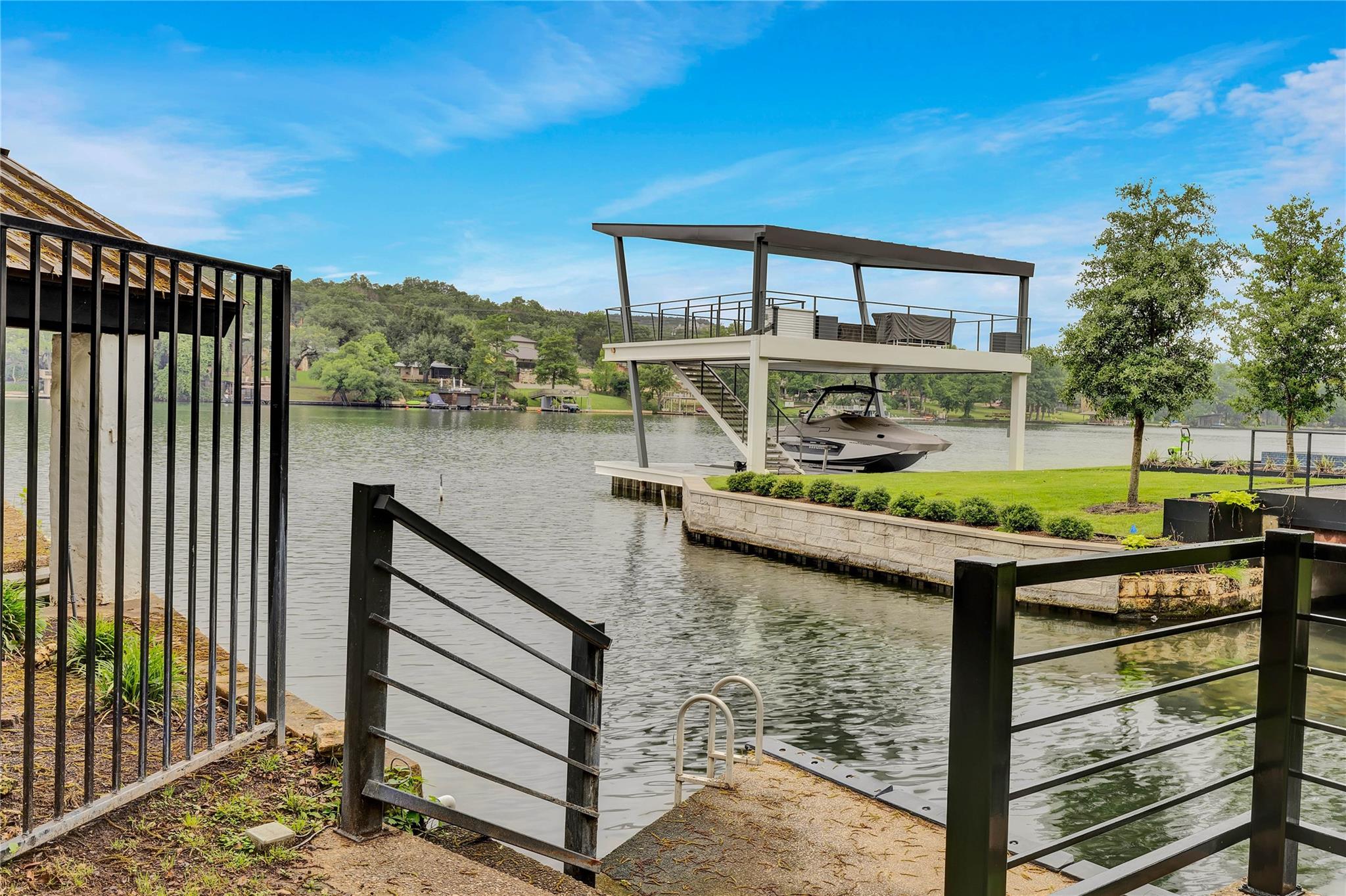 Welcome to your very own waterfront retreat! This Lake Austin waterfront beauty is a rare, hard to find, waterfront lot that is completely level in the front and the back making it easily navigable for all ages. Additionally, Lake Austin is a constant level lake for year-round enjoyment! Situated in the prestigious Rivercrest neighborhood, this remarkable find has lake views from most rooms, waterfront access, boat slip, boat dock, boat lift, and jet ski lift satisfying every water recreational enthusiast. The heart of the home is the open floor plan consisting of the kitchen that flows into a large open dining room and living room. This waterfront gem boasts 4 bedrooms and 4 full baths, with wood and tile flooring throughout including travertine tile accessible from outdoor areas. The main level office can double as a 5th bedroom that includes 2 closets in the room. There are 2 primary suites, one on the 1st level and one on the 2nd level. Two private staircases on each side of the home to take you to the private upstairs bedrooms with Juliet balconies. Take in the Lake Austin views while relaxing on the covered back patio. Sitting on nearly half an acre, this property also includes a 2nd beautifully wooded lot for the septic drain field. Act on this rare opportunity that offers elegance, comfort and style while entertaining your water recreation wishes.