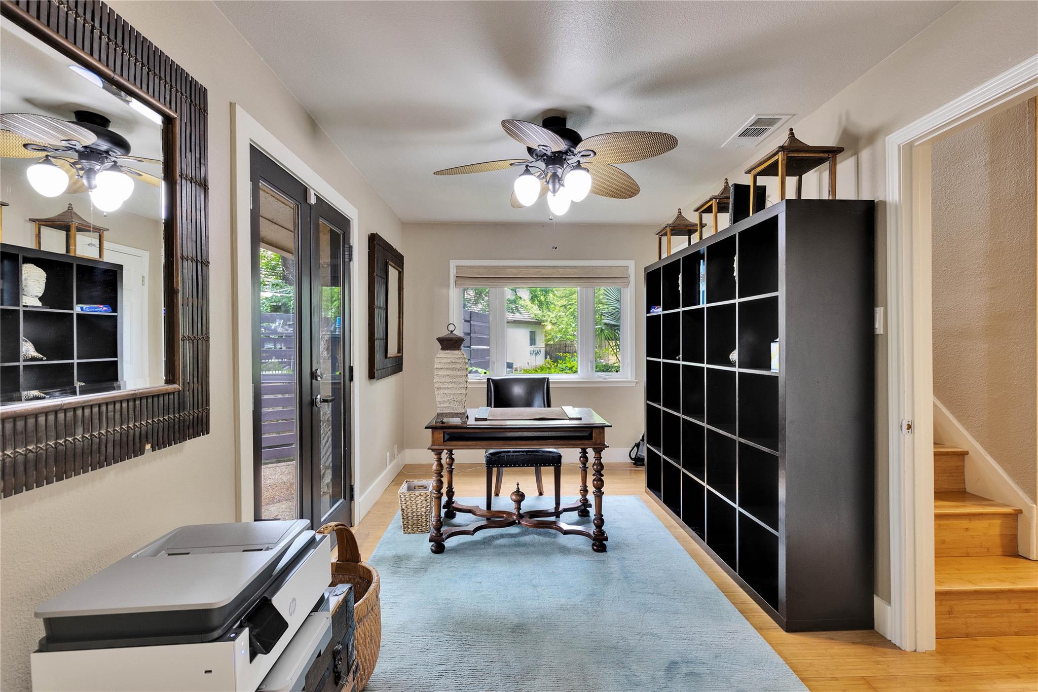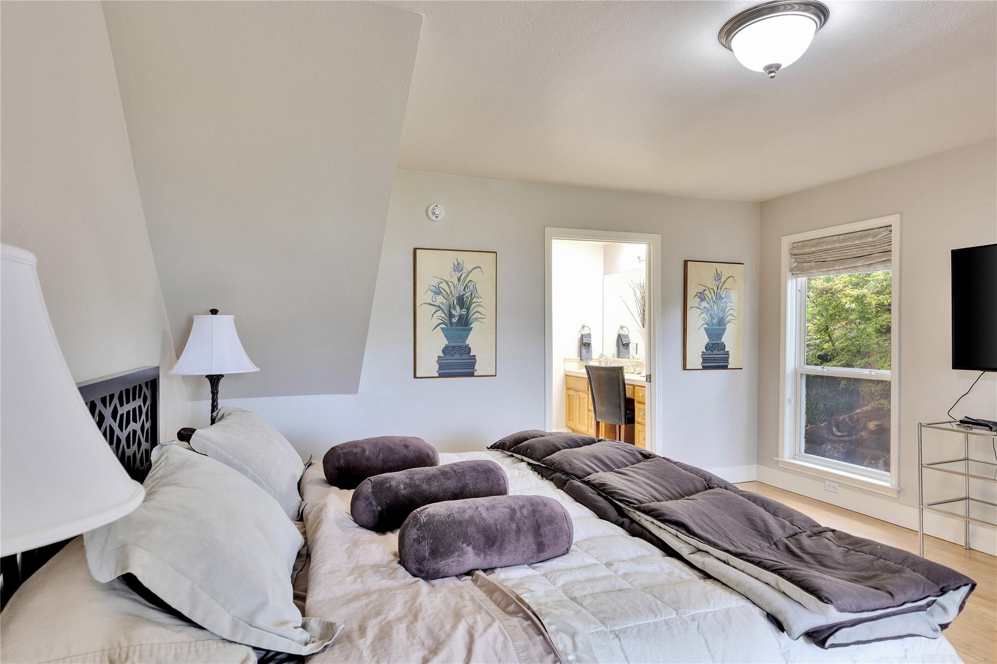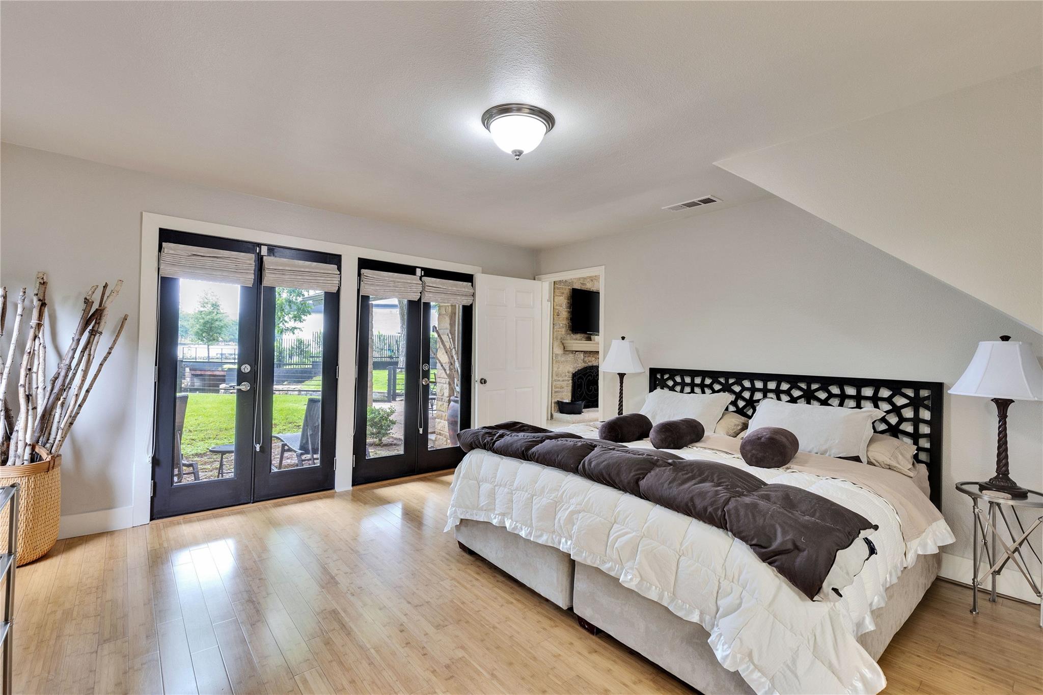 Welcome to your very own waterfront retreat! This Lake Austin waterfront beauty is a rare, hard to find, waterfront lot that is completely level in the front and the back making it easily navigable for all ages. Additionally, Lake Austin is a constant level lake for year-round enjoyment! Situated in the prestigious Rivercrest neighborhood, this remarkable find has lake views from most rooms, waterfront access, boat slip, boat dock, boat lift, and jet ski lift satisfying every water recreational enthusiast. The heart of the home is the open floor plan consisting of the kitchen that flows into a large open dining room and living room. This waterfront gem boasts 4 bedrooms and 4 full baths, with wood and tile flooring throughout including travertine tile accessible from outdoor areas. The main level office can double as a 5th bedroom that includes 2 closets in the room. There are 2 primary suites, one on the 1st level and one on the 2nd level. Two private staircases on each side of the home to take you to the private upstairs bedrooms with Juliet balconies. Take in the Lake Austin views while relaxing on the covered back patio. Sitting on nearly half an acre, this property also includes a 2nd beautifully wooded lot for the septic drain field. Act on this rare opportunity that offers elegance, comfort and style while entertaining your water recreation wishes.