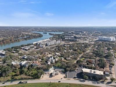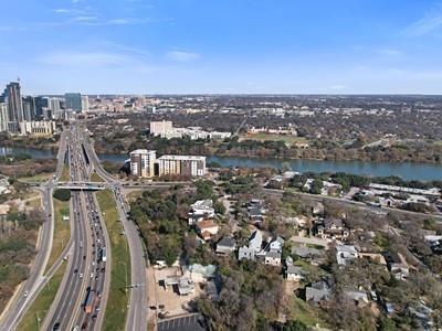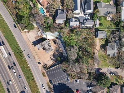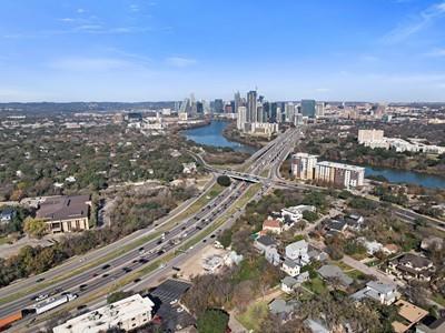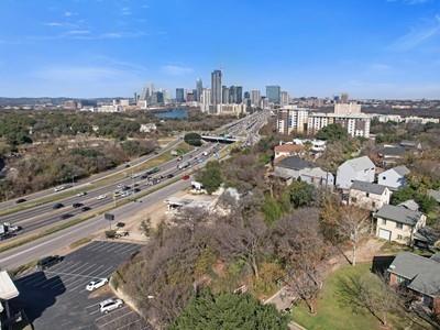 The property consist of three tax parcels (lots). 200 ft. frontage on the service road on the lower level and being approximately 16,200 sq. ft. of level surface with 1188 sq. ft. that can be renovated or torn down for new development. Upper portion of property that is above the green retaining wall accessed by Lupine street above. Those lots are total of 13,661 sq. ft. by survey. The upper lots are zoned SF-3 and the lower level zoned Commercial/LR. Buyer can redevelop the property and build a 3-5 story mixed use building with outstanding views of downtown city skyline. Tract is served by all utilities. Electricity, water, wastewater, telephone, natural gas and internet and cable. See aerial views from drone shots made of area. The view cannot be blocked in the future from any developments since no properties exist for development between this site and downtown.