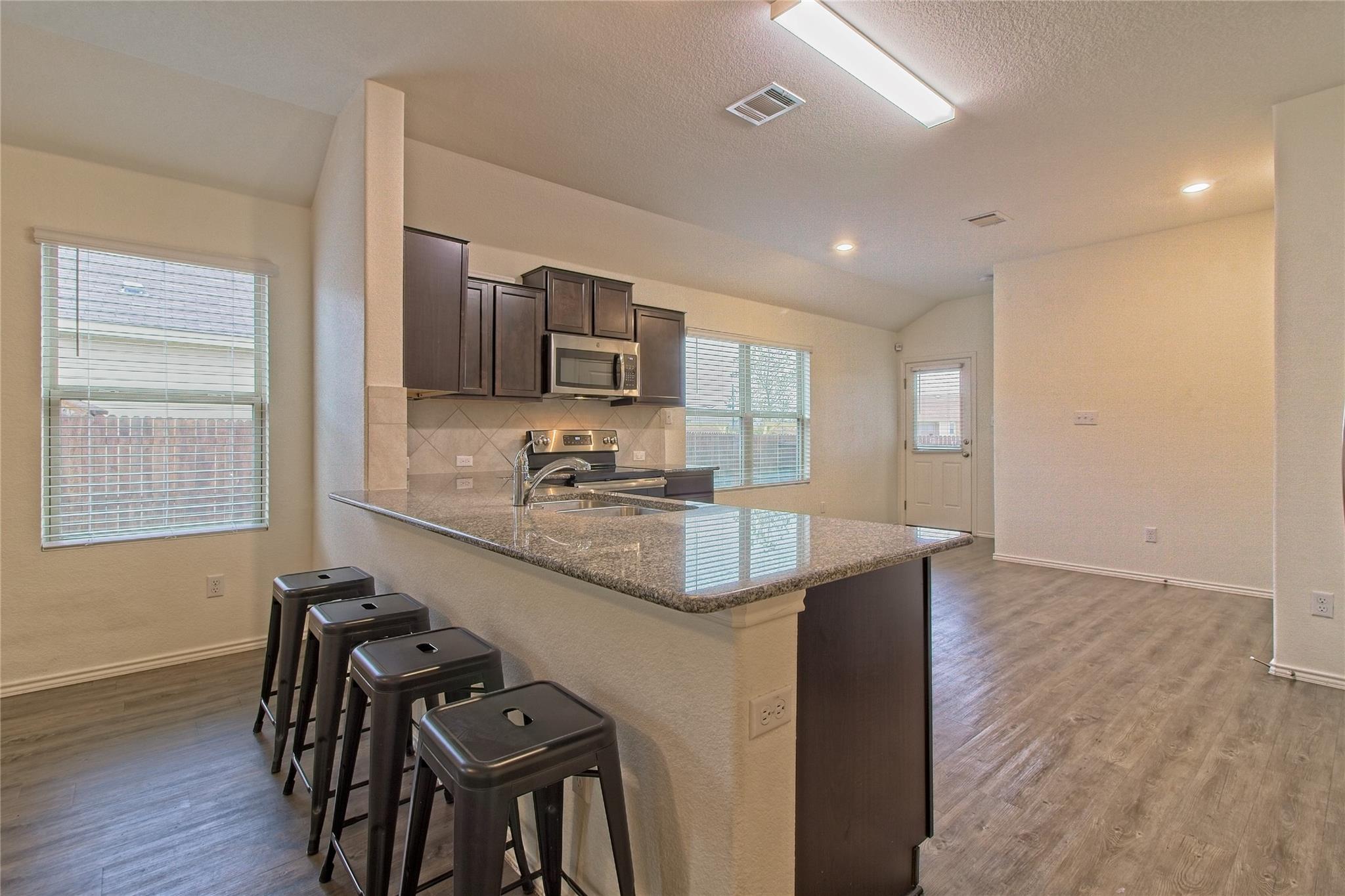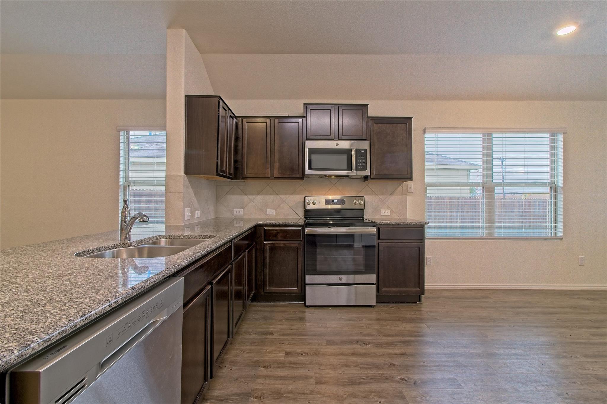 Beautiful Sonterra home with open floorplan is great for entertaining and allows the cook to be part of the action. Plenty of workspace in kitchen equipped with stainless appliances, built-in microwave, granite counters and pantry. Master suite is its own private get-away including attached bath with dual vanity and walk-in closet. Located less than an hour from Austin to the south and Waco to the north, and only minutes to everything Georgetown has to offer. Community amenities include pool, playground, picnic area and more. Pets ok; limit two; 50 lbs or less. **Resident must choose between two resident benefit packages at time of application.