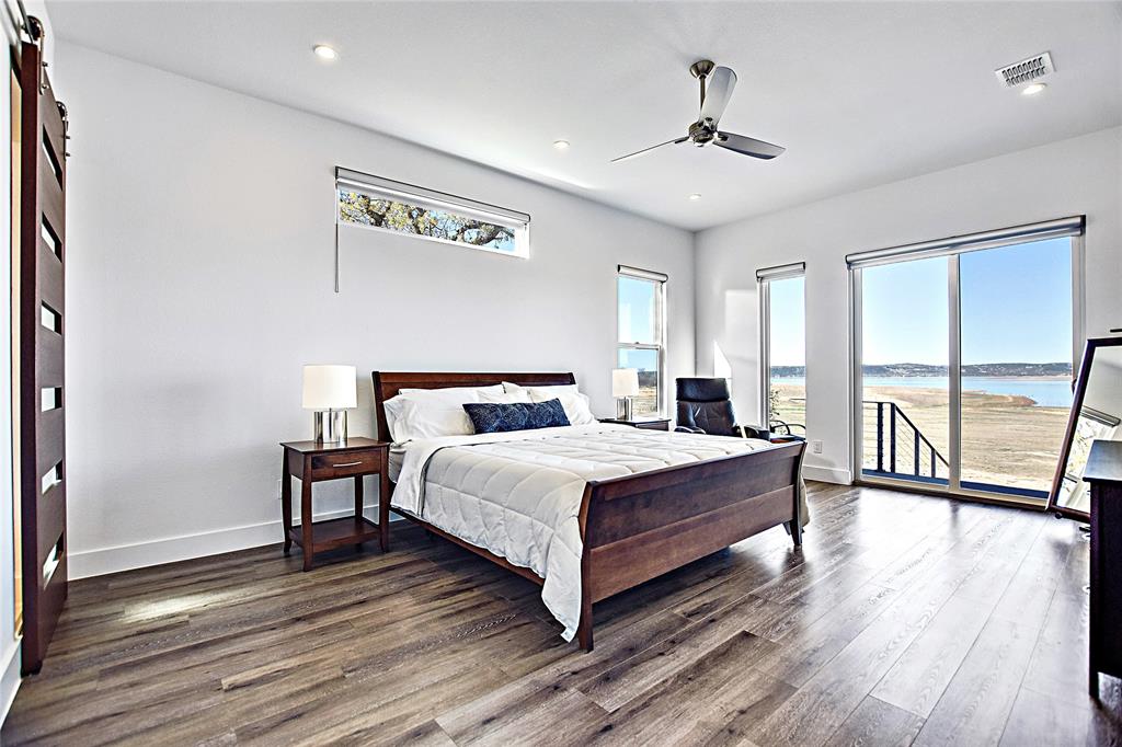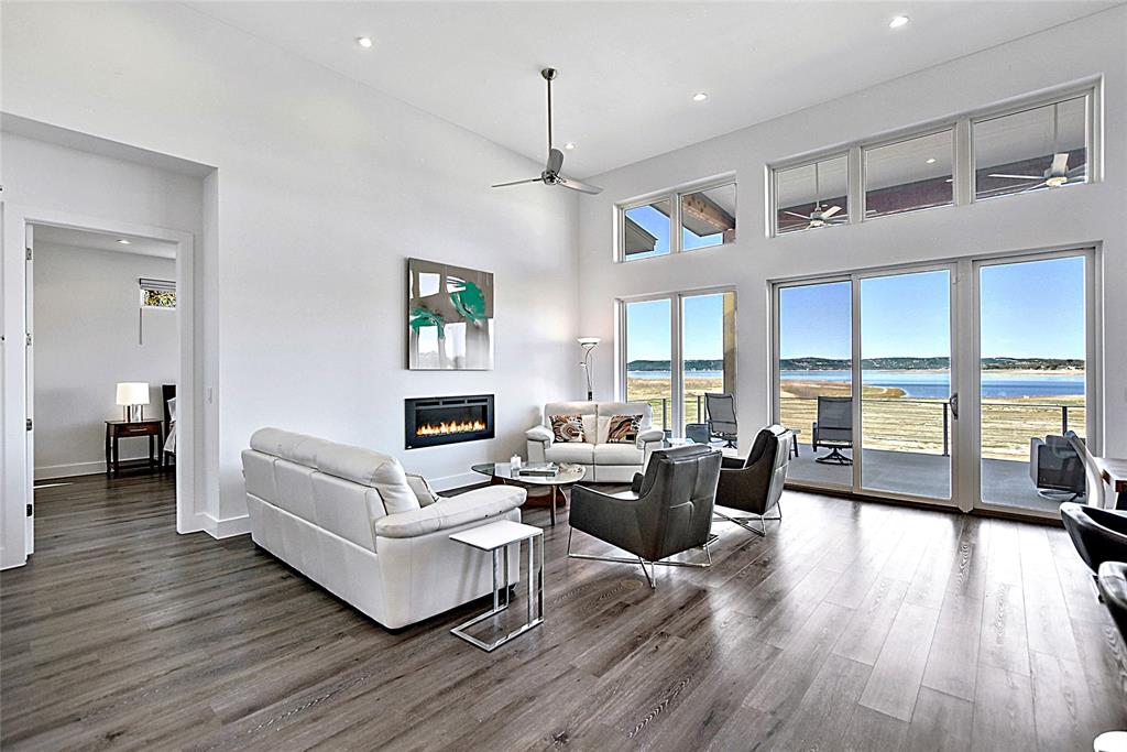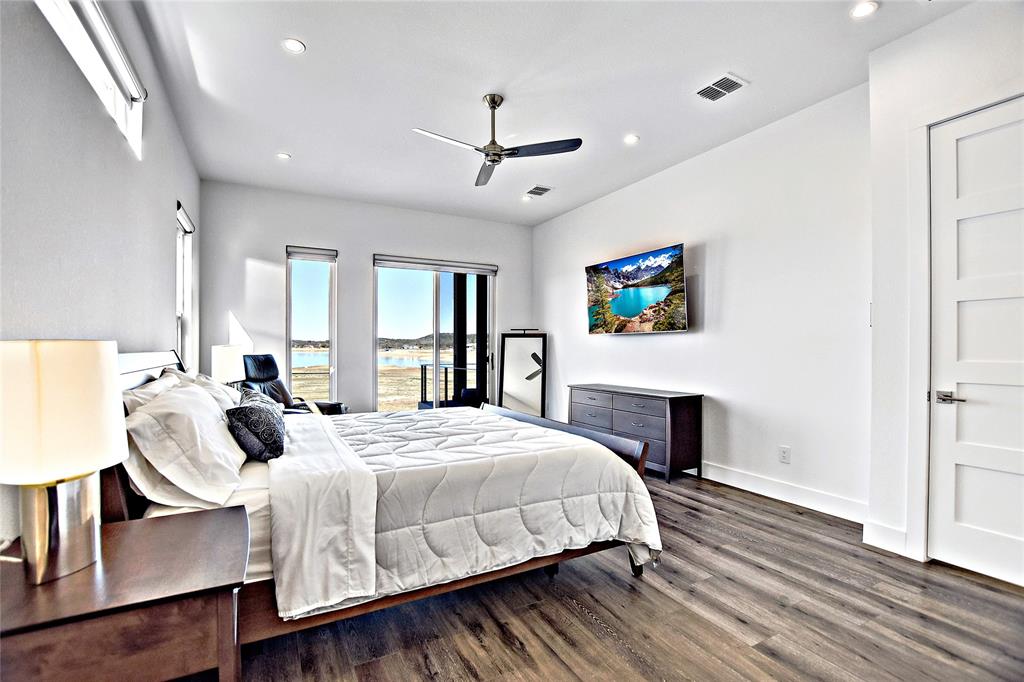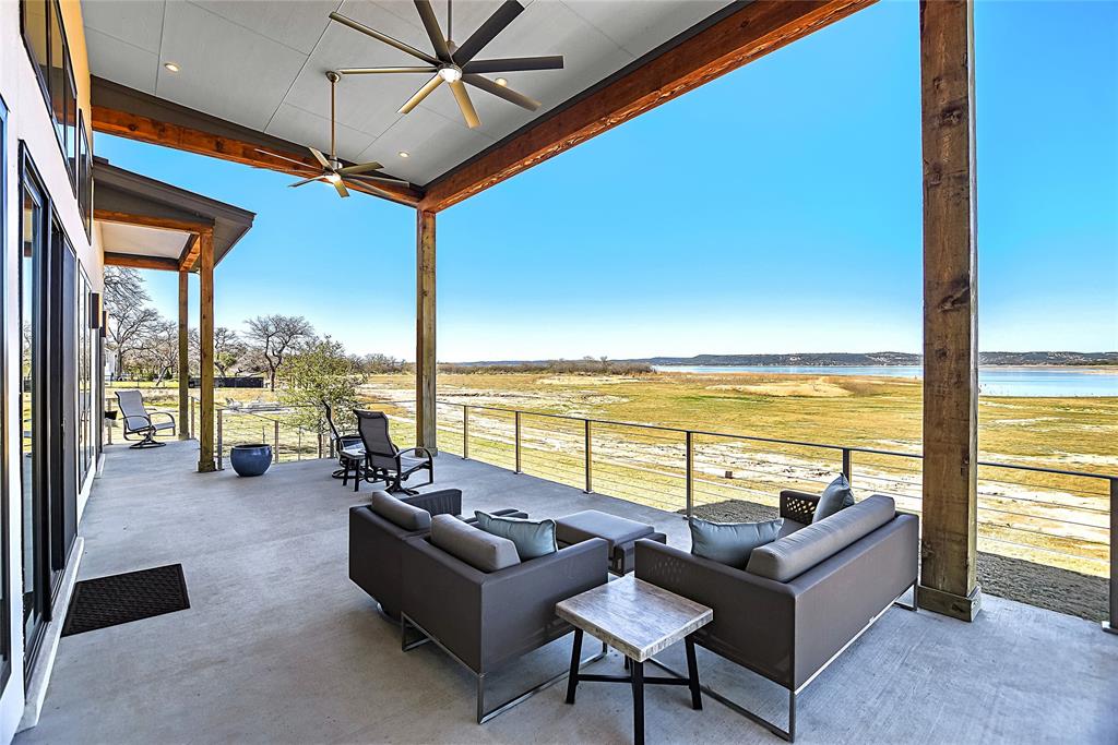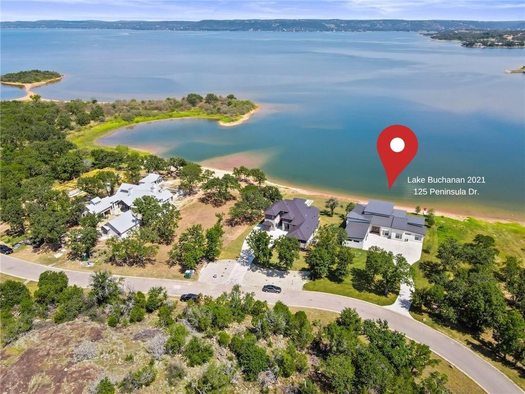Significant Price Improvement! Exceptional Lake Front Home in the Exclusive Gated Community of The Peninsula on Lake Buchanan. Better than new, built in 2020 with strong attention to detail by Casa Sereno Homes, high end finishes and remarkable functionality. This custom home boasts incredible curb appeal, the white stucco façade and dark metal roof is beautiful in contrast to the big blue sky and sparkling water. Double divided light front doors open into what can only be described as stunning! Wide open entry with a view straight out to the patio and lake. Fabulous Open Floorplan features a chefs kitchen with Bosch appliances, Induction cook top and telescoping range hood. Kitchen, Dining, Living is all open concept and though contemporary, feels warm and inviting. Electric Fireplace offers ambiance and heat when you need it. Owners suite with spa inspired bathroom, free standing tub, walk in shower, double vanities, 2 walk in closets, statement light fixture & WC with a bidet. The right wing of the home features an office, a gym/flex room (or 5th BR), an additional ensuite - primary or guest quarters large enough for a living area and bedroom, would work perfectly for multi gen living. Remote Controlled interior and exterior window blinds & shades. There are a total of 4 bedrooms and 3 full baths. Recessed Lighting, Ceiling Fans, Smart Features, Green built home, Full Security System, wonderful storage spaces, dream laundry room and a fabulous pantry. 642 sq. ft. of covered terrace feels like additional living space. When the lake is at a normal level the water comes up to the line of vegetation just past the sand. 3 Car attached Side entry garage is 796 sq. ft, it's amazing. Keyless entry, full house water filtration and water softener. Enjoy the convenience of having a boat slip in The Peninsula's private marina & proximity to Burnet's charming Historic District- shopping, dining, local wineries. Just 1 hour from Austin! Also listed for Lease at $5,250 per mo.