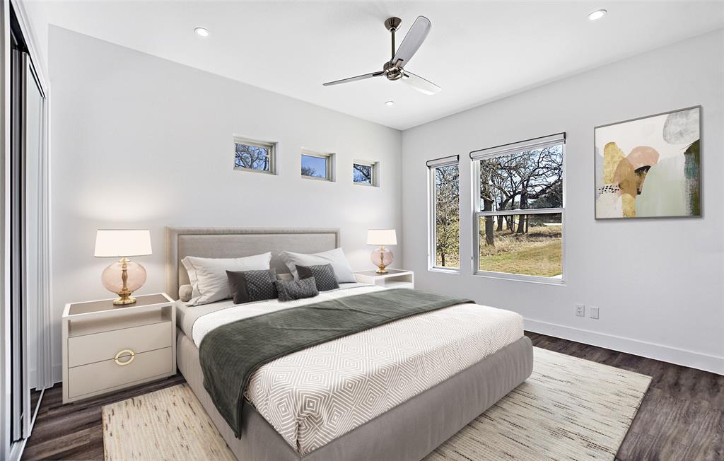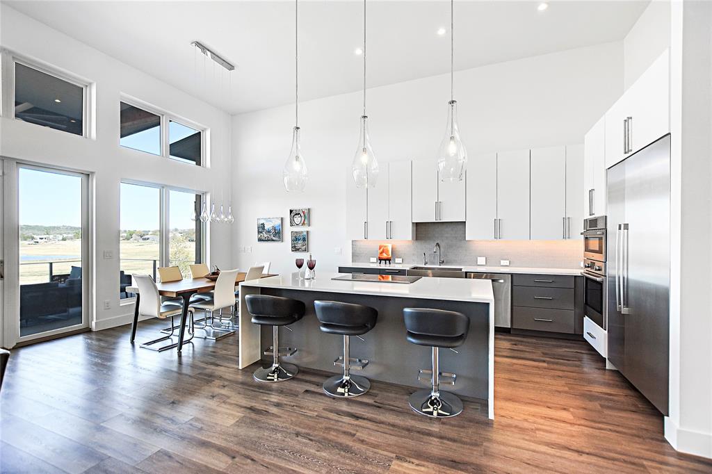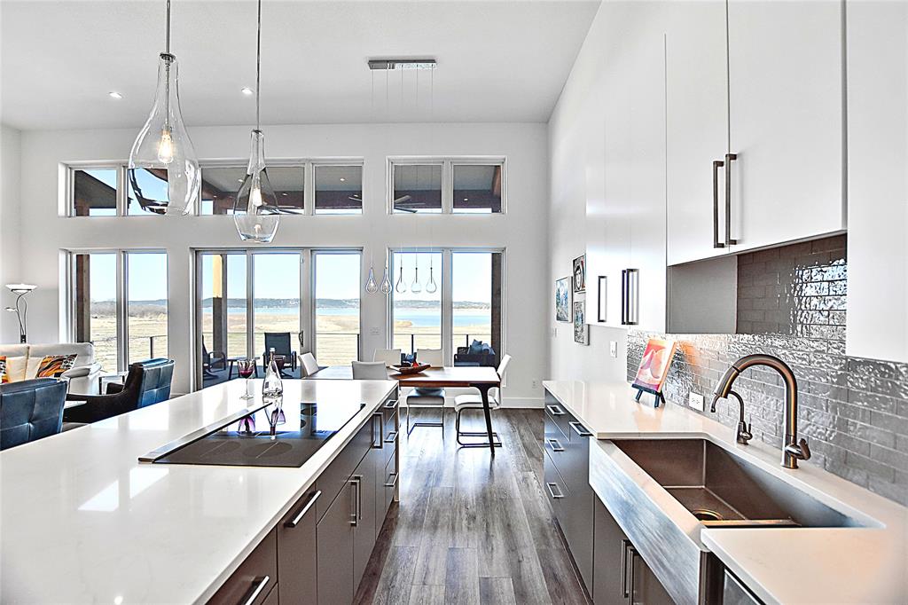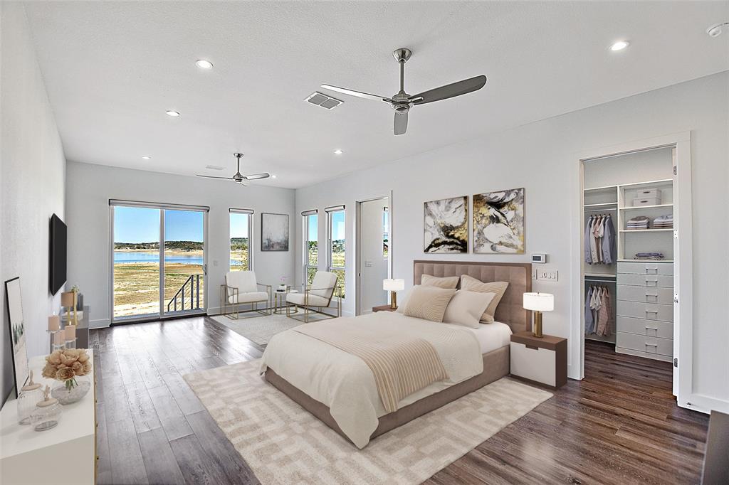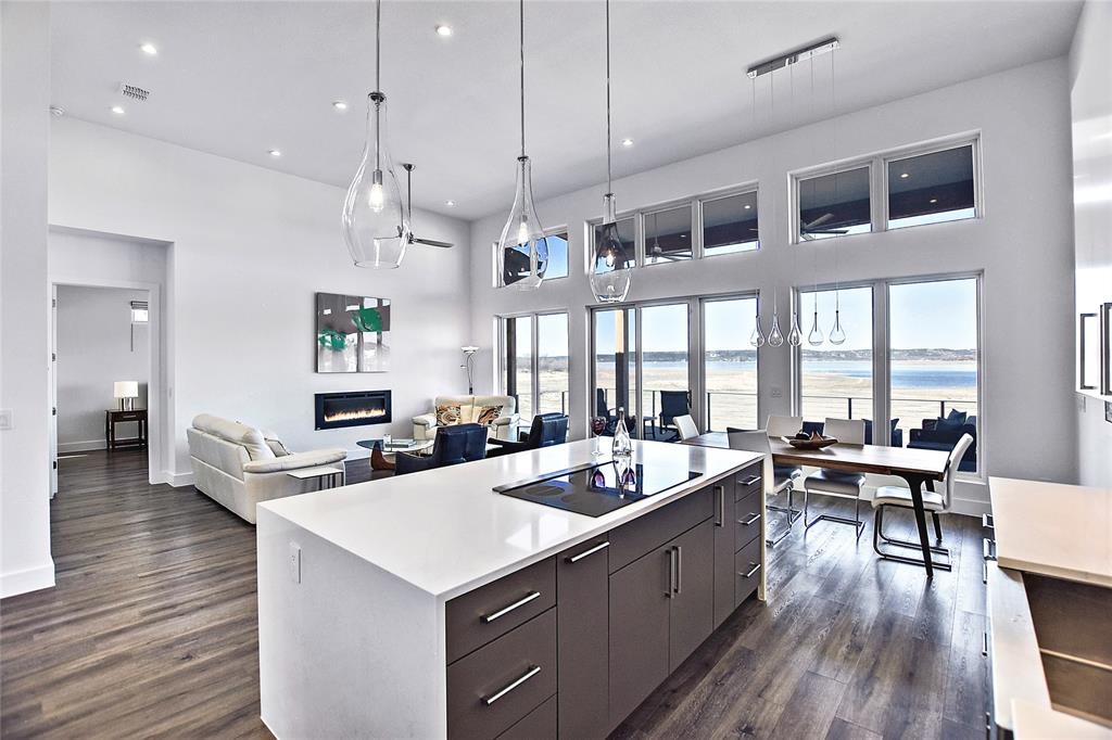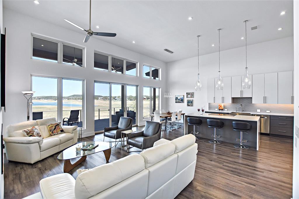 Significant Price Improvement! Exceptional Lake Front Home in the Exclusive Gated Community of The Peninsula on Lake Buchanan. Better than new, built in 2020 with strong attention to detail by Casa Sereno Homes, high end finishes and remarkable functionality. This custom home boasts incredible curb appeal, the white stucco façade and dark metal roof is beautiful in contrast to the big blue sky and sparkling water. Double divided light front doors open into what can only be described as stunning! Wide open entry with a view straight out to the patio and lake. Fabulous Open Floorplan features a chefs kitchen with Bosch appliances, Induction cook top and telescoping range hood. Kitchen, Dining, Living is all open concept and though contemporary, feels warm and inviting. Electric Fireplace offers ambiance and heat when you need it. Owners suite with spa inspired bathroom, free standing tub, walk in shower, double vanities, 2 walk in closets, statement light fixture & WC with a bidet. The right wing of the home features an office, a gym/flex room (or 5th BR), an additional ensuite - primary or guest quarters large enough for a living area and bedroom, would work perfectly for multi gen living. Remote Controlled interior and exterior window blinds & shades. There are a total of 4 bedrooms and 3 full baths. Recessed Lighting, Ceiling Fans, Smart Features, Green built home, Full Security System, wonderful storage spaces, dream laundry room and a fabulous pantry. 642 sq. ft. of covered terrace feels like additional living space. When the lake is at a normal level the water comes up to the line of vegetation just past the sand. 3 Car attached Side entry garage is 796 sq. ft, it's amazing. Keyless entry, full house water filtration and water softener. Enjoy the convenience of having a boat slip in The Peninsula's private marina & proximity to Burnet's charming Historic District- shopping, dining, local wineries. Just 1 hour from Austin! Also listed for Lease at $5,250 per mo.