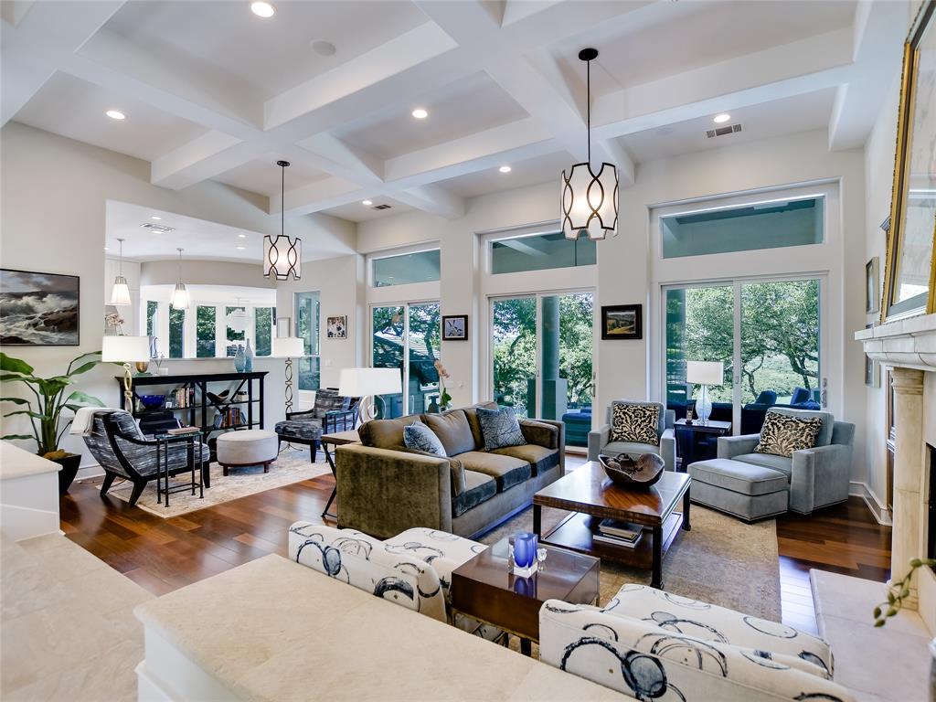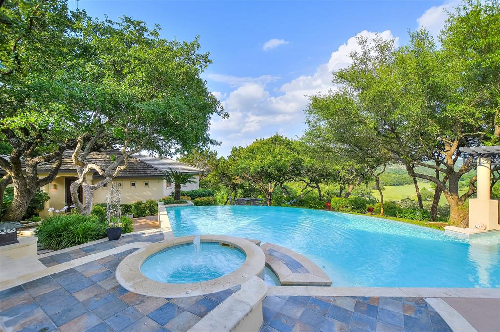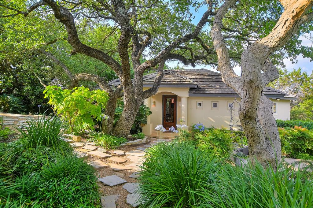 This heavenly estate is nestled in the Foothills of Barton Creek, high above Lost Creek Country Club. Must see panoramic views, modern updates, and timeless style! This home was designed specifically for entertaining guests, and showcases the recently modernized kitchen at the heart of it all. The property features two comfortably-sized homes with plenty of space to host family and friends for short or long stays. Sit by the pool or fire pit and enjoy expansive views of Lost Creek golf course and surrounding hills! Outdoor entertainment mecca includes built-in outdoor grill on main patio in addition to built-in bar on pool level and pergola with decorative lighting and built-in speaker system. Enjoy produce from your own extensive tiered gardens perfectly situated for optimal sun exposure. Your two-acre oasis awaits. Main House: 3,672 SF 3 beds / 3.5 baths + Den/Study 3 Car Garage. Guest House: 1,451 SF 2 beds / 2 bath with full sized kitchen and large den/game room situated above 117 SF climate-controlled walk-in wine room (wine room not included in overall square footage)