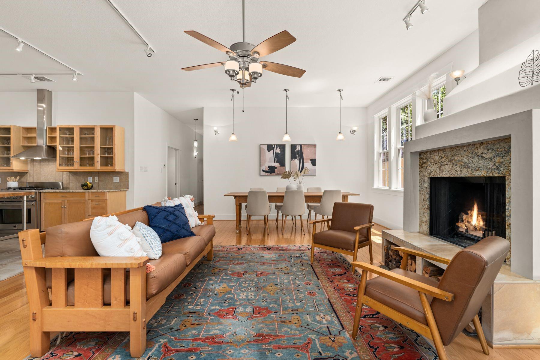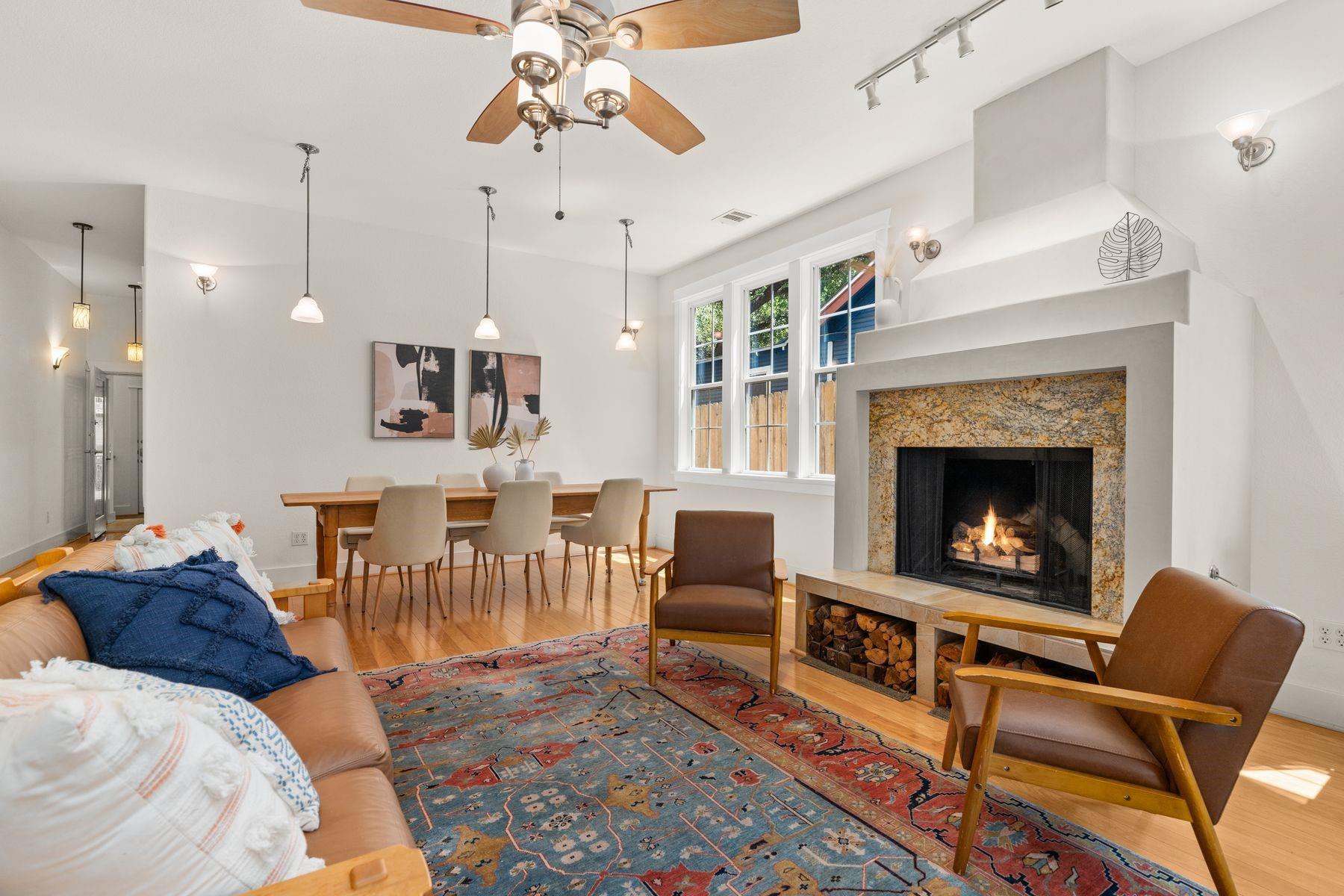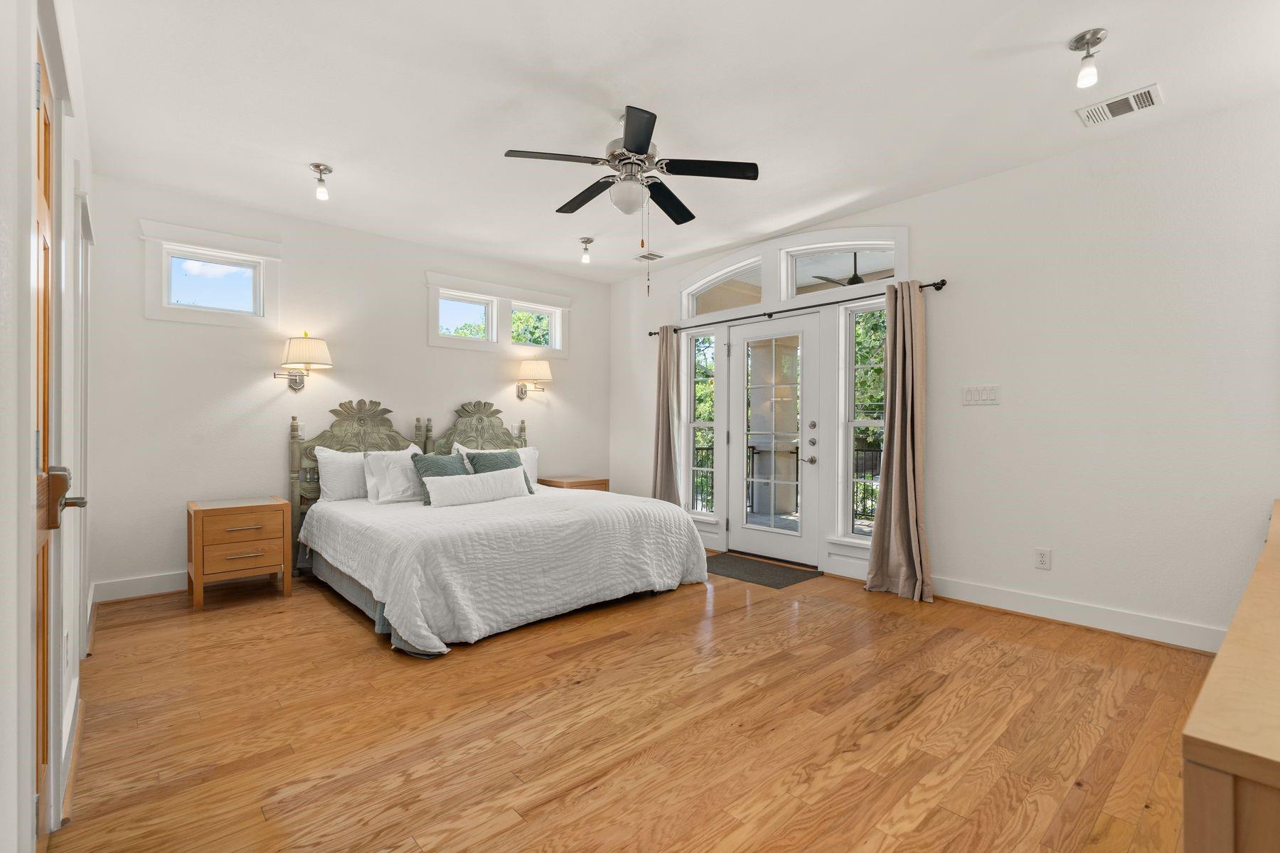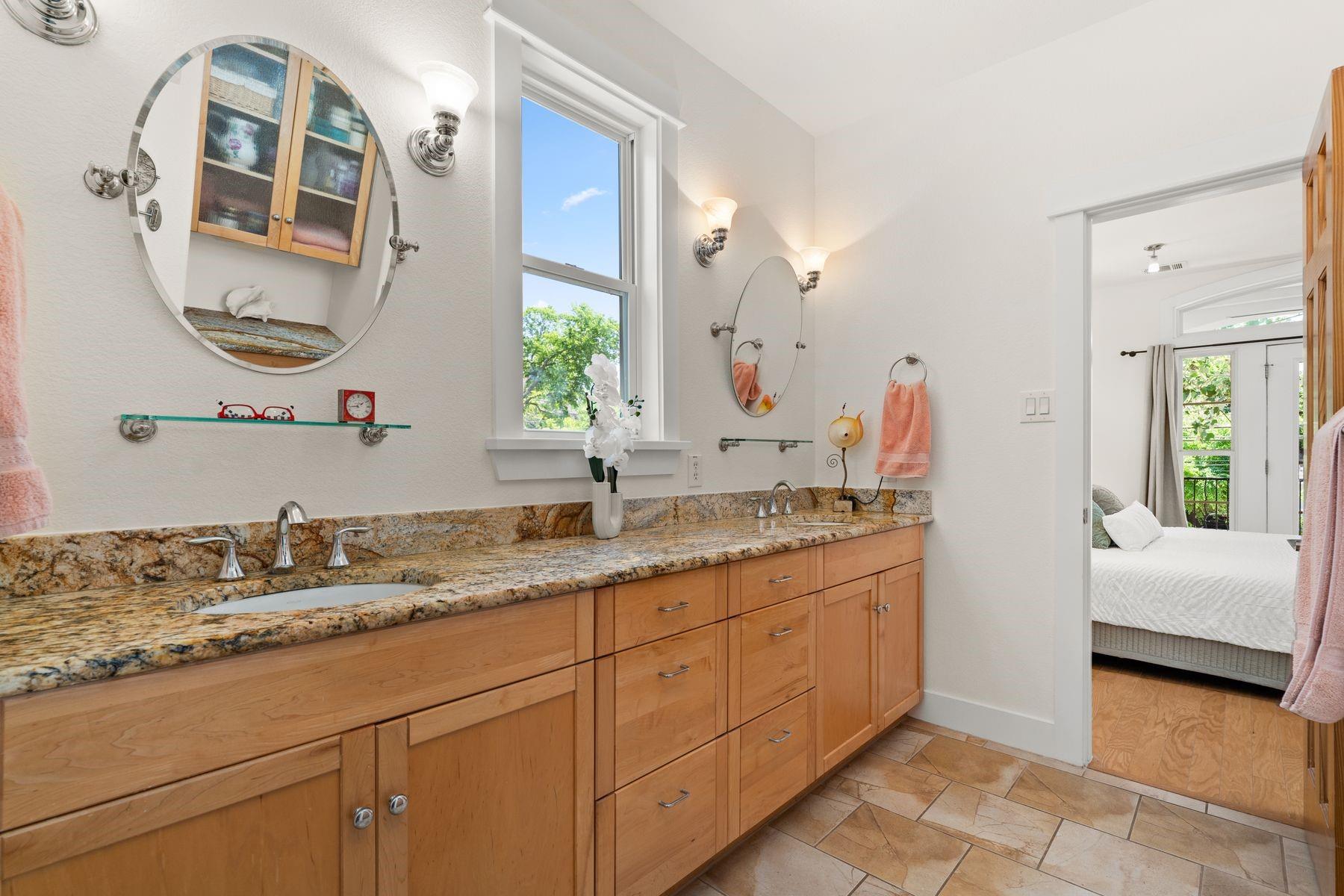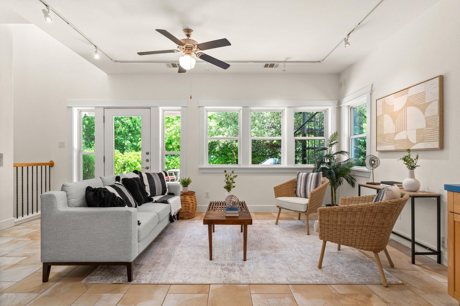 Looking for a great investment? Currently being used as a single family residence, this property becomes a duplex when just one interior door is changed to a fire door! And the 33x16 attic with a large rooftop deck is a canvas for a hide away apartment above it all. Whether you envision a multi-family dwelling generating income and poised for future growth, or a single-family residence with fully equipped guest accommodations, this versatility is unmatched! Located in the Bouldin neighborhood, mere steps from the famed South Congress district in revered 78704 surrounded by loads of dining, boutiques and cafes. 7800+ sf lot along with the home with nearly 3000 sf of living space is like a private haven immersed in the pulse of the city. Each level has a kitchen, dining area, living space, bedrooms, and bathrooms. Separate utilities ensure efficiency. Solar panels provide electricity for the top two floors with low winter time bills. Elevator ascends to all 3 levels. First level contains living area with fireplace, kitchen, 3 bedrooms, one operating as a study with separate entrance and half bath. Extra-large bedroom in back of home with its own entrance has a new bathroom with walk in shower. Third bedroom has attached bathroom. Large pantry closet with washer/dryer hookups. All interior walls are of ¾ “ sheetrock and fully insulated, making the interior very quiet. Take elevator to the second level and discover back patio overlooking yard. Inside is another sitting area, kitchen (awaiting range installation) dining space, two bedrooms each with doors leading to covered patio. Primary bedroom with walk in closet and en suite bath with double sinks. Secondary bathroom also has laundry facilities. Front courtyard surrounded by stone wall includes a fountain, while electric gated driveway and fenced backyard is covered in trees. Covered carport with storage cabinets. Two RV hookups which can be converted for electric car charging stations. Possible seller financing!