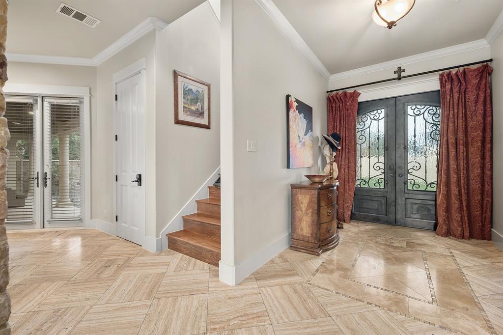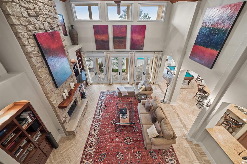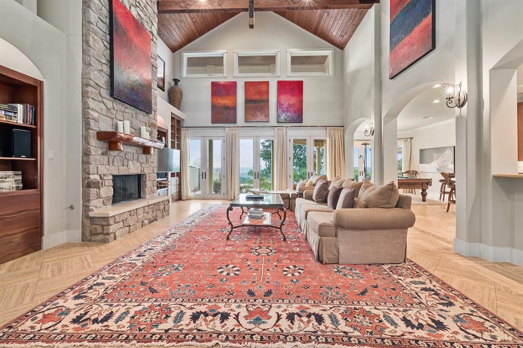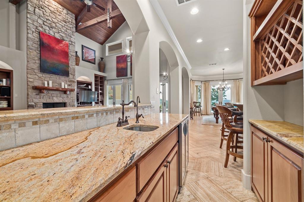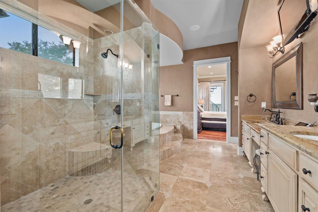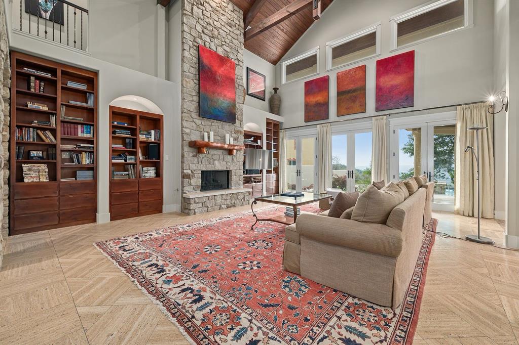 If you’ve ever dreamed of having your own private oasis, don’t let this opportunity pass you by! Enjoy your own private view of Lake Travis as you sit poolside or with friends and family waiting to enjoy dinner in the cabana. The oversized lot boasts .64 acres with a private orchard. Inside, fully embrace your smart home while savoring the Brazilian Cherrywood, Red Oak, Brazilian Purpleheart wood flooring throughout the house. As you walk past your formal dining room, enjoying the spacious kitchen with Buff Peach granite countertops, veggie prep sink, wine glass cabinet, ample cabinet space in addition to a walk in pantry. Walk through your living room, briefly passing the pool table and Butler’s Nook while thinking of the next bottle of wine you’ll open from the personal wine closet. Spy on the next book you’ll read from your built in bookshelves as you make your way past your custom home office and a full bathroom on your way to your master suite with a gorgeous view of your pool and backyard. Enjoy the oversized jacuzzi bathtub or walk in shower. Make your way into your walk-in closet with built in dresser and cedar chest. Find your way upstairs on to 3 full bedrooms, 2 full bathrooms (Jack and Jill bath between two of the bedrooms), game room and media room. Recessed lights and Dolby surround sound will provide plenty of entertainment for friends with the built in cabinets, wine bar and sink. Step outside through the French doors and take in the fresh air overlooking your retreat. TOP OF THE WORLD VIEW! Majestic and private custom home on a corner lot with panoramic views of Lake Travis, 2500 sq. ft. of outdoor patio with inground negative edge pool/hot tub with a covered cabana with a woodburning fireplace. This home has beautiful travertine and cherry, mahogany and maple hardwood floors throughout to keep allergy sufferers to a minimum. private office downstairs, wine storage downstairs Home was built by Canyon Creek Homes!