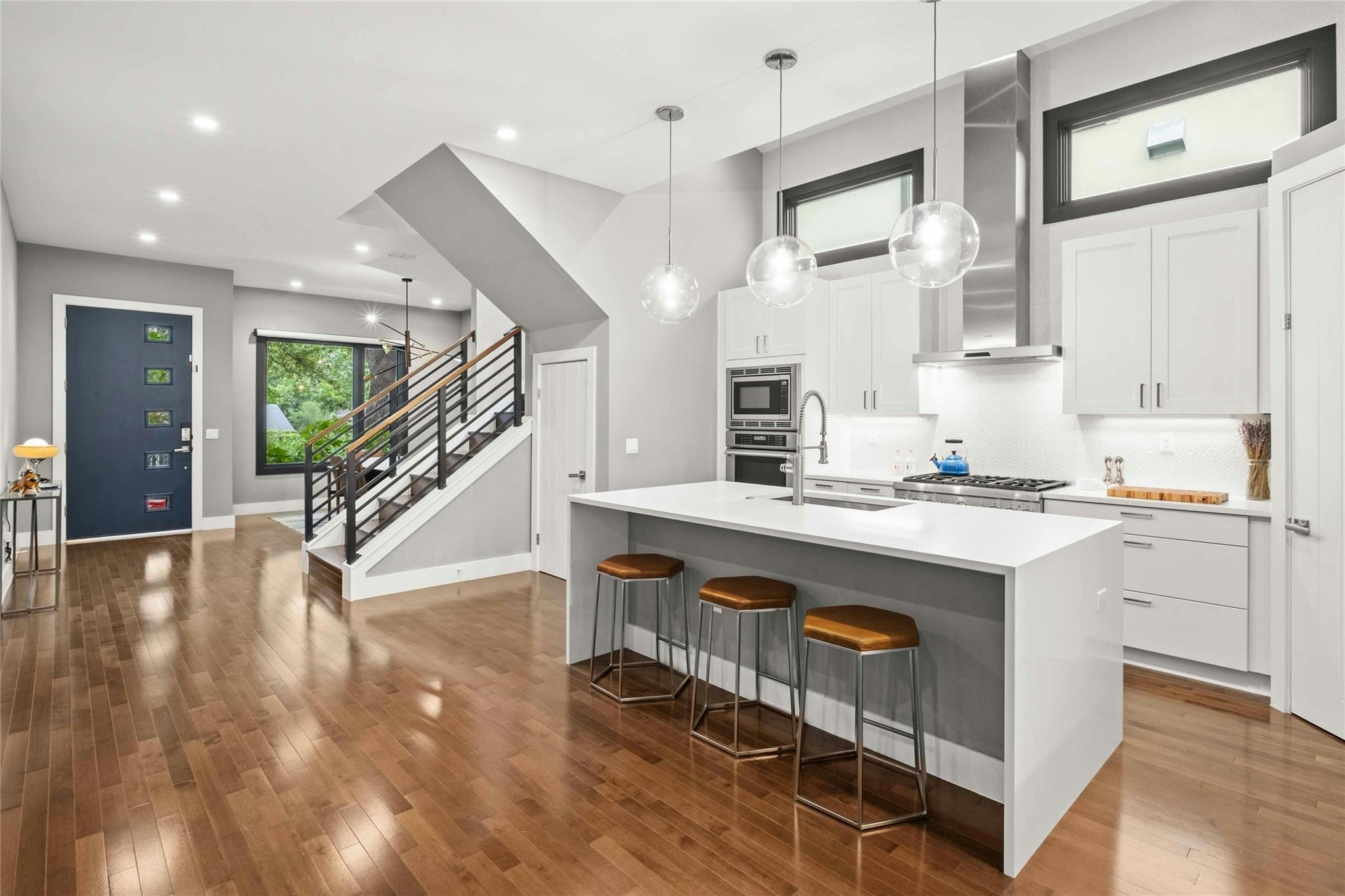 Check out this opportunity to live in the highly sought after area of Tarrytown in a stunning home filled with all the bells and whistles you could imaging! 1.5 blocks away from Lake Austin with all of the quaint eateries,including Mozart's coffee shop! This is a Smart Home with a Tesla solar powered battery wall that runs the entire home creating a fraction of an electric bill. There are so many amazing features in this fascinating home such as turning on the beautiful ambient outside lighting or cozy outdoor fountain with your phone or a voice request, SONOS ultimate wireless sound system throughout the home to create the perfect atmosphere and controlled by the customizable touch screens at each light switch, Tesla EV charger in the show room garage with epoxy fleck flooring, you can prepare a relaxing air bath after a long day with a touch of your finger and choose the perfect temperature and walk away with the worry free automatic fill shut off OR enjoy a luxury shower in the oversized walk in dual head shower. This home has fully automatic shades on the PlyGem MIRA aluminum-clad wood series windows for immediate comfort adjustment, top of the line Thermador appliances offering 3 ovens that that can keep things warm while entertaining, commercial grade gas burners for the ultimate cooking experience, soft close custom cabinets with roll out shelves, built in full size climatized wine cabinet, the dining room overlooks a heritage tree with uplighting and beautiful landscaping, enjoy the outdoors without worry from pests in the enclosed back porch. Upstairs you will find a flex room or second living area that could easily be transformed into a 4th bedroom if so desired. This immaculate home truly takes living and convenience to the next level and when accompanied with the exceptional location is the ultimate package! Don't miss out and schedule a tour today!