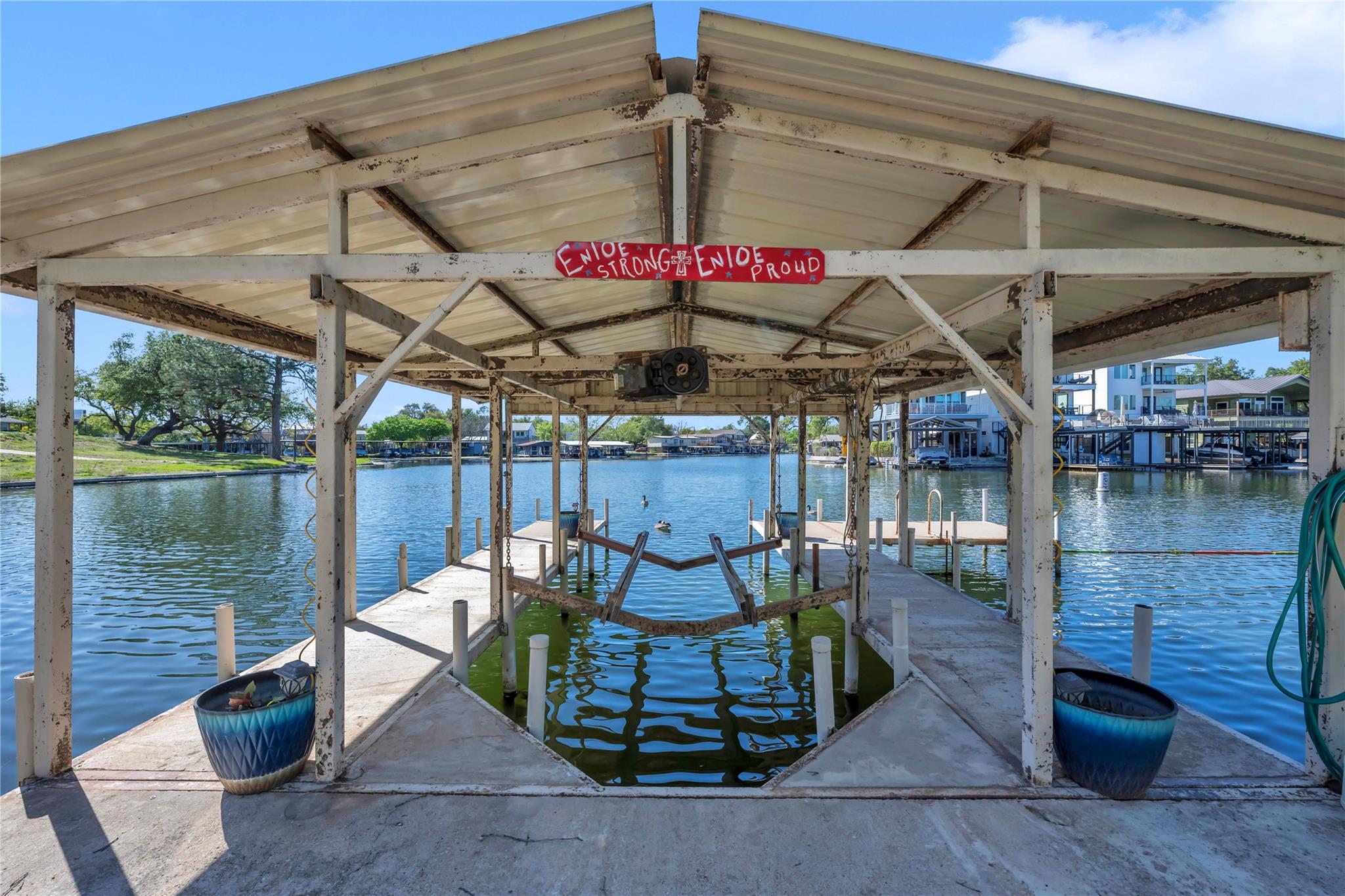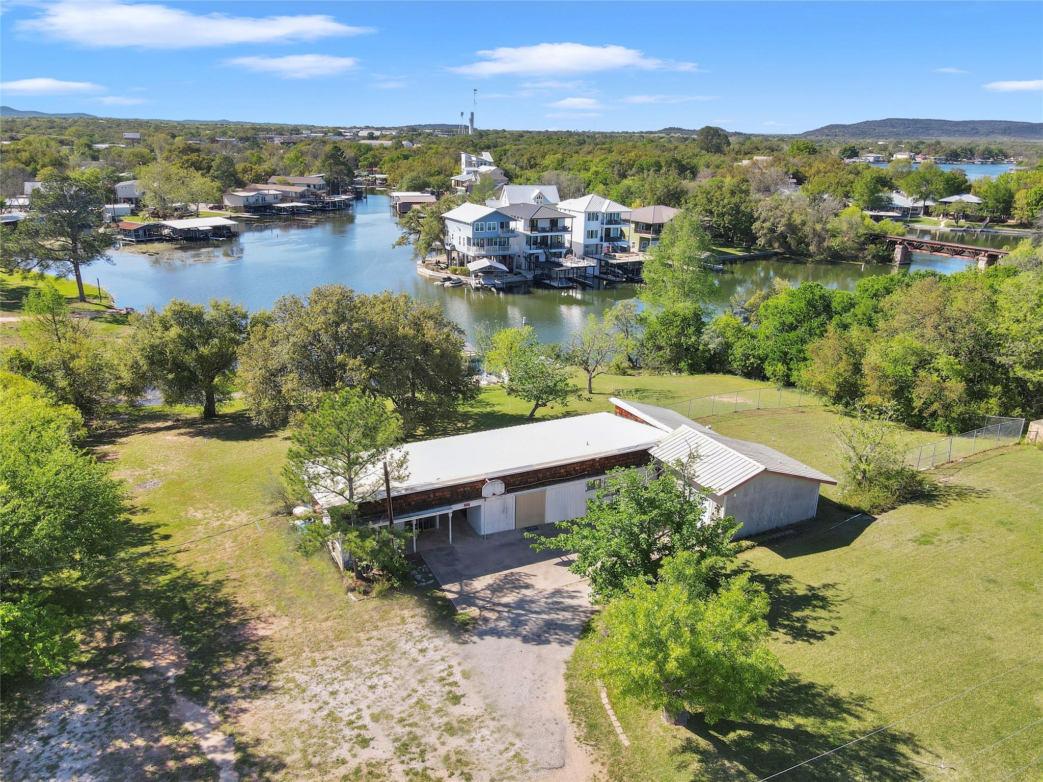 Enloe Escape is ready for its next owners. This beautiful 0.92 acres sits in the calm waters of Bonnie Cove. You can watch the peoplejump off the famous Kingsland Railroad tracks, enjoy the calm waters, and big bass. When you exit under the Railroad Tracks you areseconds to main body of LAKE LBJ. The waters edge includes 140 ft of LAKE LBJ waterfront and property extends into the Lake. Theproperty is made up of 10 lots of 30' x 140'. A future development could be 60' x 140 for three properties with lake front lot a 1/3 interestallowing each homeowner 46' for private boat dock or 2 large lots of 70' x 240' with each homeowner owning 70 ft of waterfront. Theflood zone is not to the house and the house did not receive water during the Floods of Oct 2018. The views are stunning. NumerousNative Texas Trees make for nice shade and large back porch. The home has beautiful history and memories that Kingsland hascherished. 3 bedrooms/2baths. Boat garage, dog fence with a County Road "Reynolds Street" on the Left side to the water and 20 ft ofeasement on the right. Do not miss out amazing LAKE LBJ water!
