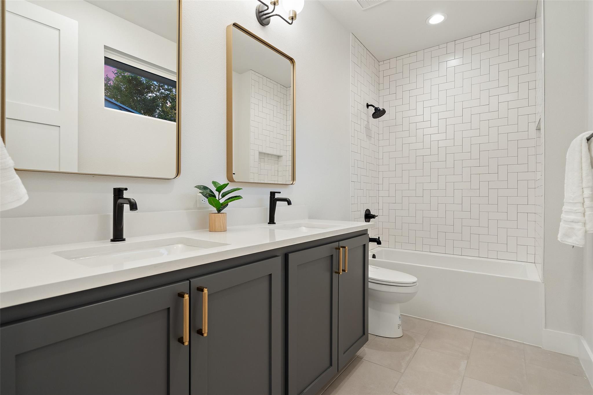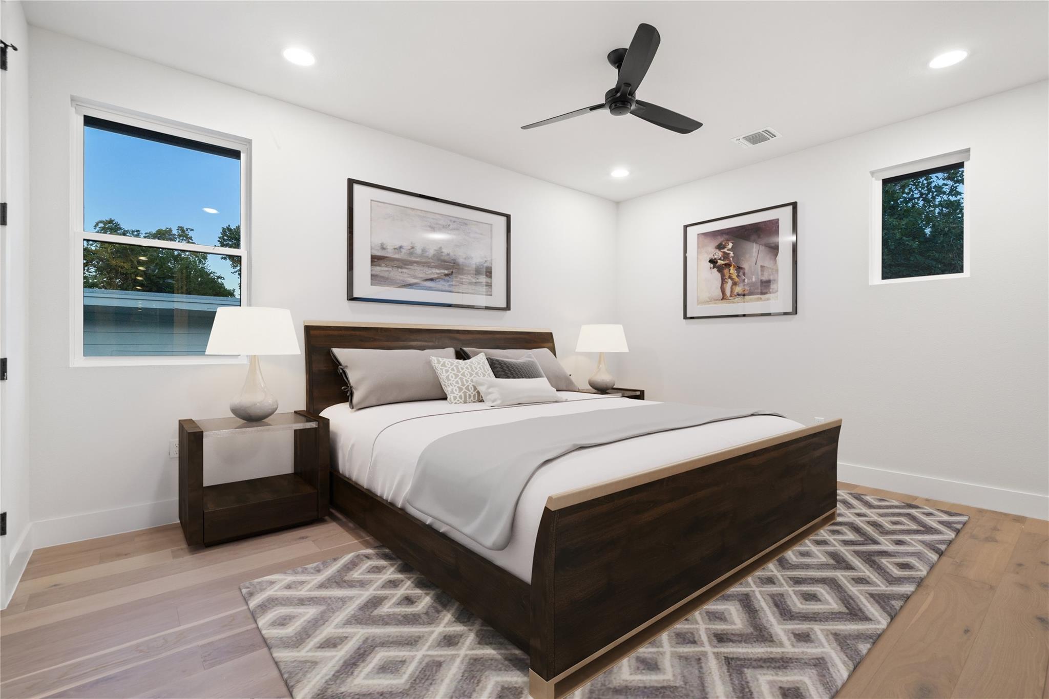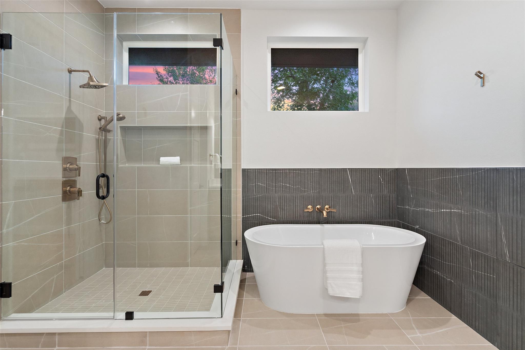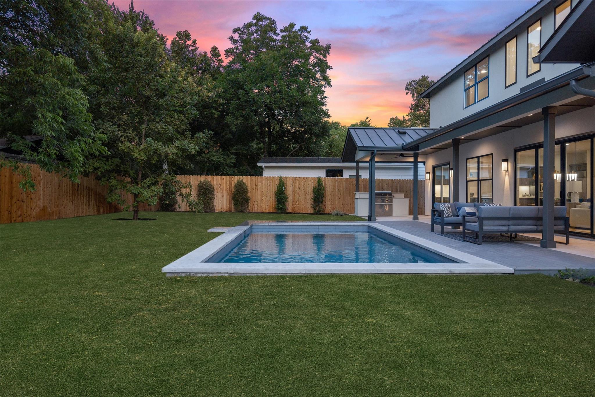 Welcome to 1304 Alguno in the 78757 Neighborhood. Gorgeous Custom Build featuring Primary on MAIN in one of Austin's hottest neighborhoods. This Modern pool Home By Rivendale Homes is 3,246 SqFt - The home features the primary and a secondary bedrooms down, with 2 bedrooms and a flex space up. This 2-story home features an open floor plan with tall ceilings, loads of windows allowing for abundant natural light, and thoughtful finishes throughout. The Primary Owner's suite redefines the spa experience with upgraded tile, soaking tub and oversized walk-in shower, situated on the main floor that leads out to the covered backyard patio, Pool + BBQ Station. The kitchen, dining, and open living room w/ fireplace overlook the pool & the rear yard space through the dramatic sliding glass doors. The kitchen space includes a generous island with plenty of bar seating with an island sink, across is the gas cooktop. The spacious upstairs includes two bedrooms,Plus a large open flex area, game room/playroom or media room awaits . This large additional living area is hard to find in this well-established neighborhood.