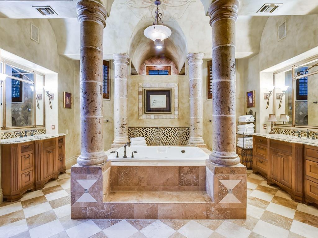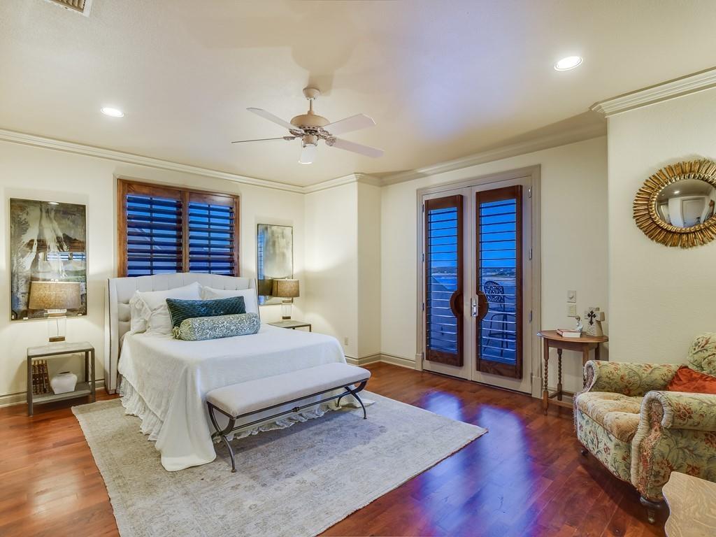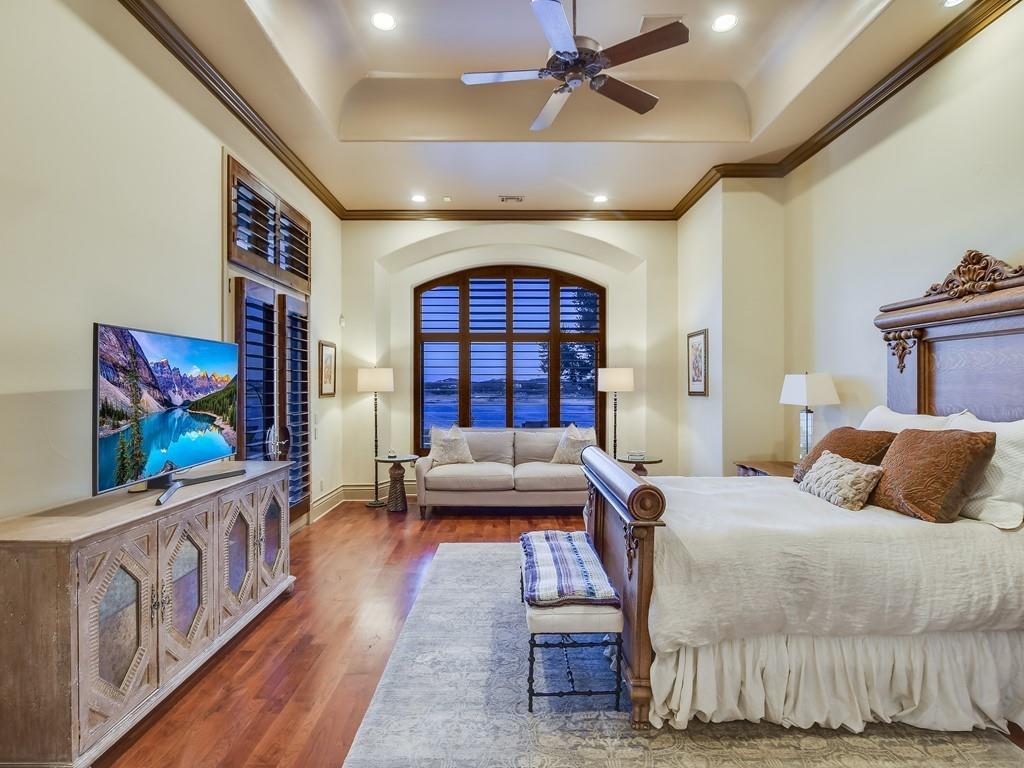 Sitting prominently on 2.6 acres of Lake Travis waterfront, this luxurious home is stunning in every detail. Soaring ceilings and curving arches guide you through a stunning home offering extraordinary lake views.!!! BOAT SLIP WITH LIFT AT NORTHSHORE MARINA CONVEYS WITH THE SALE!!!! You'll find tranquility in this serene setting while enjoying the high-end amenities of the home. With granite countertops, custom built-ins and stone carved details, this home spoils you beyond imagination. Hiding around every corner is another wonderful amenity such as perfectly placed fireplaces with carved in stone mantles, plantation shutters, a bar overlooking the family room and a cozy living room that opens to a covered patio. You are wrapped luxury in every detail. The incredible design carries you into a spacious kitchen where cooking is a delight with a large granite island, high-end appliances and a walk-in pantry. The luxury continues into a private wine collection cellar and lavish study boasting built-in bookshelves and a cozy fireplace. Cathedral ceilings and towering windows in every room welcome you. Step inside to the primary bath fit for a king and queen, resting among stone pillars and surrounded by luxurious detail. This stunning resort style retreat is waiting for you in The Hollows at Northshore on Lake Travis. Entertain and wow your guests with breathtaking views of the lake from your private backyard oasis. The resort style pool and cabana are great for entertaining. The cabana has a built in Bar B Que grill and bathroom with a shower. Magnificent views looking up and down the lake. Close by is the Northshore marina, Hollows Beach club with pools, restaurant, picnic area, playground and sport courts. Trails wind through the Hollows and are perfect for biking, hiking and small motor vehicles. Truly one of the most beautiful homes on Lake Travis. The views are panoramic. Over 1,300 sf of covered porches, terraces and outdoor living for entertaining.