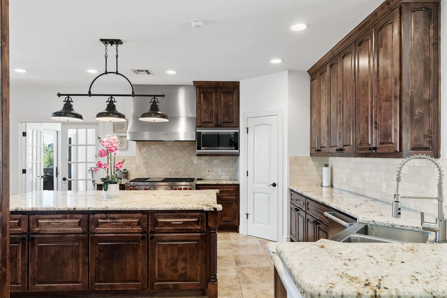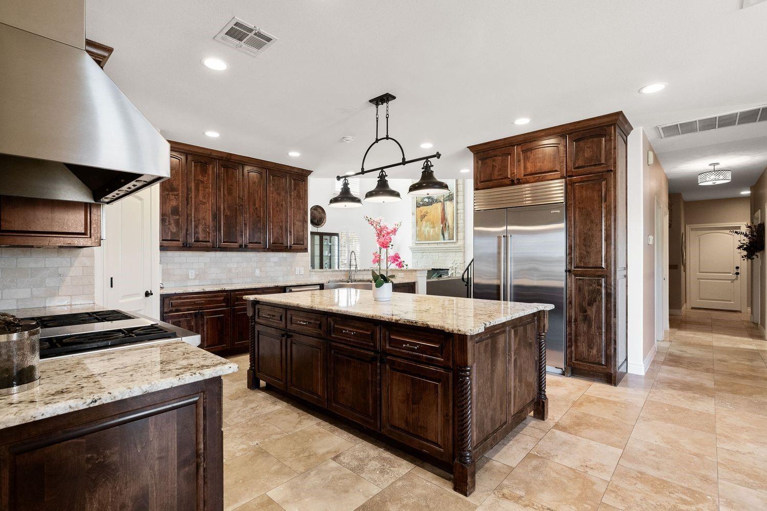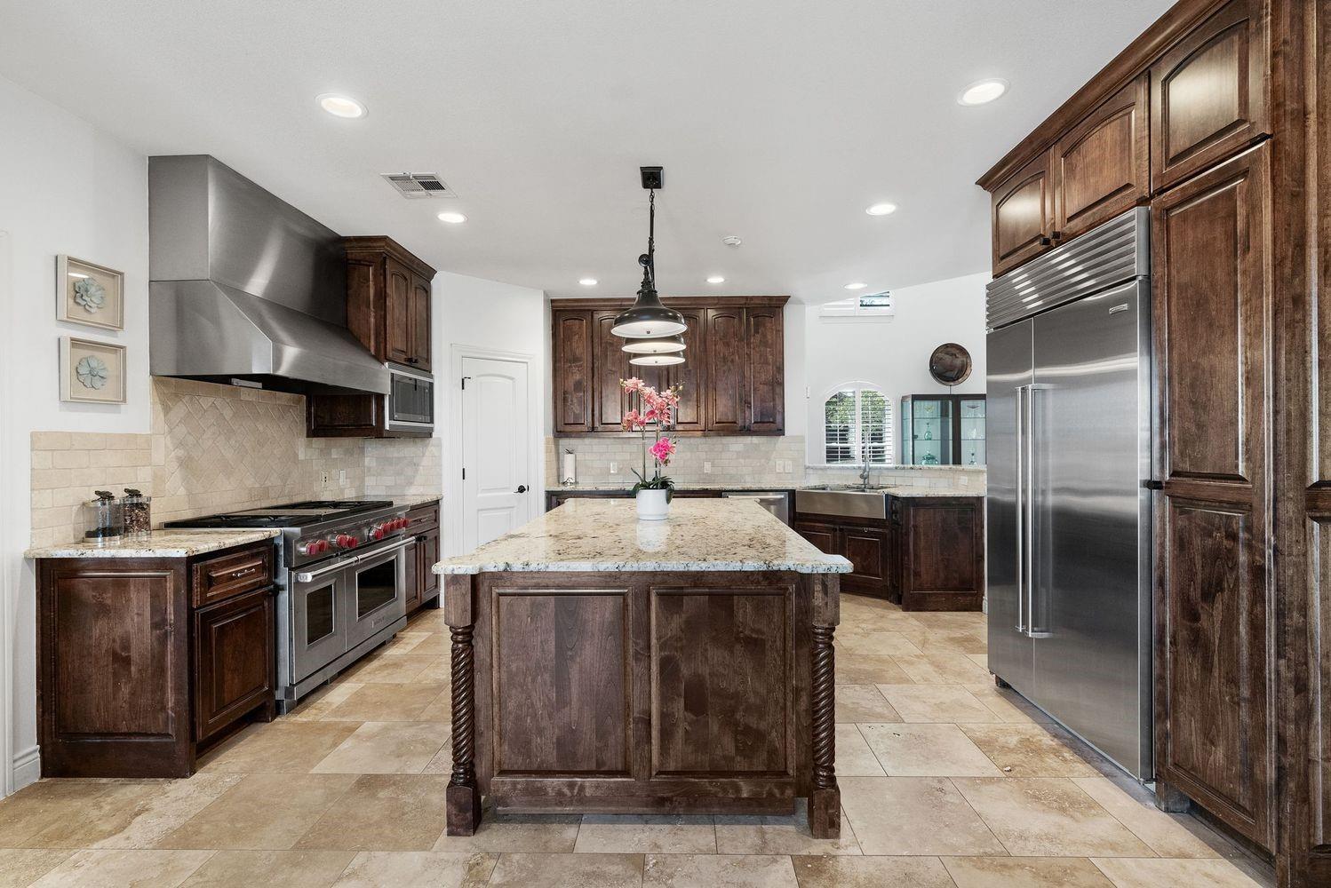 The expansive floor plan exudes warmth & sophistication with lofty ceilings & recent enhancements throughout. The gourmet kitchen, outfitted with a 48" Wolf Range, rich alder cabinets, & ample space for entertaining, is the heart of the home. From dual game rooms that can transition into versatile studies to the formal & informal dining & living areas, every space is crafted for both relaxation & hosting, while offering panoramic views that inspire contemplation of future outdoor amenities.