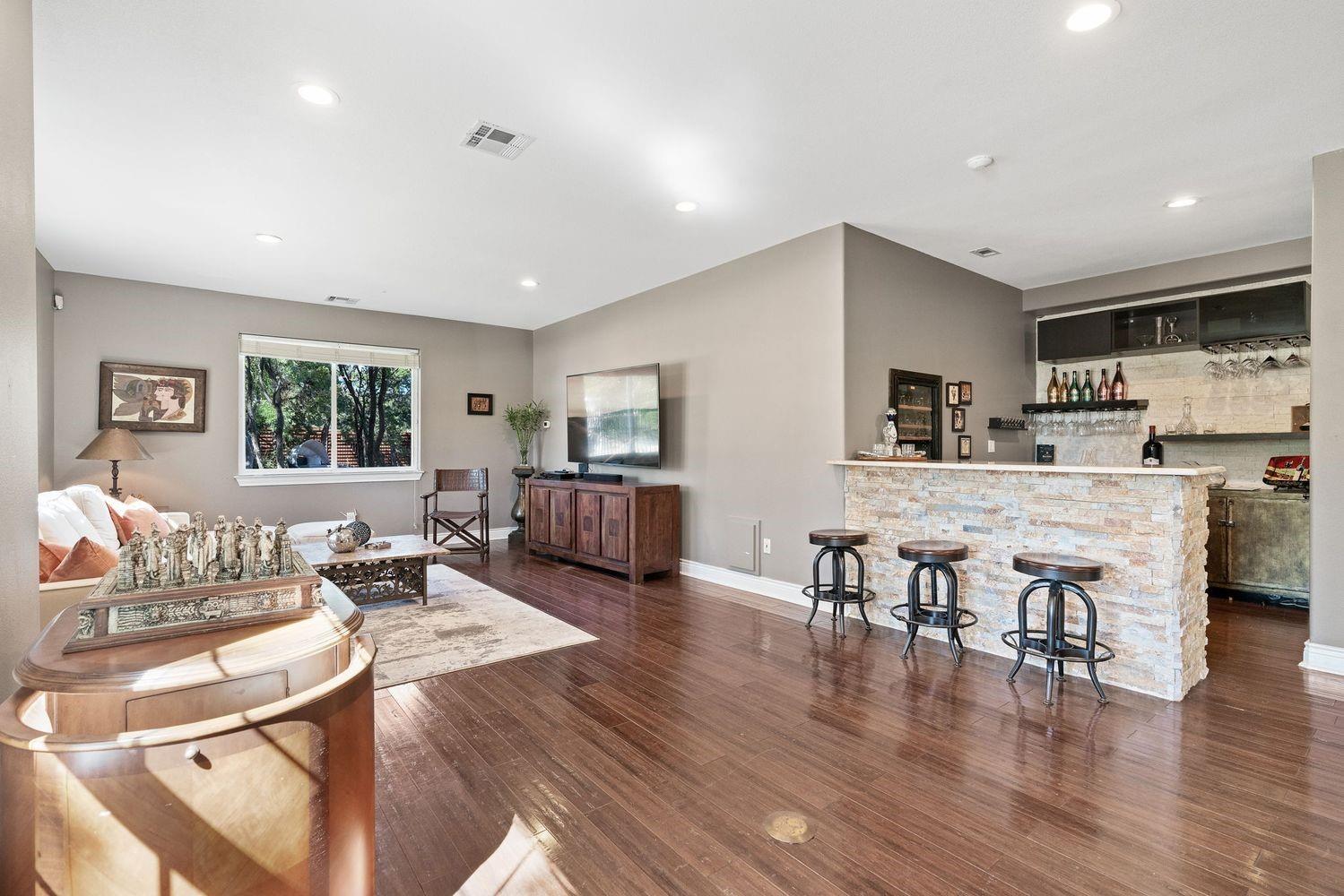 The lower level with bonus room, powder room, and a large space, previously utilized for bitcoin mining, presents a versatile canvas awaiting your vision. With dual exterior entrances, commercial-grade AC for server cooling, & comprehensive underfloor wiring, it can effortlessly transform into a sprawling office suite, dynamic recreation area, professional-grade kitchen, or even a 2BDRM apartment. Blending comfort & functionality, this residence epitomizes refined living in one of Austin's most coveted locales, with unparalleled access to the city's finest attractions and amenities.
