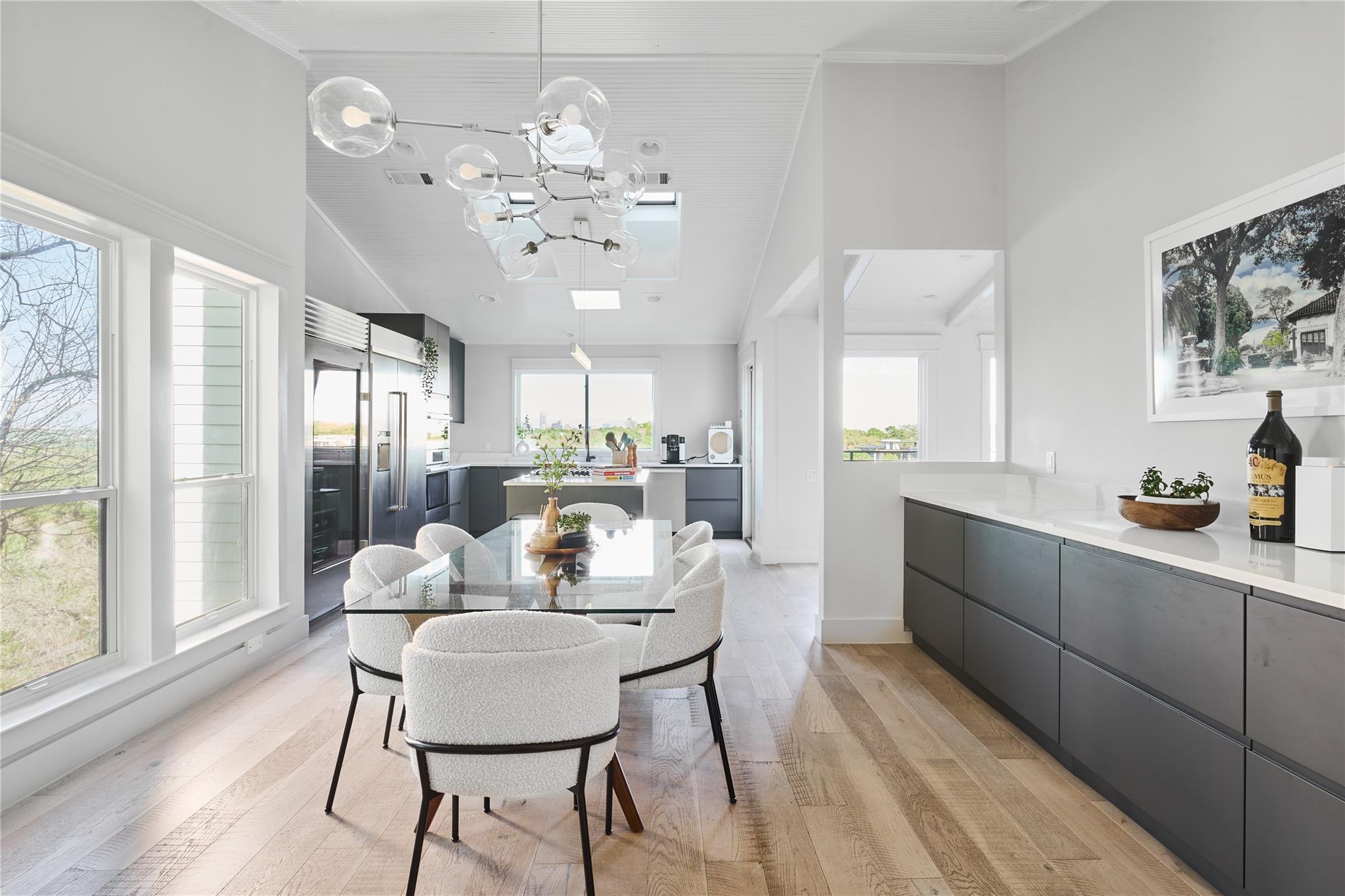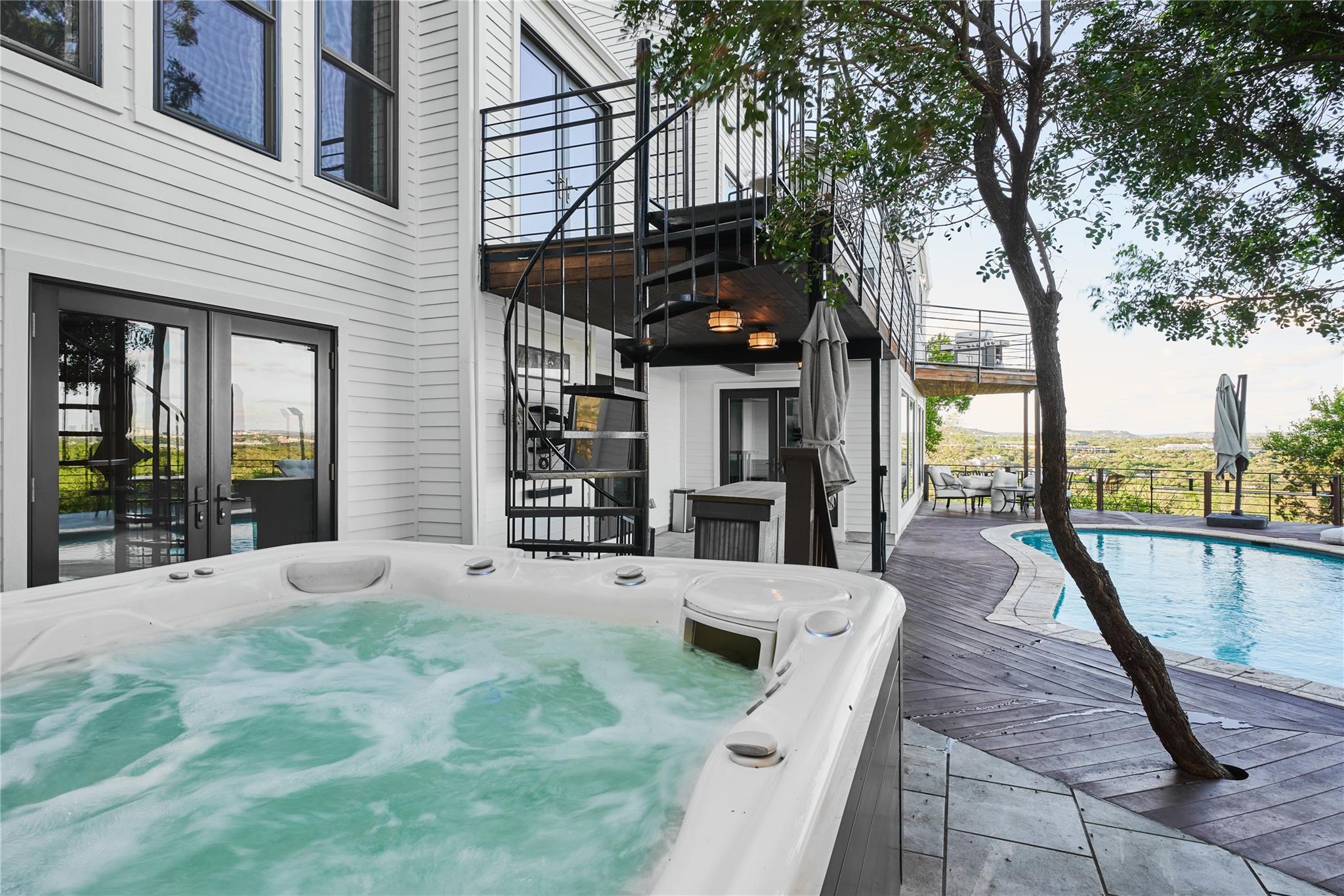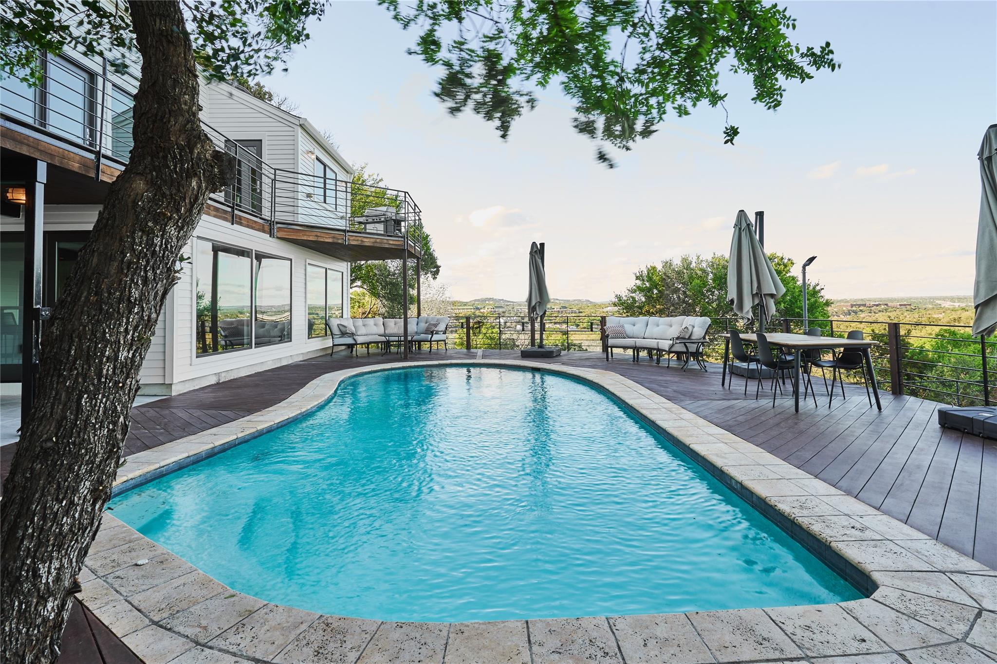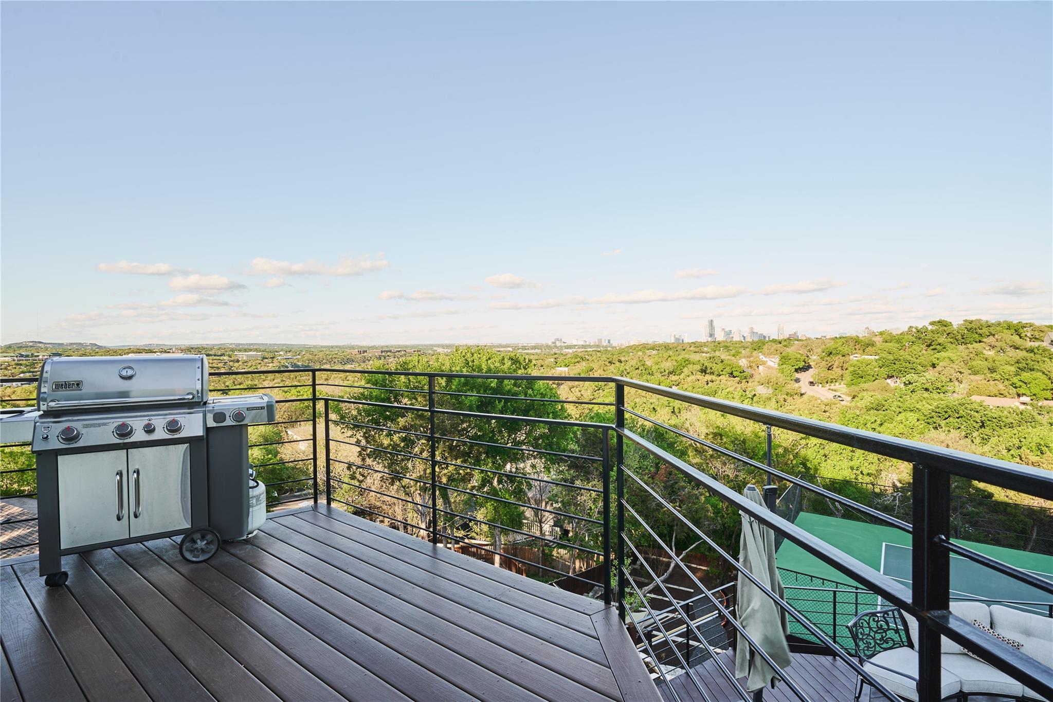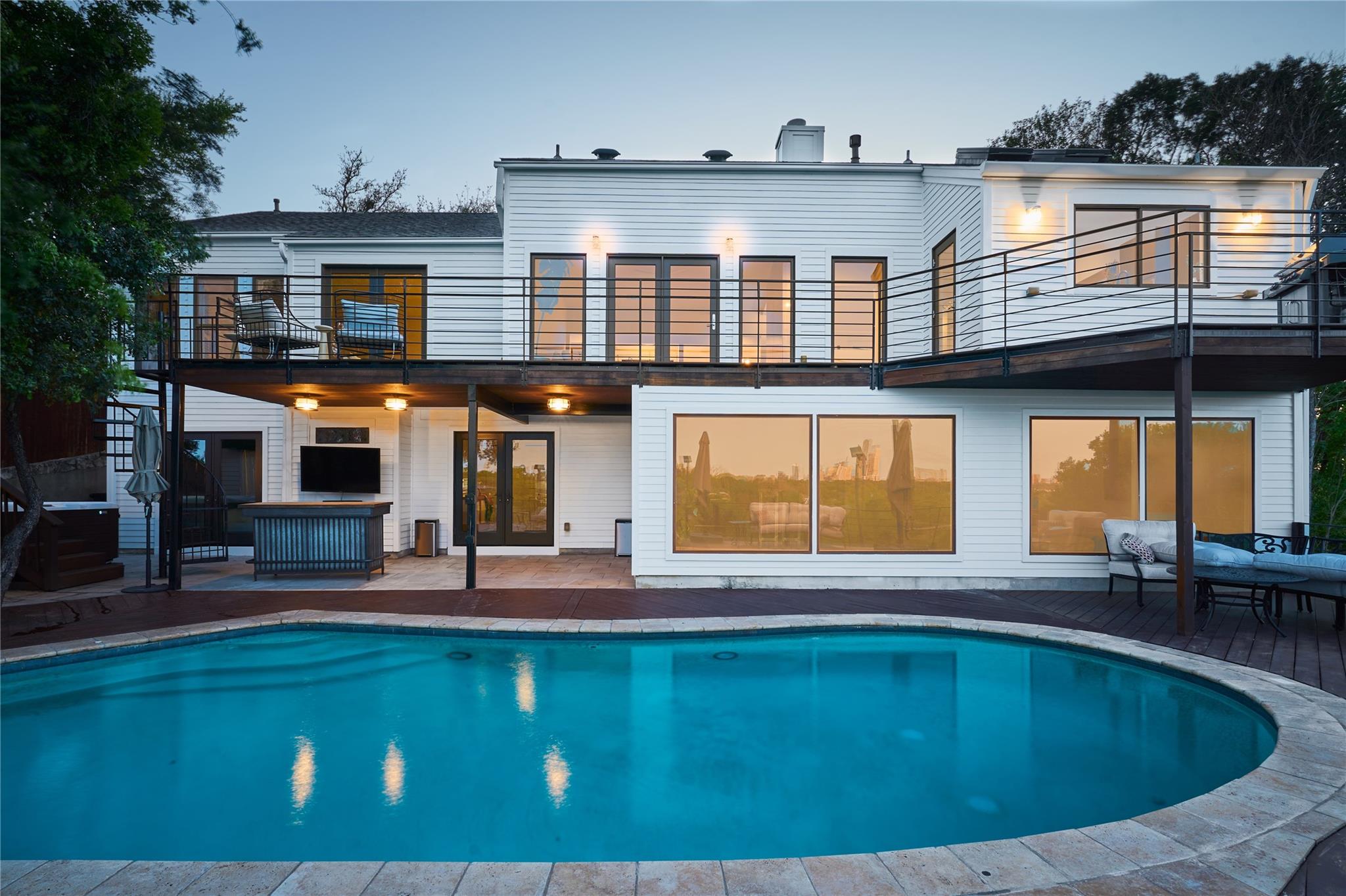 Welcome to the pinnacle of South Austin living - a contemporary masterpiece nestled at the highest point of Barton Hills, offering breathtaking panoramic views of Downtown Austin and the majestic Hill Country. This is truly one of one, with the cherry on top being an elevated full-size pickleball court - something you just can't find anywhere else. Situated at the end of a tranquil cul-de-sac, this exceptional estate spans approximately 3,688 square feet, boasting 4 bedrooms, 5 baths, and unrivaled amenities that redefine luxury living. Step inside to discover a thoughtfully remodeled interior designed to maximize the sweeping views, with each room offering an abundance of natural light and access to exterior decks and patios. The main floor showcases a spacious kitchen adorned with quartz countertops, stainless steel appliances, and an inviting eat-in dining area. A formal dining space, a comfortable living area, a generously sized primary bedroom with an en-suite bath, a convenient laundry room, and a guest half-bath complete the main level. Descend to the lower level, where entertainment awaits in the form of a sprawling media and game room that seamlessly transitions to the outdoor oasis featuring a refreshing pool - an ideal setting for hosting gatherings or simply unwinding in style. Three additional guest bedrooms and two full baths ensure ample accommodation for family and visitors alike. A pool house equipped with a bar adds a touch of sophistication, while an outdoor shower and a hot tub provide ultimate relaxation against the backdrop of stunning scenery overlooking the Pickleball court. Complete with a 2-car garage and situated on an expansive lot of nearly half an acre, with proximity to greenbelt hikes, Zilker Park, Barton Springs Pool, eclectic shopping, dining destinations along SoLa, and the vibrant energy of downtown Austin. With its unparalleled views and unparalleled amenities, this legacy estate awaits its discerning new owner.