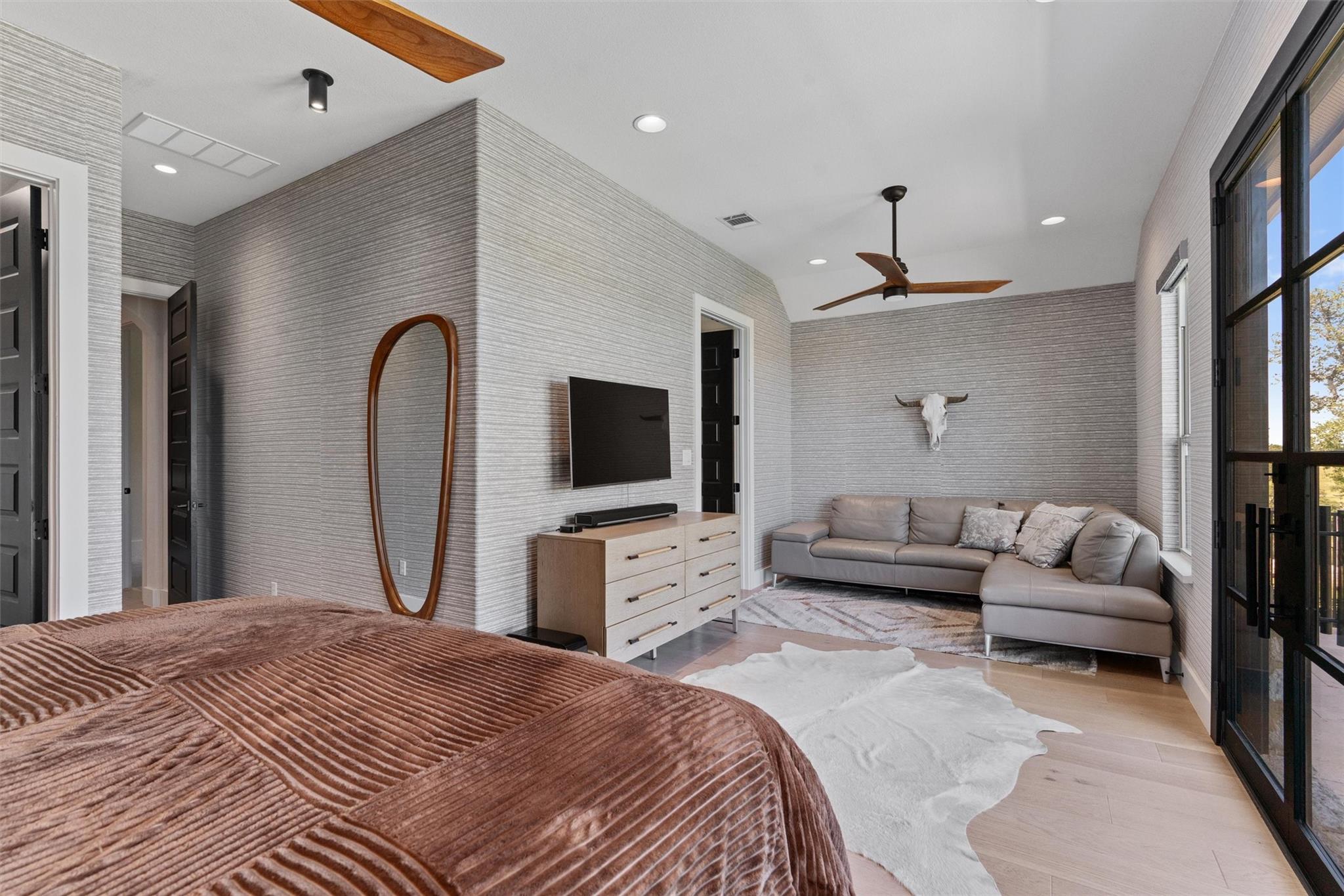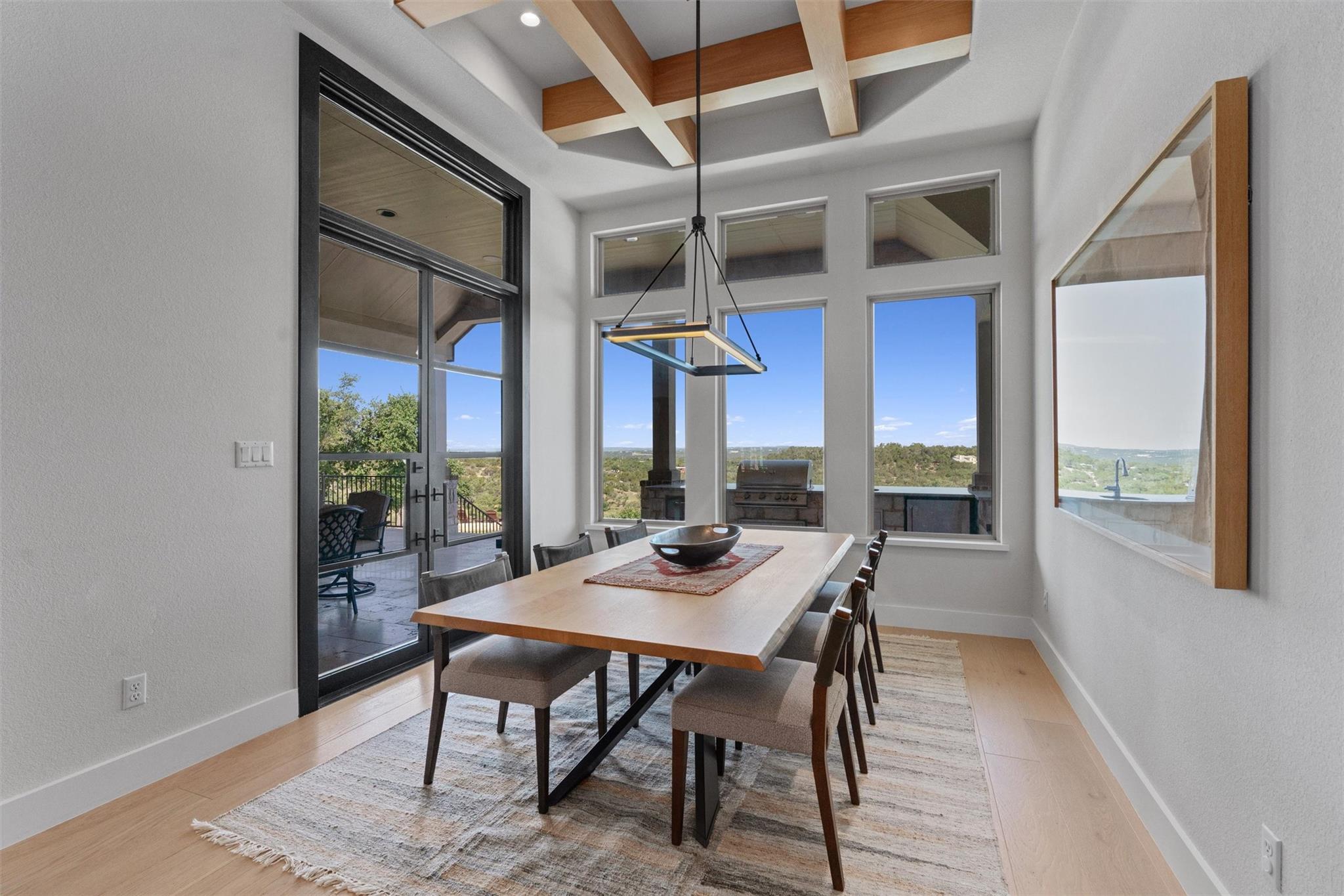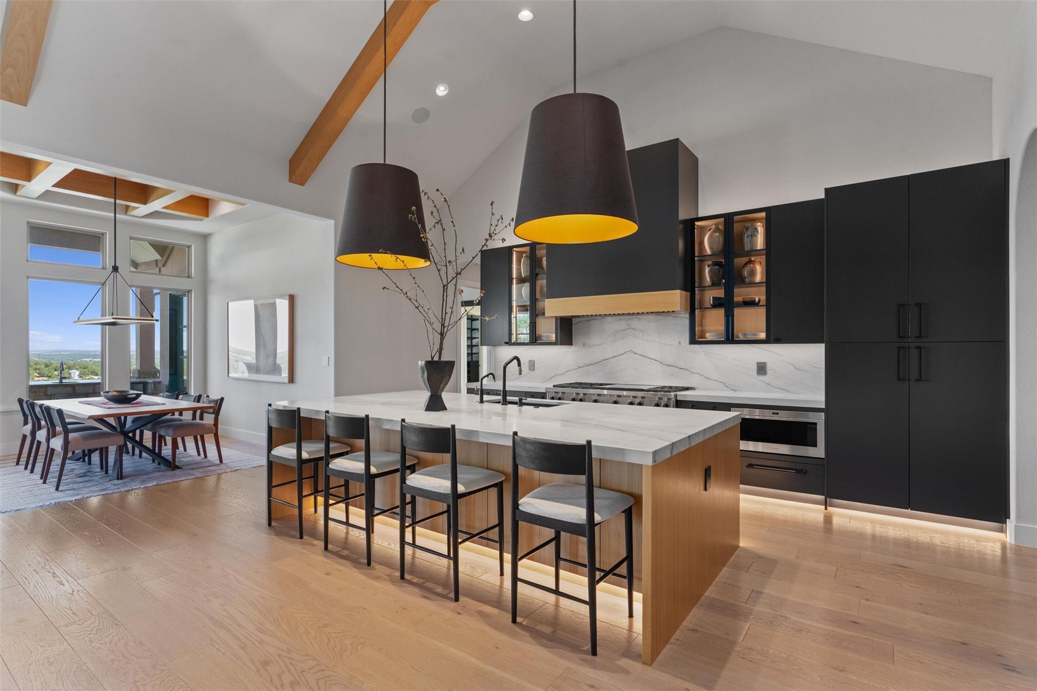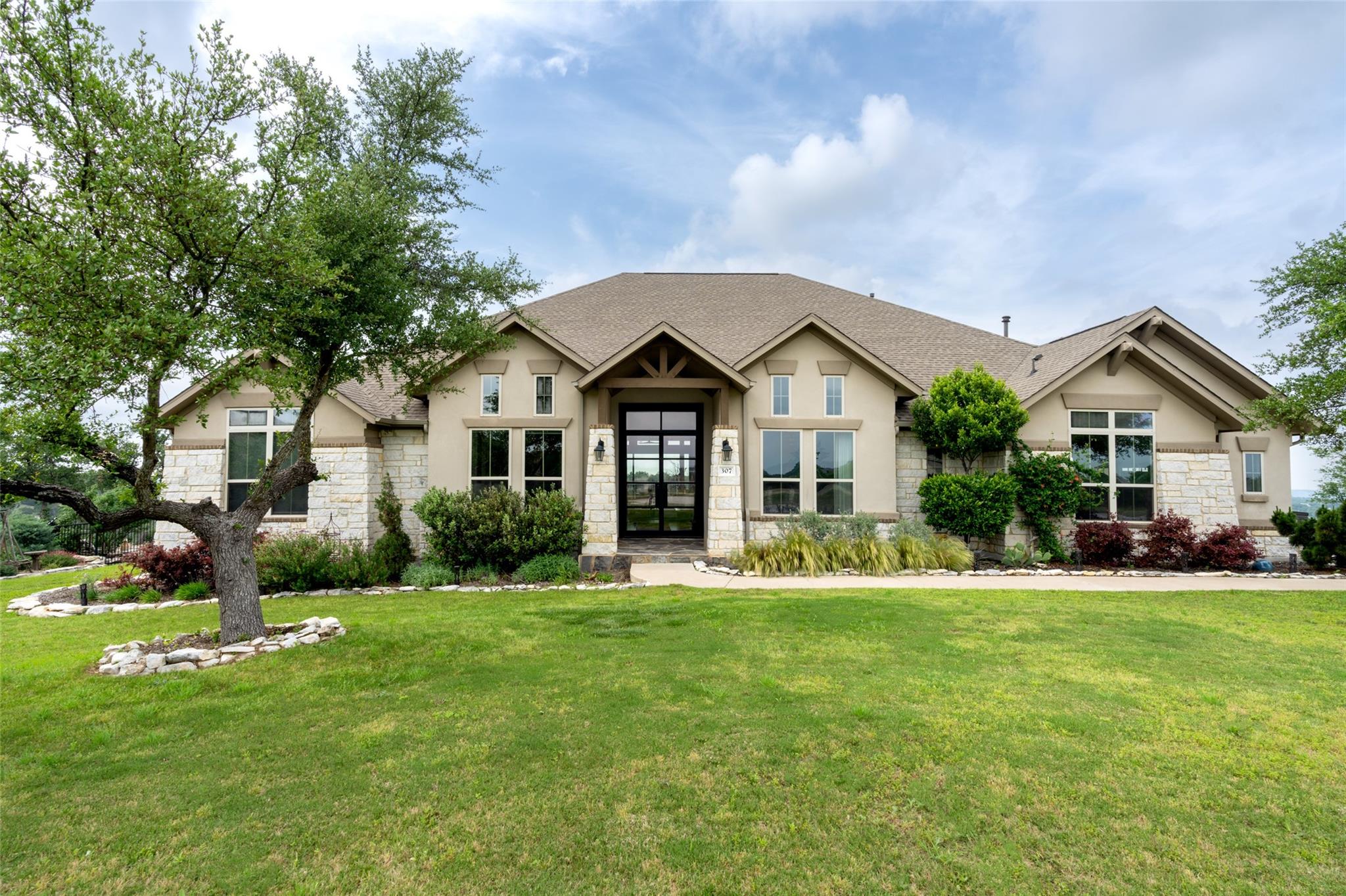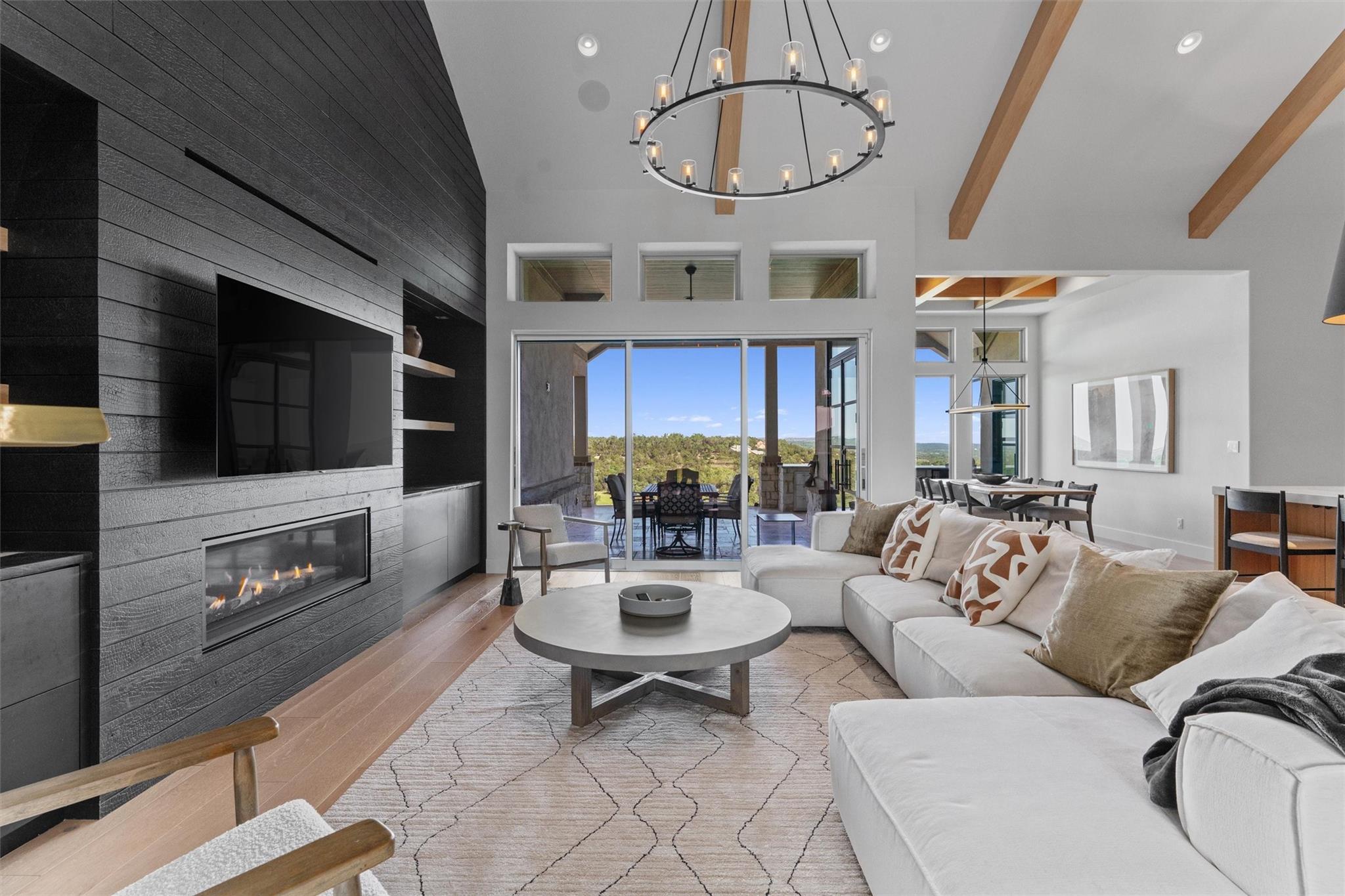 Forever views & $700K+ updates! Situated atop a panoramic 1.6 ac lot in the esteemed Saratoga Hills neighborhood of Austin – this preinspected, spacious 1-story layout has $400k+ in interior updates. Designed by Judi Fuller & optimized for natural light, high-end features that’ll first greet you are massive Cantera steel doors, vaulted 16ft ceilings adorned w/ elegant white oak beams, & 12’ x 8’ pocket door opening up to arguably the best Hill Country view in Hays Co! Stunning, chef-inspired kitchen includes custom cabinets w/ Blum & Ashley Norton hardware, built-in SubZero designer series fridge/freezer 36" columns w/ white oak panels, Wolf 60" gas range - 6 burners, infrared dual griddle & double oven and microwave & warming drawer. You’ll appreciate the attention to detail w/ Aria Leathered Quartzite bookmatched backsplash, countertops, & huge 128” x 65” island while overlooking the living room, featuring a traditional Japanese Shou Sugi Ban accent wall, Napoleon 60" ng fireplace, & TruAudio home theater system easily managed w/ Control4, perfect for relaxation or entertaining. Two primary suites bookend the 4,078 sq ft home, w/ 5/8" x 8” Anderson Tuftex engineered hardwood, custom carpentry, DMF lighting design, & RH fixtures. Work from home in a functional, modern style w/ built-in office next to the dry bar w/ Wolf coffee maker & bev ctr. Addl't two guest bedrooms & flex room offer versatility. Love to entertain? $300k+ in exterior improvements including outdoor kitchen & 50-ft lap pool w/ infinity spa surrounded by large backyard w/ native TX flora & gravel entertaining area under mature live Oaks for daytime leisure or sunset viewing. Thinking of a casita/ADU? Use your imagination w/ the prepped build site & access road beyond the double-gated wrought iron fence on lower level. With a world-class view & luxury amenities found in more expensive listings, this meticulously designed dream home & Hill Country lifestyle can be yours! Agent/owner - 307Seahero.com