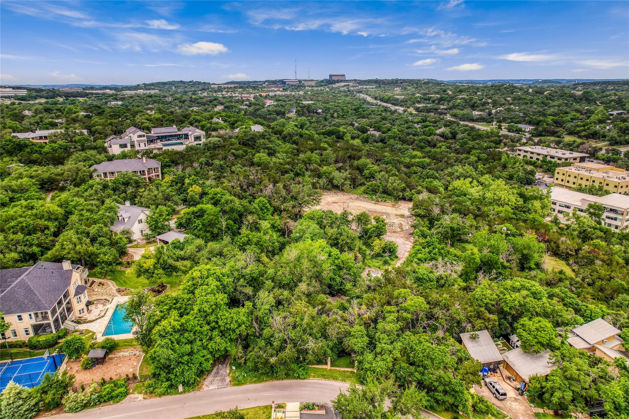 Tucked away in the heart of West Lake Hills, this 5-acre property is as spectacular as it is rare. A true estate property that exudes a magical setting of privacy and tranquility while betraying its central location. Enter through the property’s gate and meander down the private drive amongst established trees as the property opens up to display downtown Austin views. The gentle topography and sizable acreage make this the ideal setting to create a distinguished estate.
