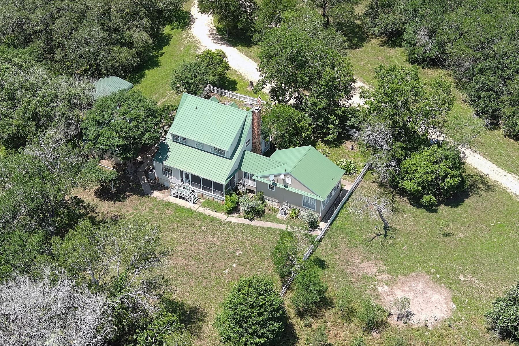 A unique opportunity awaits to acquire an expansive and picturesque ranch in Caldwell County! Spanning approx. 262 acres, the property features a diverse landscape of rolling hills, Plum Creek frontage, and bottomland adorned with majestic hardwood and pecan trees, along with excellent grazing land. The ranch boasts a charming two story French Creole Style home with 3 bedrooms, 2.5 baths, country kitchen, living area with fireplace, wood floors, a sunroom, an enclosed sun porch and detached 2 car garage. Ample windows provide stunning views of wildlife and the surrounding natural beauty. Additionally, a one bedroom, one bath guest home from the 1920's relocated from Austin. Property includes several old barns, cattle pens, 4 stall tractor shed, portable building with electric, several water wells & electric in different areas of the ranch.Wildlife exempt. Ranch is cross fenced into several pastures and offers many other nice homesites for your family. Several granddaddy live oaks on this property. Lots of wildlife including Deer, turkey, pigs and much more. Family and grandkids could enjoy this ranch for many years to come. Approx half mile interior gravel road through ranch is a big plus. Less than one hour from Austin, only 15 minutes to toll road 130 in Lockhart and less than one hour from ABIA airport in Austin. Must see!