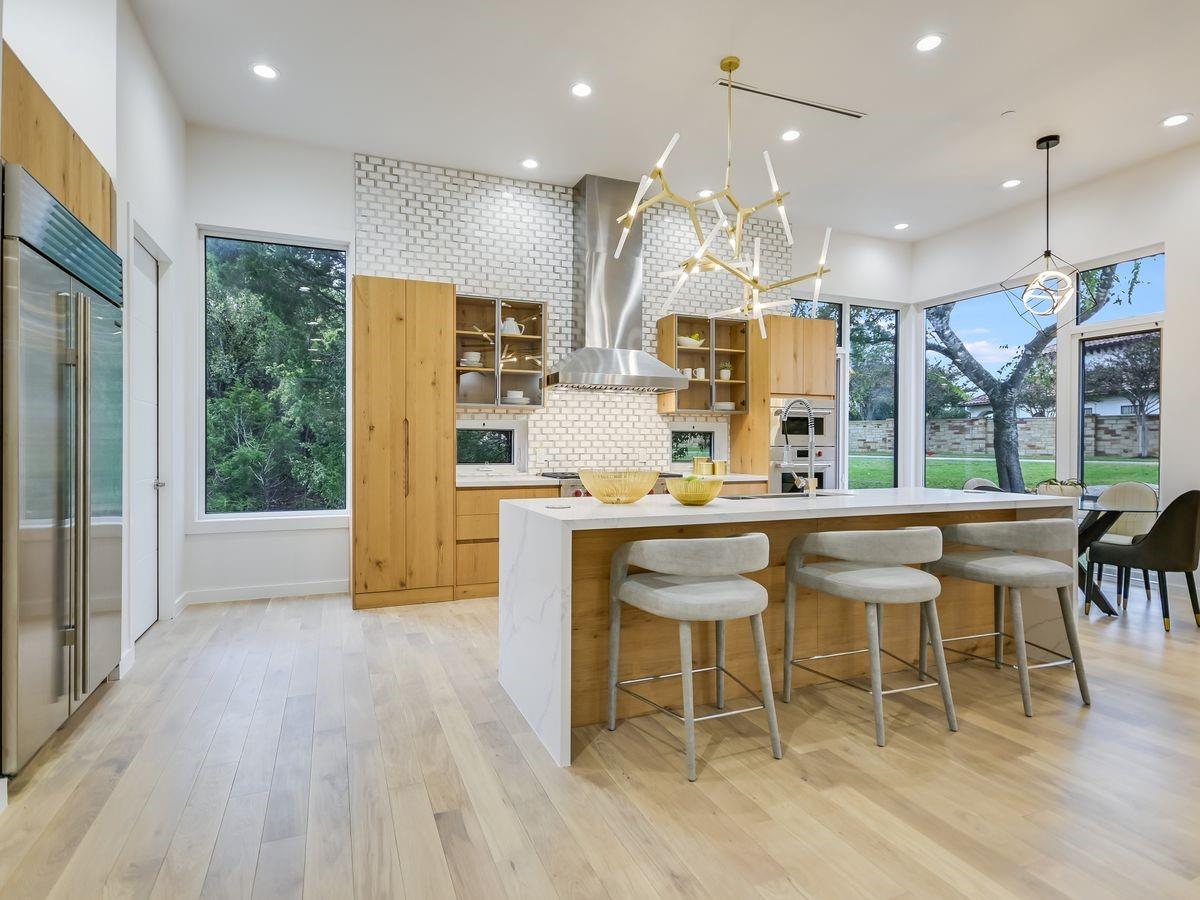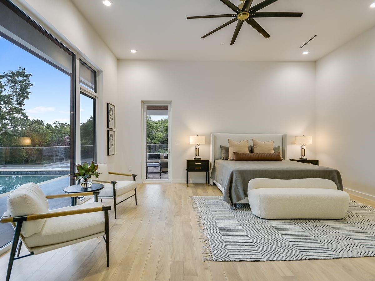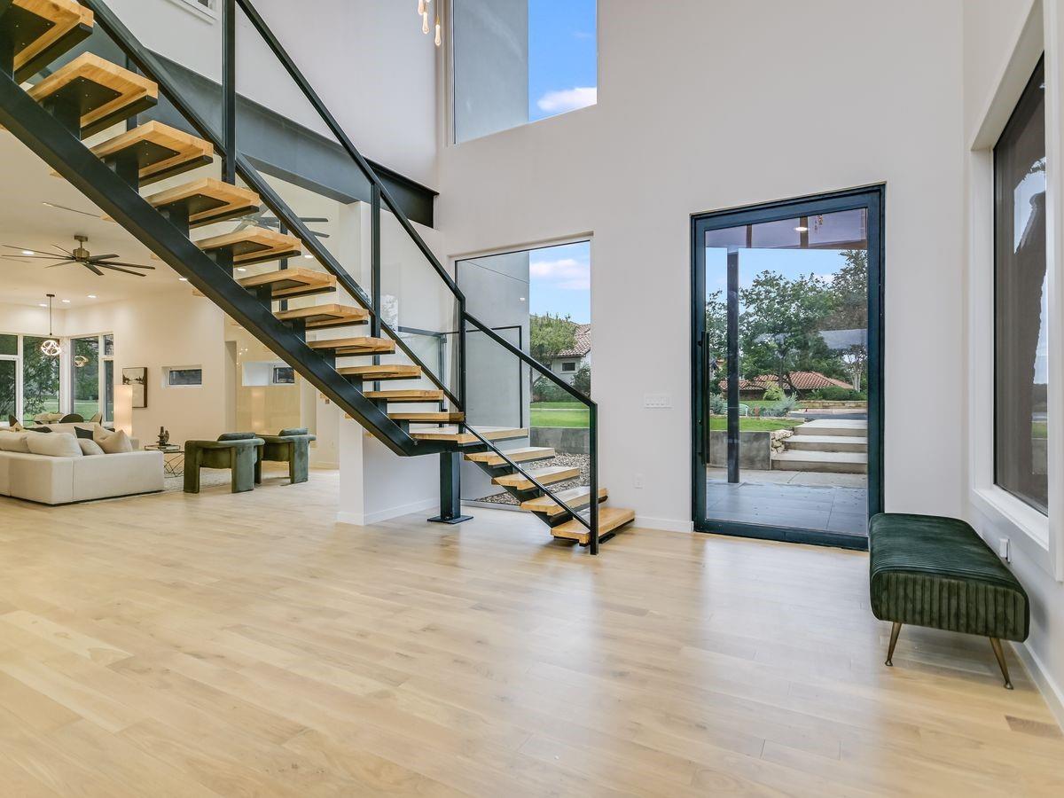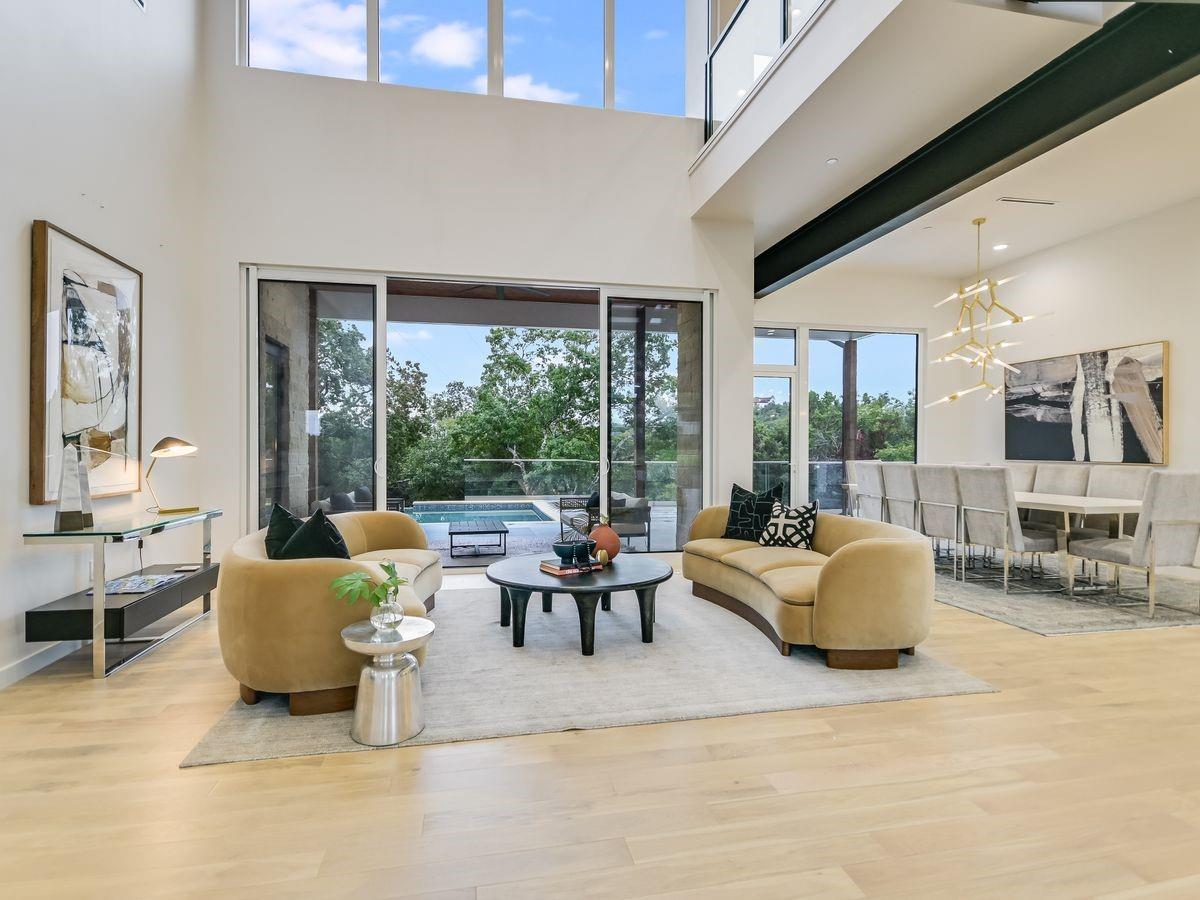 Welcome to the pinnacle of modern luxury living, where every detail is a testament to the art of living well. Indulge in opulent living at this extraordinary new modern masterpiece nestled in the heart of Davenport Ranch, offering unparalleled downtown views from its expansive acre lot. Step into grandeur through the massive glass door and into the 24-foot soaring ceilings in the main entrance, where meticulous attention to detail is evident at every turn. Immerse yourself in sophistication with the finest materials and bespoke design, seamlessly blending modern aesthetics with timeless elegance. Natural light streams through the massive commercial doors & windows, bathing the home in warmth & radiance. This residence spans an impressive 5820sf and embodies luxury with 5 bedrooms, 6 full baths, a stately study, a media room, and an upstairs living area, creating a sanctuary of refinement with three distinct living spaces. The main level graciously features two bedrooms with a sumptuous master, providing both convenience and luxury. Designed by famed New York based Zahid Ajam of Ajam & Assoc. for unparalleled entertaining, boasting 2 massive living spaces that seamlessly flow into the incredible kitchen adorned with imported hardwood cabinets. The kitchen features top-of-the-line Subzero & Wolf appliances, ensuring a culinary experience of the highest caliber. The outdoor living spaces enhance the entertainment aspect of the house, complemented by an enormous negative-edge pool and a fully equipped outdoor kitchen. The backyard is an oasis of privacy, enclosed by a beautifully designed 6-foot stucco privacy fence. Located in the highly coveted Eanes school district, renowned for its excellent reputation and desirable status, this residence promises not just a home but an exclusive experience. Seize the rare opportunity to own a newly constructed masterpiece.