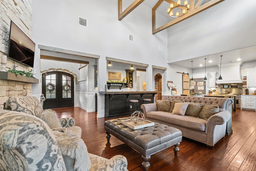 | Interior Features | Breakfast Bar, Ceiling Fan(s), Beamed Ceilings, High Ceilings, Tray Ceiling(s), Vaulted Ceiling(s), Chandelier, Granite Counters, Crown Molding, Double Vanity, Eat-in Kitchen, French Doors, Interior Steps, Kitchen Island, Multiple Dining Areas, Multiple Living Areas, Murphy Bed, Open Floorplan, Pantry, Primary Bedroom on Main, Recessed Lighting, Storage, Walk-In Closet(s), Washer Hookup, Wet Bar, Wired for Data | |