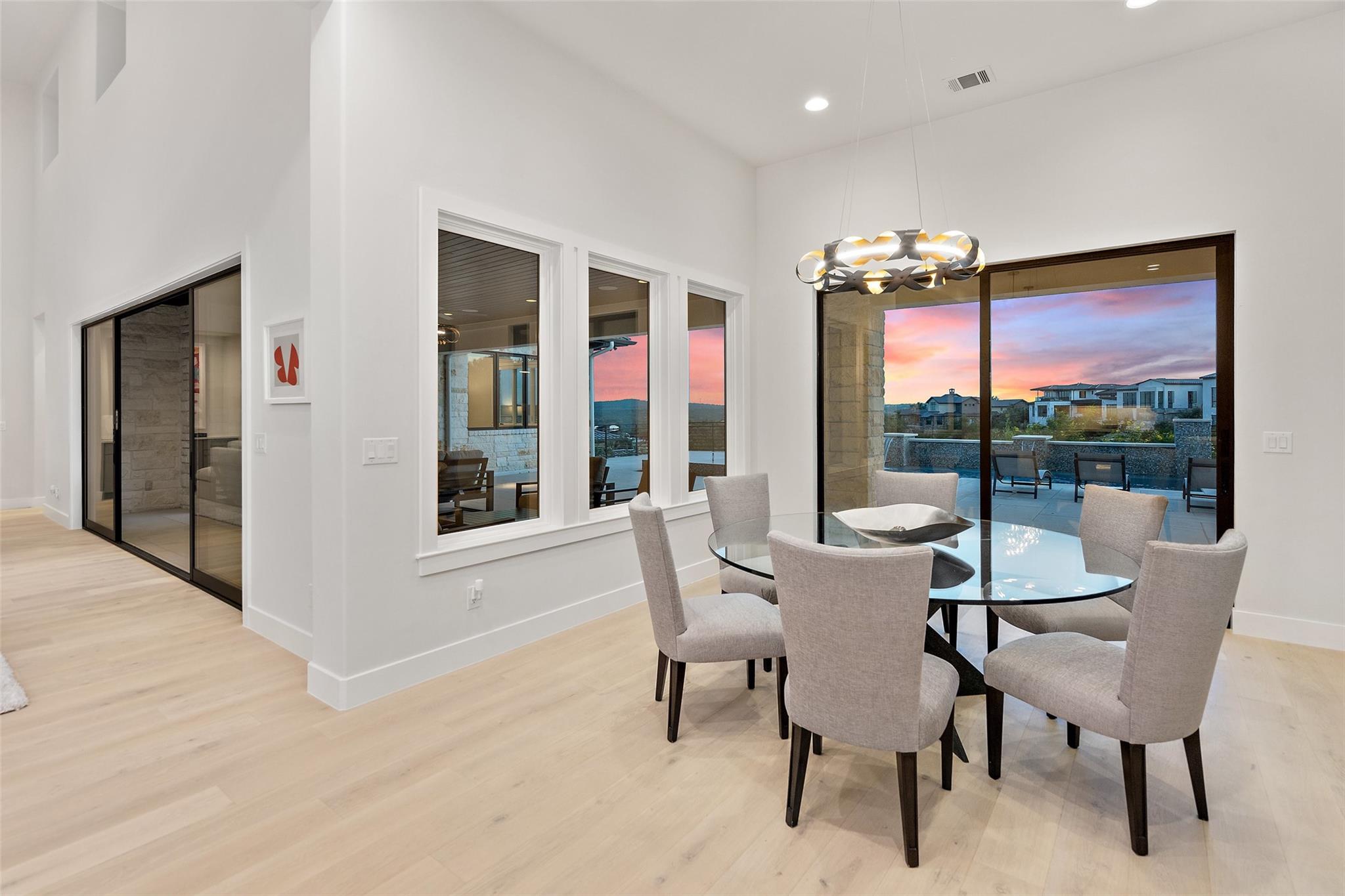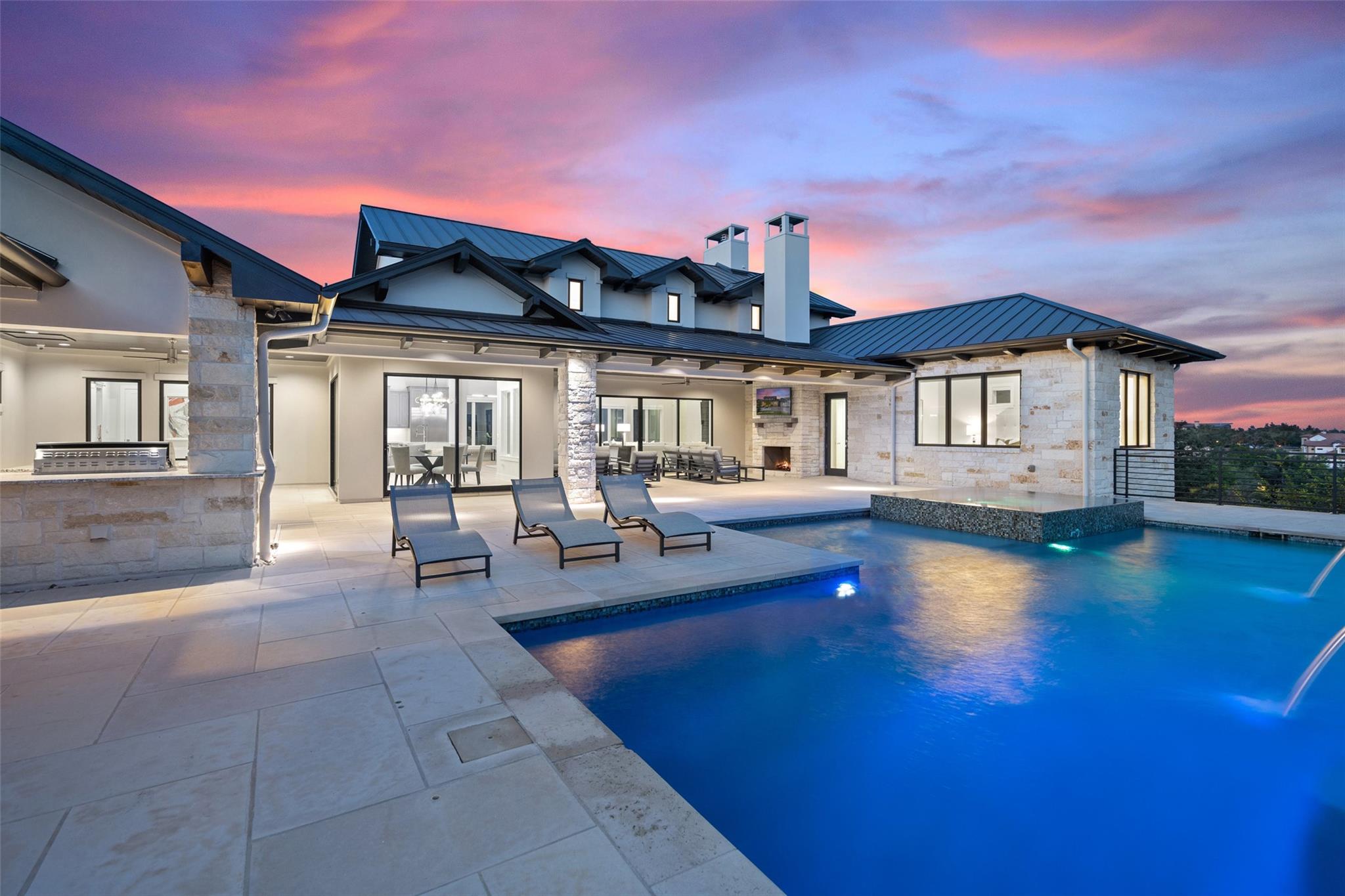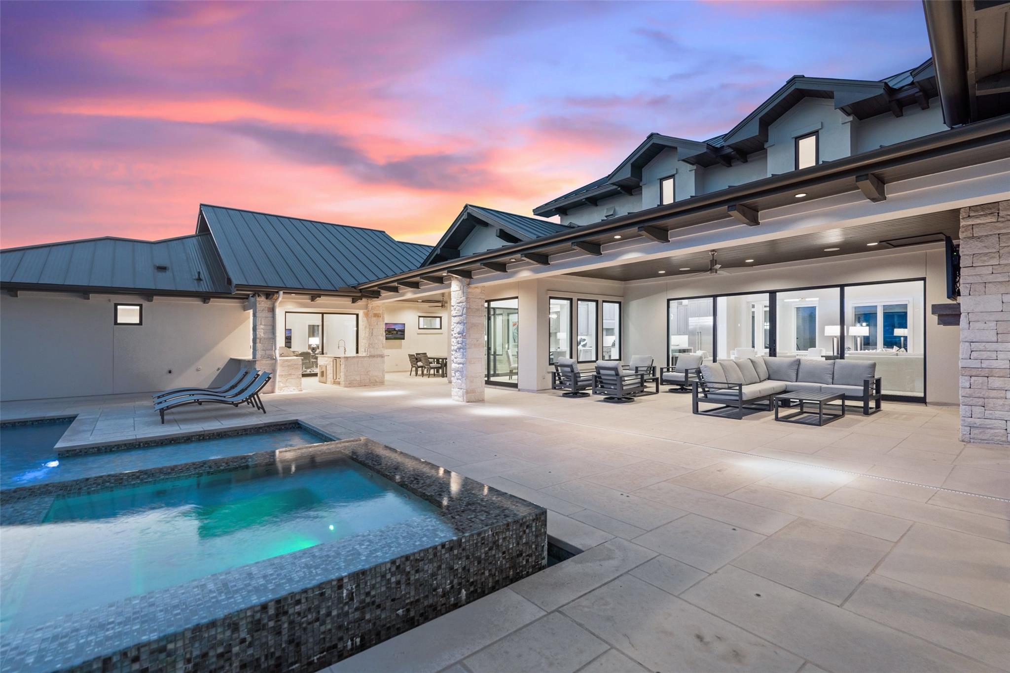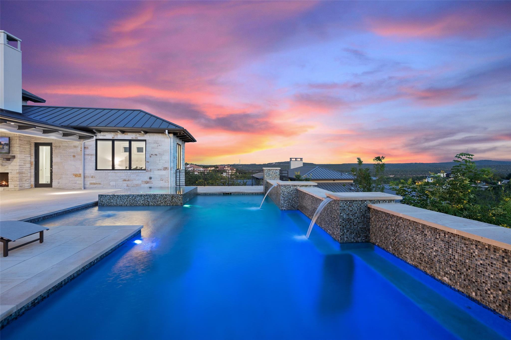 Renovated in 2023, this immaculate home is a true testament to thoughtful design and quality craftsmanship. White oak floors and an abundance of natural light bathes the heart of this residence. The adjoining dining area sets the stage for intimate gatherings and grand soirées, complemented by an adjacent wet bar. The owner's sanctuary offers breathtaking pool and Hill Country views. The primary bathroom exudes spa-like luxury, boasting a dual walk-in shower, quartz-adorned dual vanities and a custom-designed California closet. The office space doubles as a sixth bedroom or versatile multipurpose room. The interior has been refreshed inside and out, with fresh paint and designer light fixtures. Western sliding doors adorn the family room, eating area, and game room, seamlessly merging indoor and outdoor living. The kitchen stands as a masterpiece, featuring a Calcutta Arni island countertop with waterfall edge and top-of-the-line Thermador appliances. The family room exudes warmth by a Saratoga stone fireplace. Custom California closets in every bedroom maximize storage. Enhanced security with the addition of an exterior camera system. Enjoy the expansive sparkling pool and spa. The covered patio offers a comfortable space for al fresco dining or lounging. Meanwhile, the uncovered patio is perfect for sunbathing, stargazing, or savoring the nature. The fully equipped outdoor kitchen is a gourmet's delight, complete with state-of-the-art appliances, ample counter space, and built-in grill. The exterior of the home has been meticulously landscaped. New exterior lighting both on the front porch and in the expanded parking area. Located in Spanish Oaks, residents enjoy 24/7 manned gate security, access to Spanish Oaks Golf Club, hiking and biking trails, stocked Fish Camp, and pool pavilion. The Austin Tennis Academy awaits just beyond the community gates. The Lake Travis ISD, along with various private school options, lies within a convenient 10-mile radius.