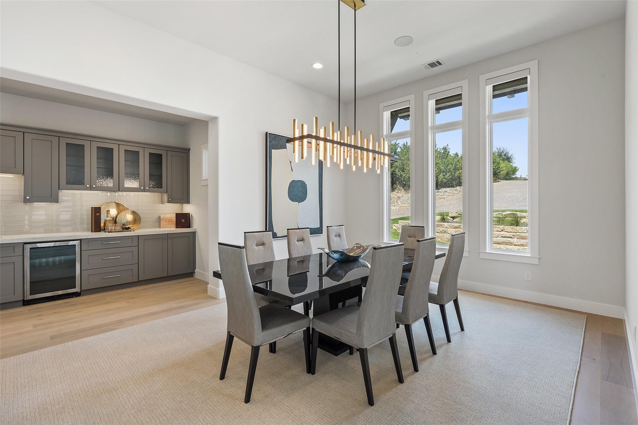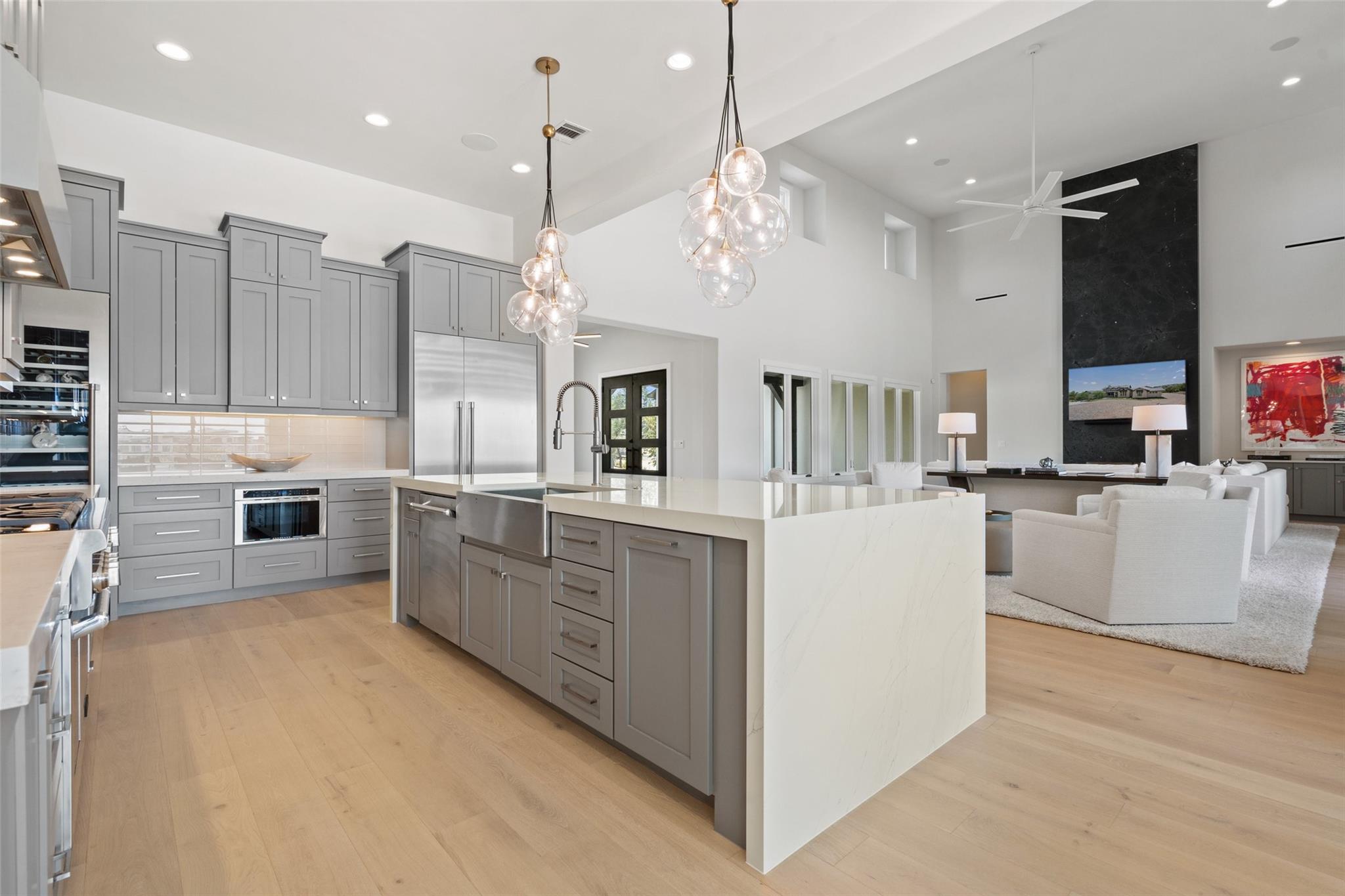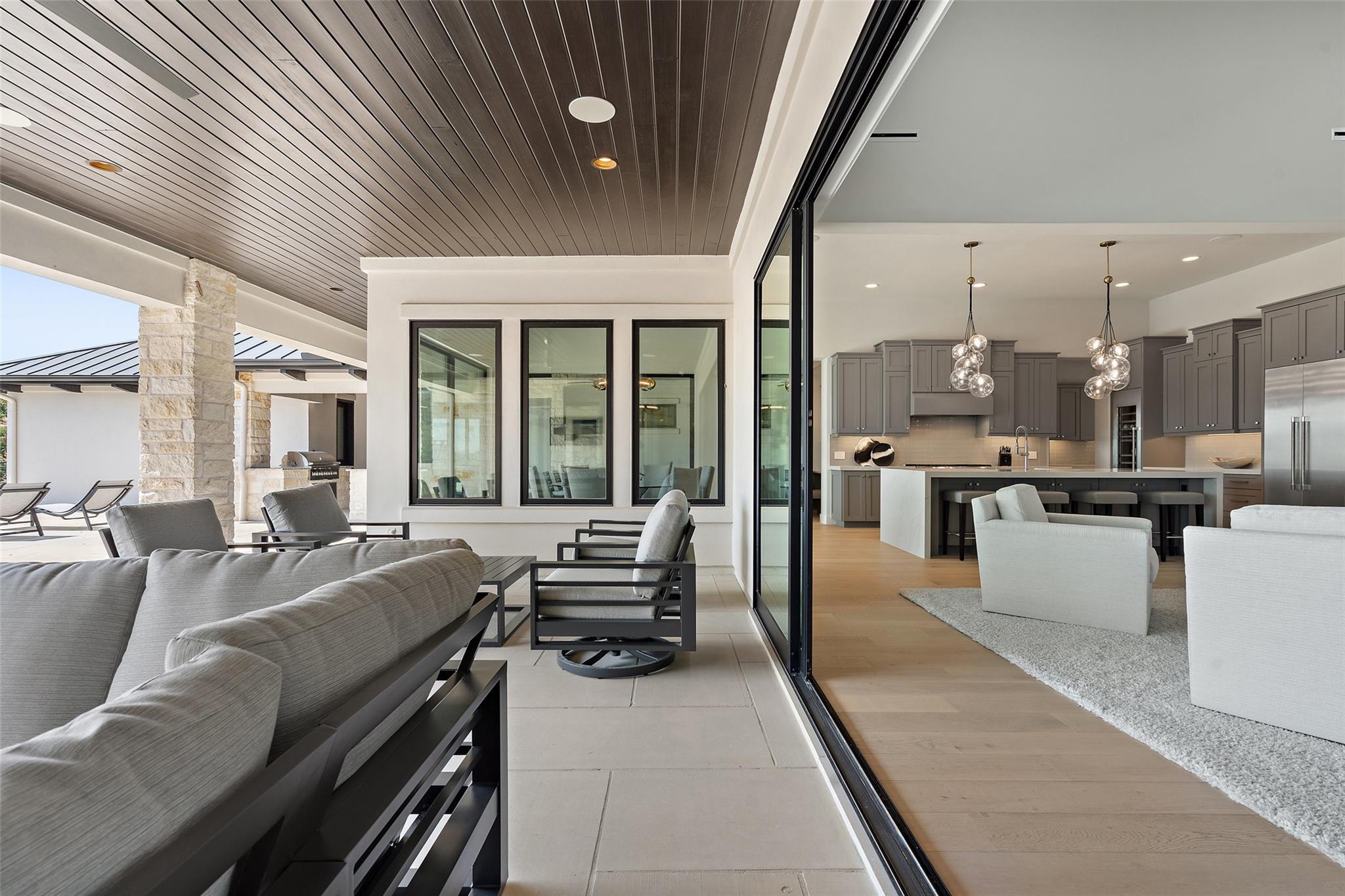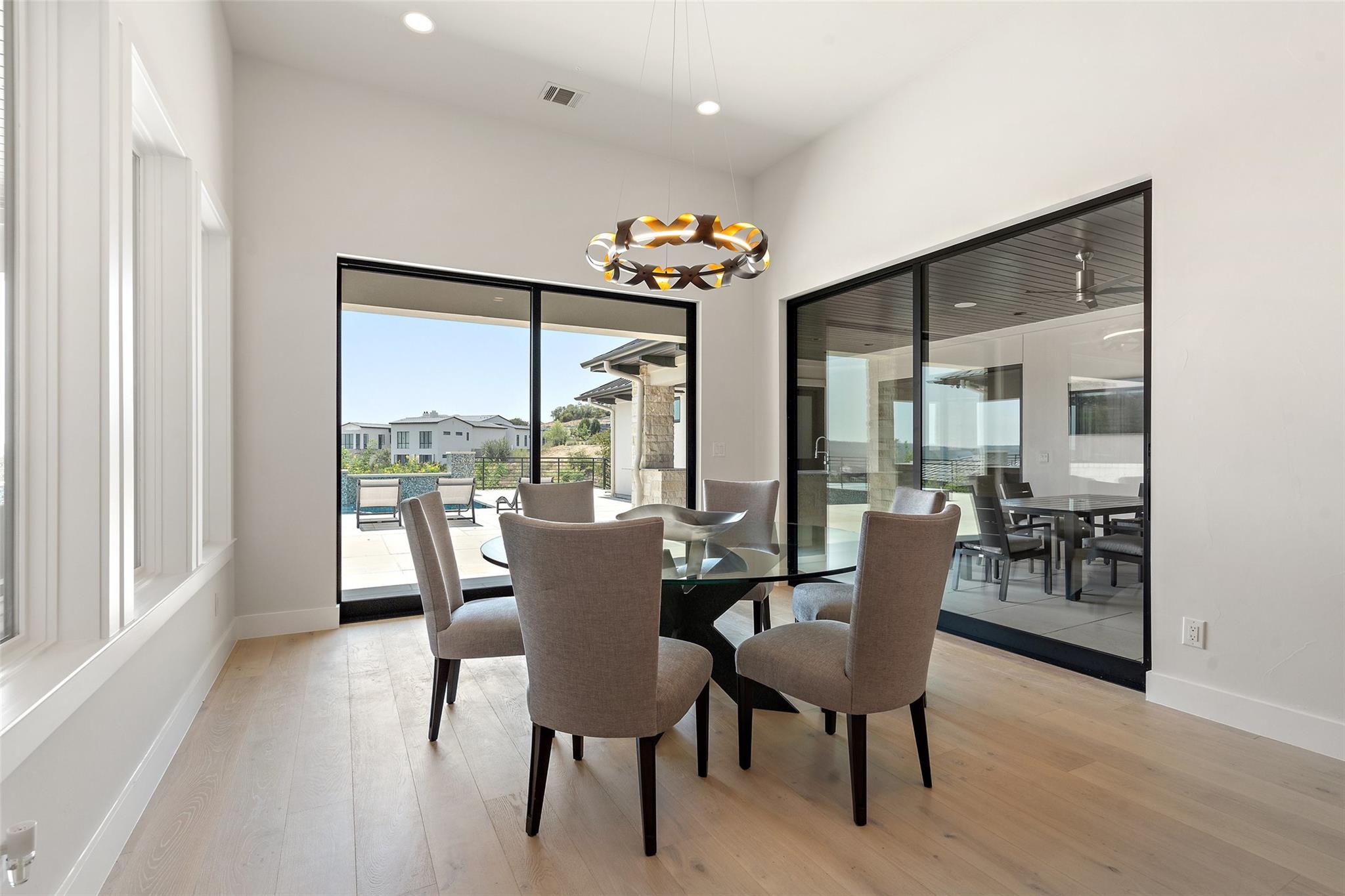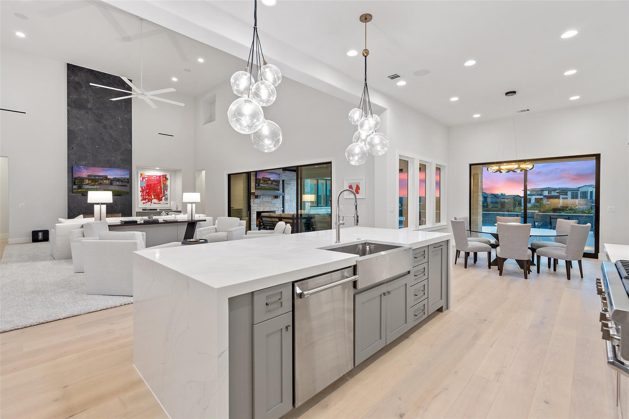Renovated in 2023, this immaculate home is a true testament to thoughtful design and quality craftsmanship. White oak floors and an abundance of natural light bathes the heart of this residence. The adjoining dining area sets the stage for intimate gatherings and grand soirées, complemented by an adjacent wet bar. The owner's sanctuary offers breathtaking pool and Hill Country views. The primary bathroom exudes spa-like luxury, boasting a dual walk-in shower, quartz-adorned dual vanities and a custom-designed California closet. The office space doubles as a sixth bedroom or versatile multipurpose room. The interior has been refreshed inside and out, with fresh paint and designer light fixtures. Western sliding doors adorn the family room, eating area, and game room, seamlessly merging indoor and outdoor living. The kitchen stands as a masterpiece, featuring a Calcutta Arni island countertop with waterfall edge and top-of-the-line Thermador appliances. The family room exudes warmth by a Saratoga stone fireplace. Custom California closets in every bedroom maximize storage. Enhanced security with the addition of an exterior camera system. Enjoy the expansive sparkling pool and spa. The covered patio offers a comfortable space for al fresco dining or lounging. Meanwhile, the uncovered patio is perfect for sunbathing, stargazing, or savoring the nature. The fully equipped outdoor kitchen is a gourmet's delight, complete with state-of-the-art appliances, ample counter space, and built-in grill. The exterior of the home has been meticulously landscaped. New exterior lighting both on the front porch and in the expanded parking area. Located in Spanish Oaks, residents enjoy 24/7 manned gate security, access to Spanish Oaks Golf Club, hiking and biking trails, stocked Fish Camp, and pool pavilion. The Austin Tennis Academy awaits just beyond the community gates. The Lake Travis ISD, along with various private school options, lies within a convenient 10-mile radius.
