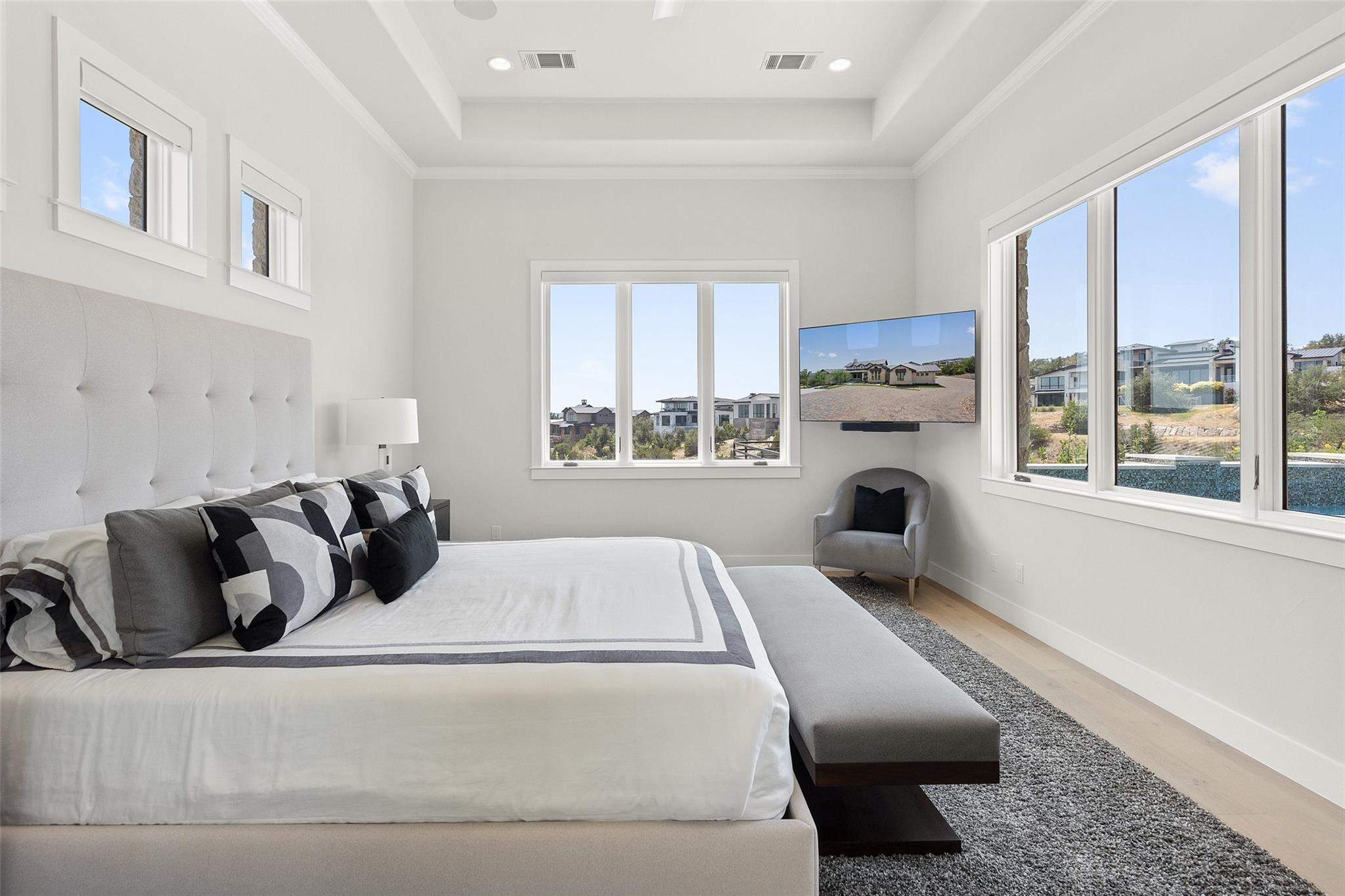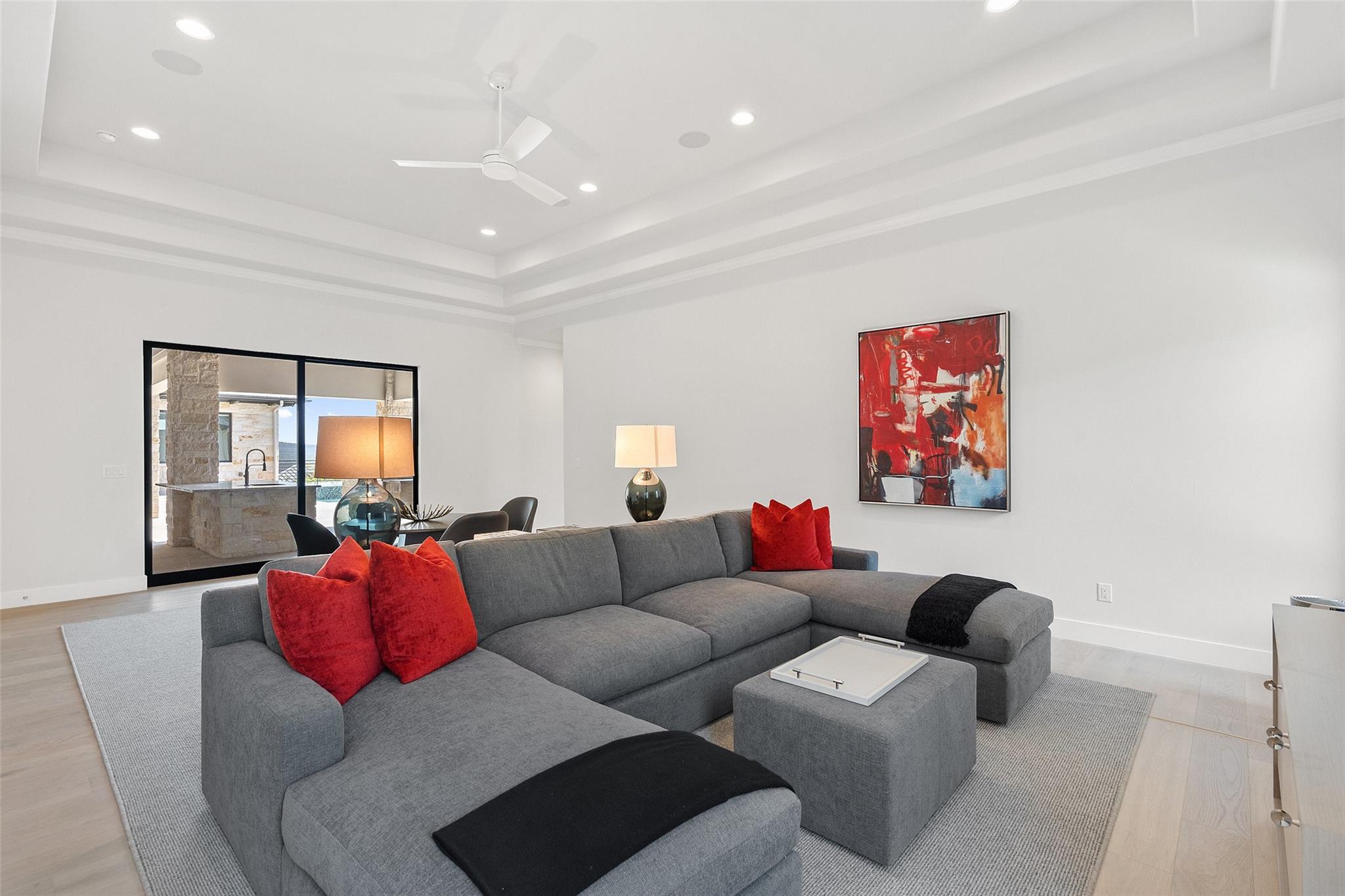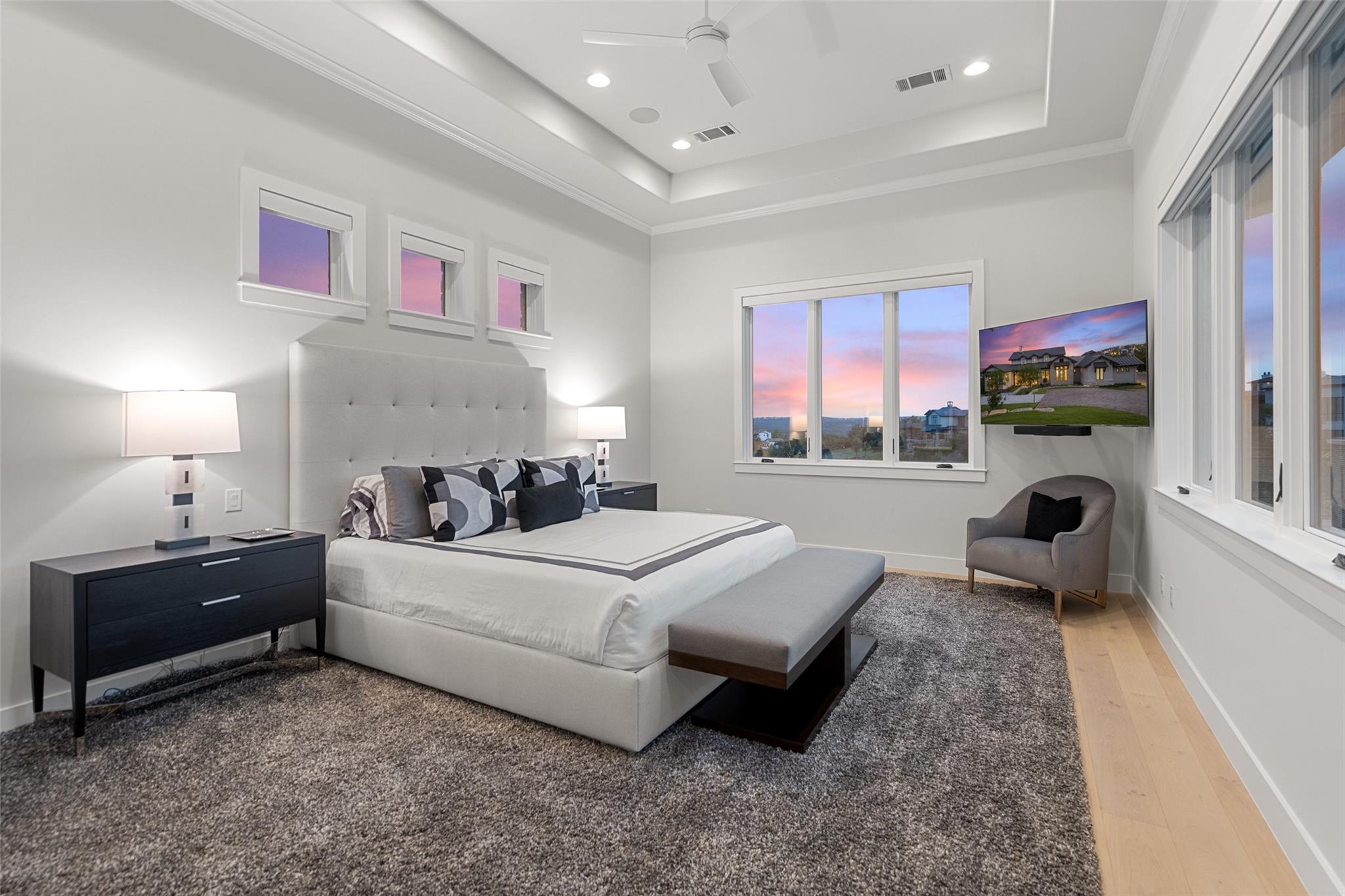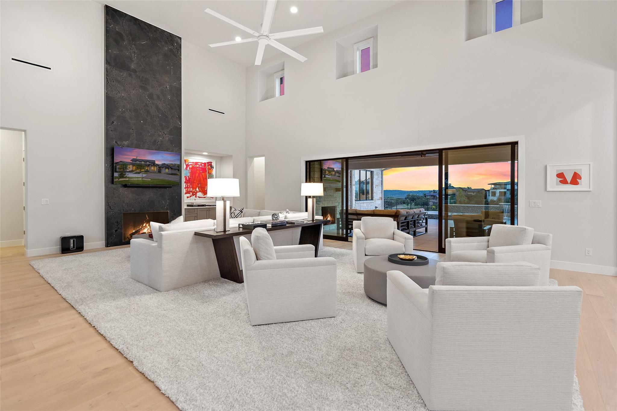 Renovated in 2023, this immaculate home is a true testament to thoughtful design and quality craftsmanship. White oak floors and an abundance of natural light bathes the heart of this residence. The adjoining dining area sets the stage for intimate gatherings and grand soirées, complemented by an adjacent wet bar. The owner's sanctuary offers breathtaking pool and Hill Country views. The primary bathroom exudes spa-like luxury, boasting a dual walk-in shower, quartz-adorned dual vanities and a custom-designed California closet. The office space doubles as a sixth bedroom or versatile multipurpose room. The interior has been refreshed inside and out, with fresh paint and designer light fixtures. Western sliding doors adorn the family room, eating area, and game room, seamlessly merging indoor and outdoor living. The kitchen stands as a masterpiece, featuring a Calcutta Arni island countertop with waterfall edge and top-of-the-line Thermador appliances. The family room exudes warmth by a Saratoga stone fireplace. Custom California closets in every bedroom maximize storage. Enhanced security with the addition of an exterior camera system. Enjoy the expansive sparkling pool and spa. The covered patio offers a comfortable space for al fresco dining or lounging. Meanwhile, the uncovered patio is perfect for sunbathing, stargazing, or savoring the nature. The fully equipped outdoor kitchen is a gourmet's delight, complete with state-of-the-art appliances, ample counter space, and built-in grill. The exterior of the home has been meticulously landscaped. New exterior lighting both on the front porch and in the expanded parking area. Located in Spanish Oaks, residents enjoy 24/7 manned gate security, access to Spanish Oaks Golf Club, hiking and biking trails, stocked Fish Camp, and pool pavilion. The Austin Tennis Academy awaits just beyond the community gates. The Lake Travis ISD, along with various private school options, lies within a convenient 10-mile radius.