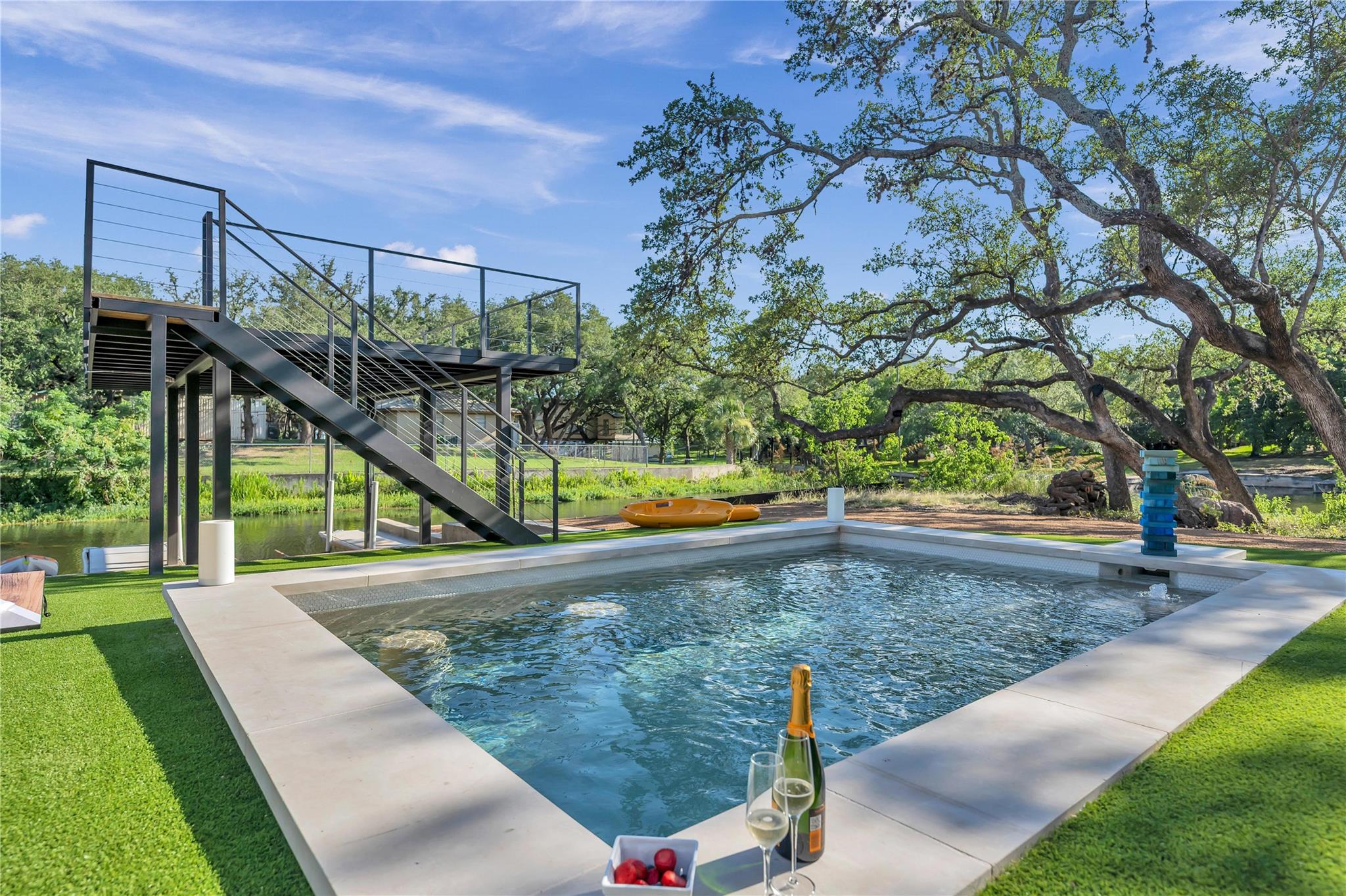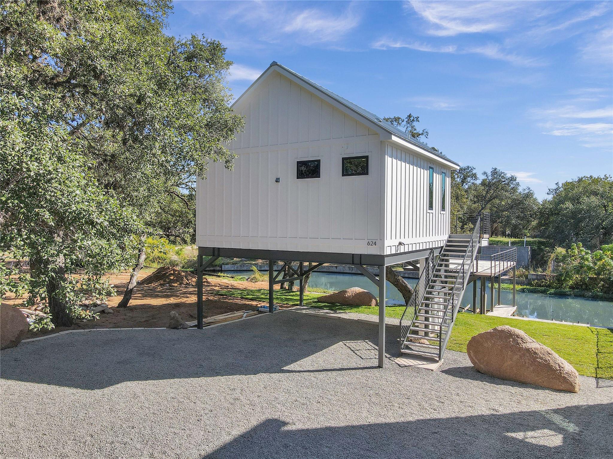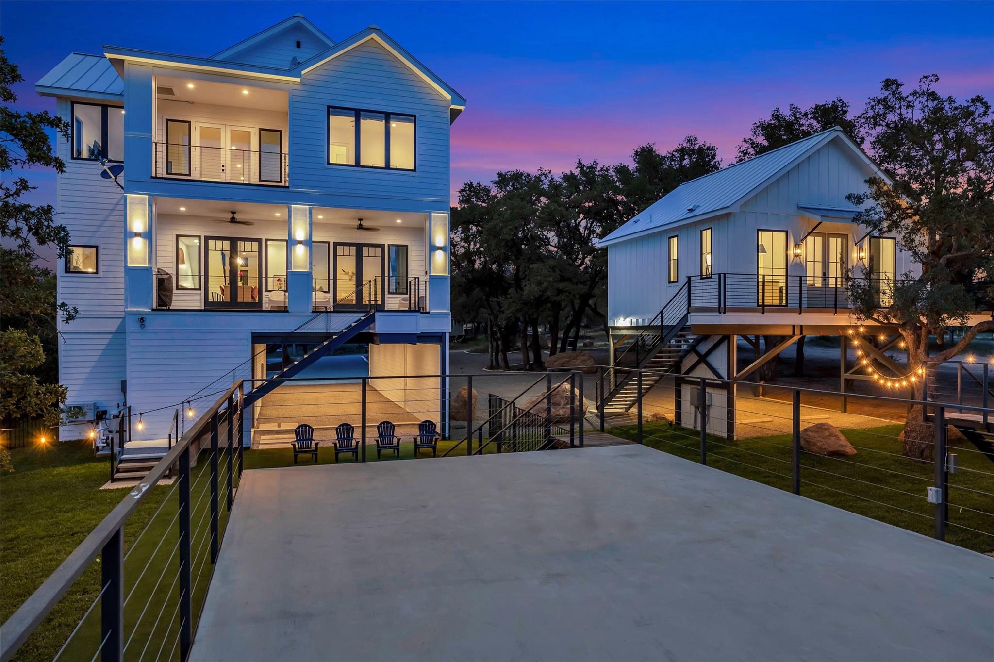 Lake LBJ - NEW CONSTRUCTION - 3-story Main Home and detached l-story plus loft Casita, each with a boat dock with upper deck and a jet ski ramp between - and as a huge bonus - conveys completely furnished! Main home has luxurious primary suite with spa like ensuite bathroom with soaking tub, walk-in shower and dual vanity. Upstairs there is an additional primary quality bedroom and ensuite bathroom and two guest bedrooms share a full bath. Pristine quality and excellent design are throughout the home. The south facing covered patios on main and upper floors overlook the heated pool with built-in barstools and there is a ground level game room. The property boasts two concrete and steel boat docks with 4-PWC ramp between and upper viewing decks. The Casita is of equal quality to the Main Home and also conveys completely furnished. Casita has 1 bedroom and loft bedroom, two full bathrooms, kitchen, dining area and living room with a fireplace plus covered patio with view of the boat house and lake. Main Home and Casita offers a unique choice -as a family retreat or a short term rental.