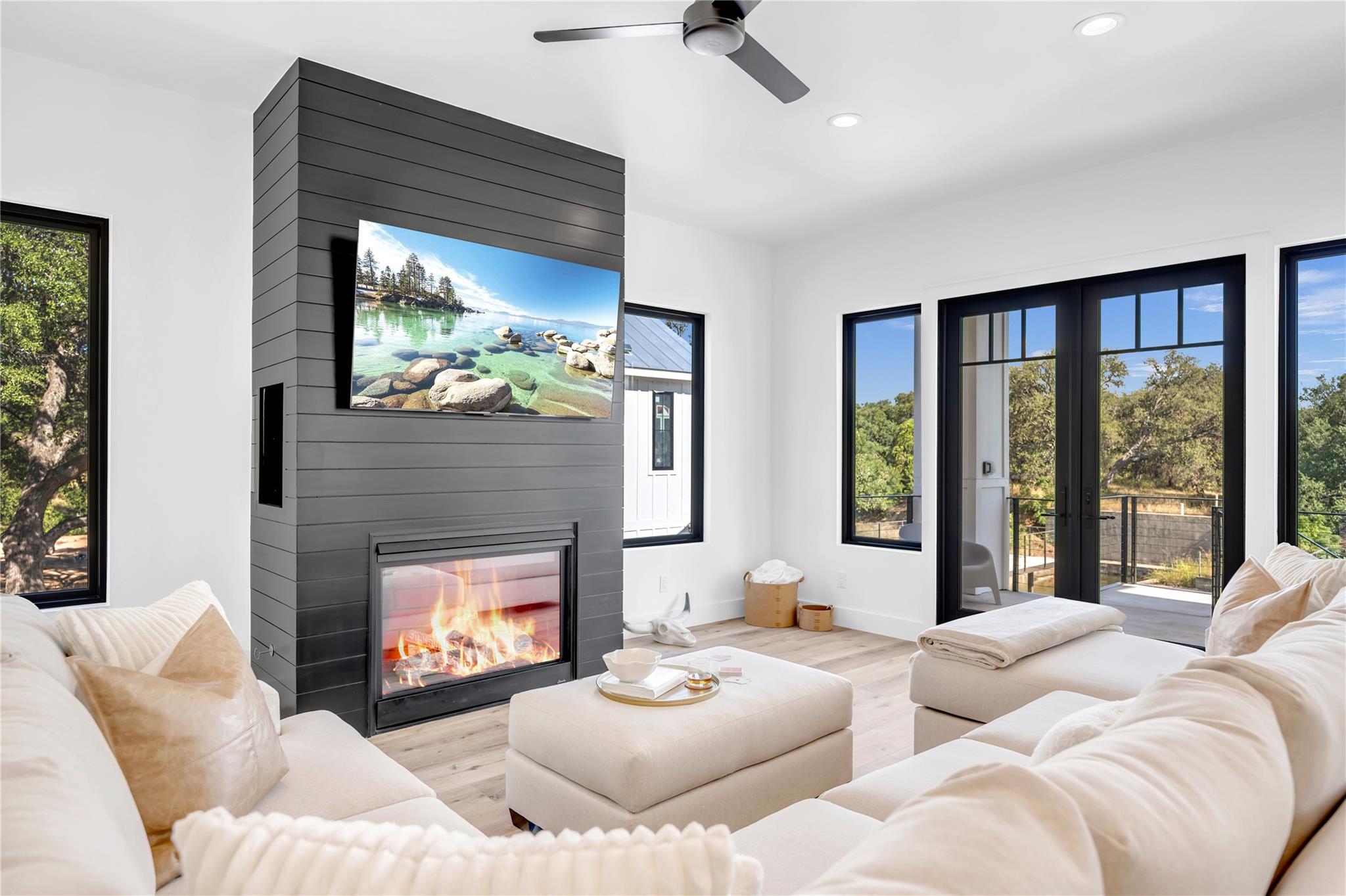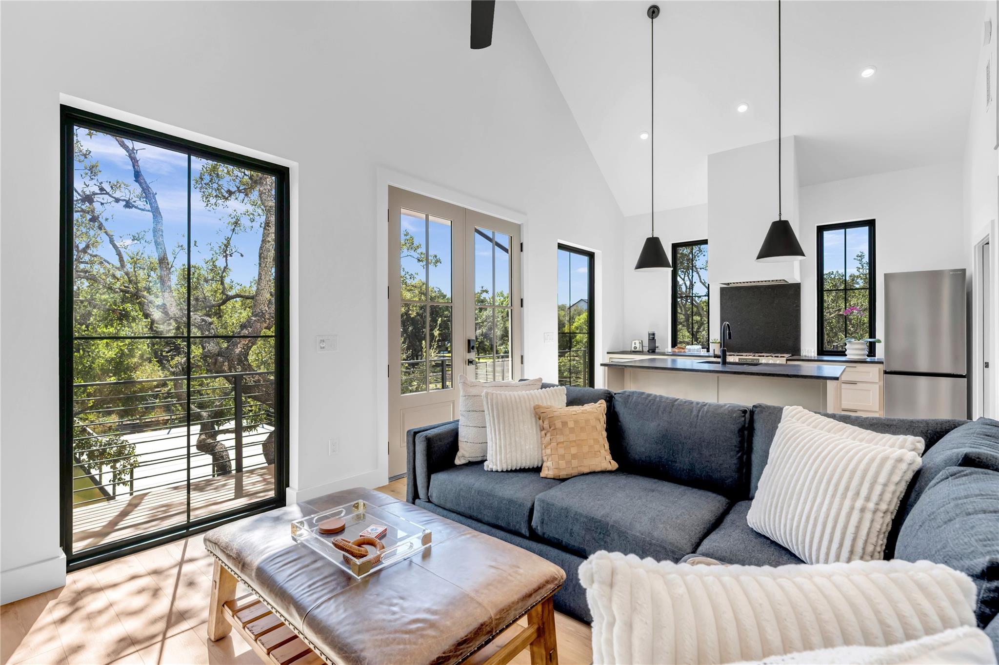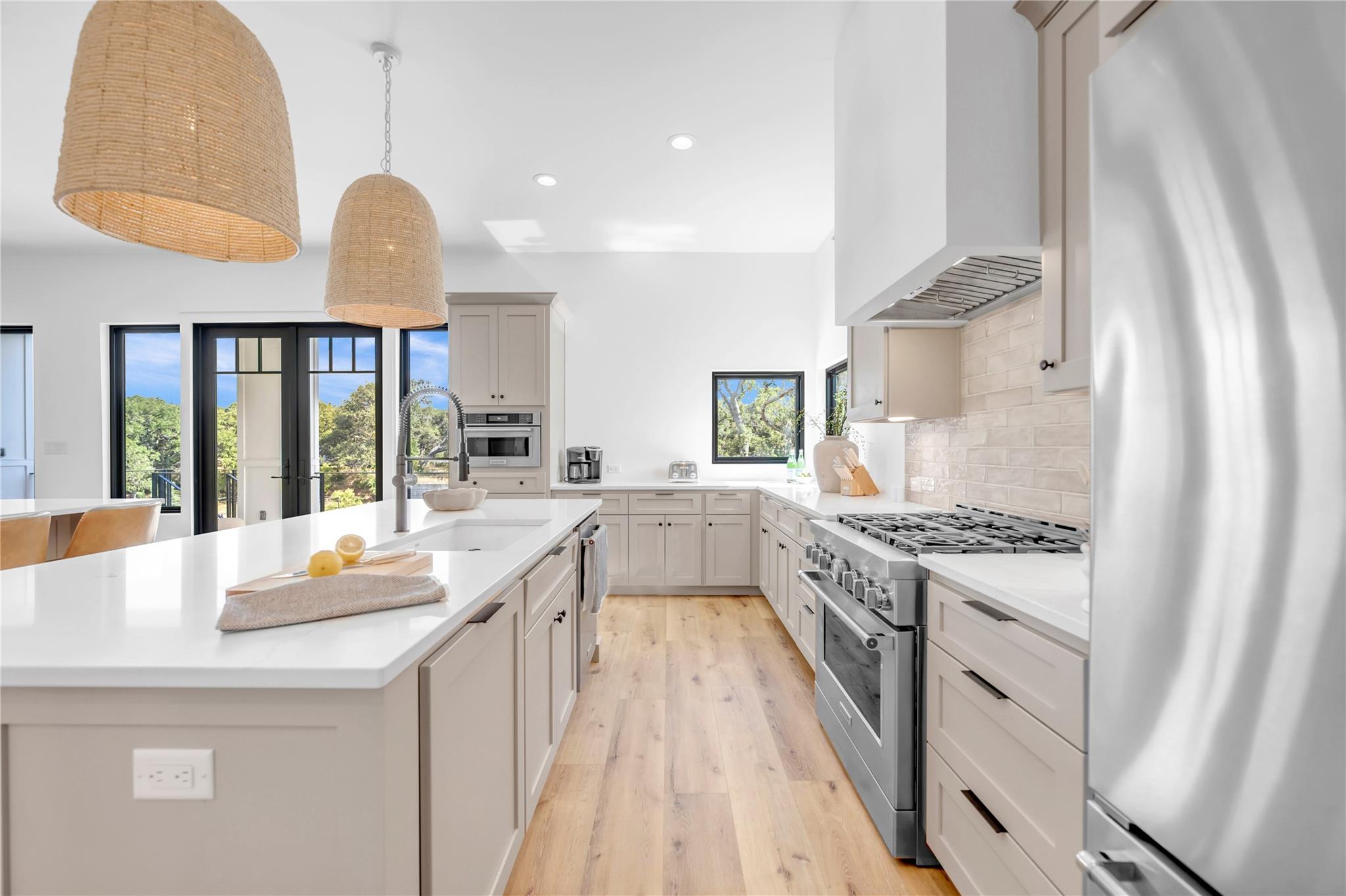 Lake LBJ - NEW CONSTRUCTION - 3-story Main Home and detached l-story plus loft Casita, each with a boat dock with upper deck and a jet ski ramp between - and as a huge bonus - conveys completely furnished! Main home has luxurious primary suite with spa like ensuite bathroom with soaking tub, walk-in shower and dual vanity. Upstairs there is an additional primary quality bedroom and ensuite bathroom and two guest bedrooms share a full bath. Pristine quality and excellent design are throughout the home. The south facing covered patios on main and upper floors overlook the heated pool with built-in barstools and there is a ground level game room. The property boasts two concrete and steel boat docks with 4-PWC ramp between and upper viewing decks. The Casita is of equal quality to the Main Home and also conveys completely furnished. Casita has 1 bedroom and loft bedroom, two full bathrooms, kitchen, dining area and living room with a fireplace plus covered patio with view of the boat house and lake. Main Home and Casita offers a unique choice -as a family retreat or a short term rental.