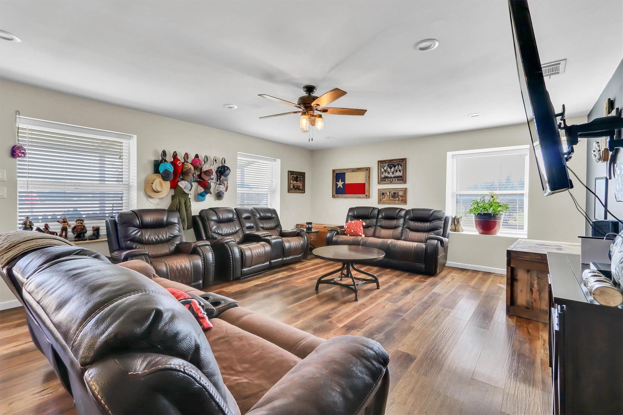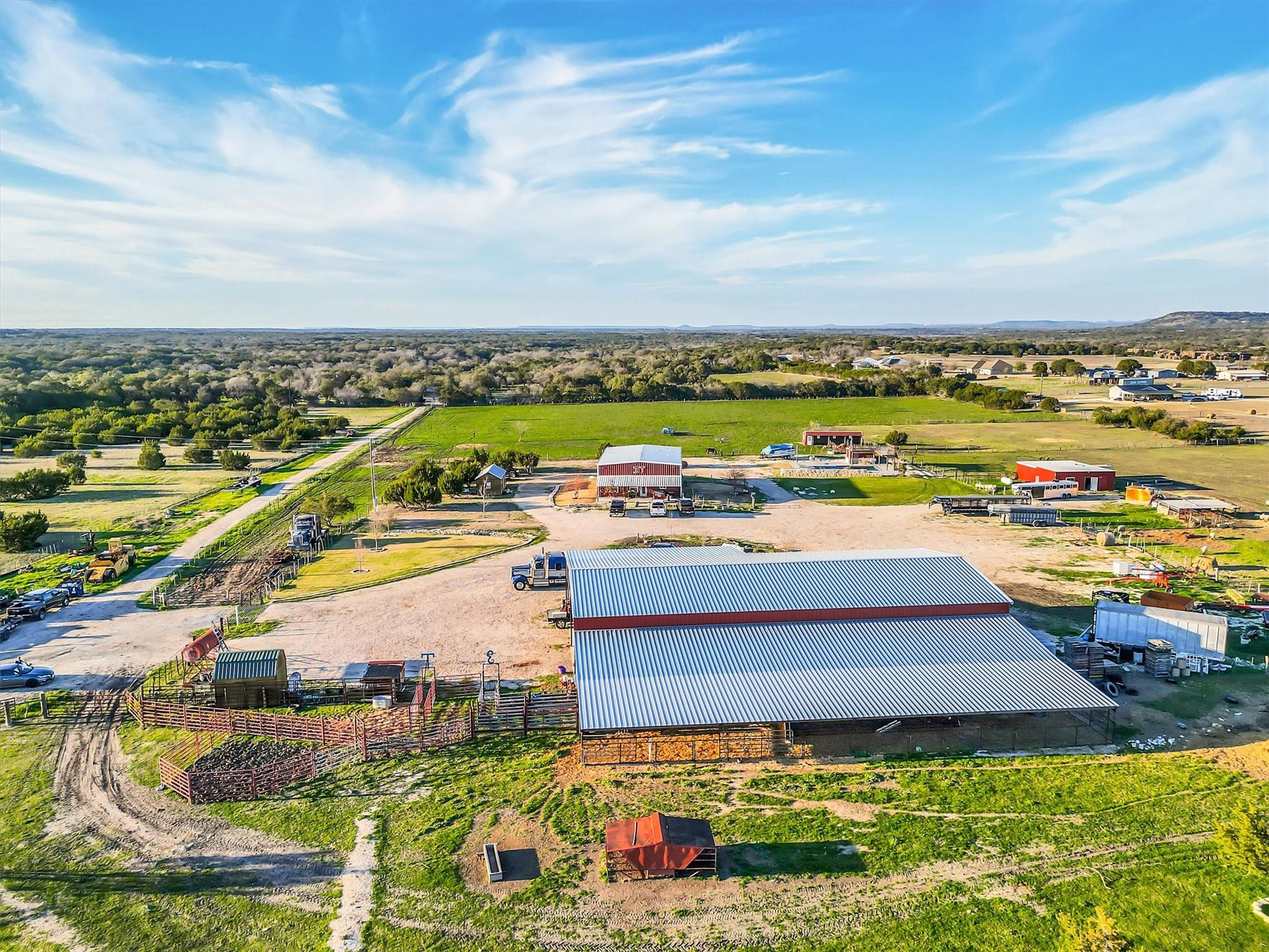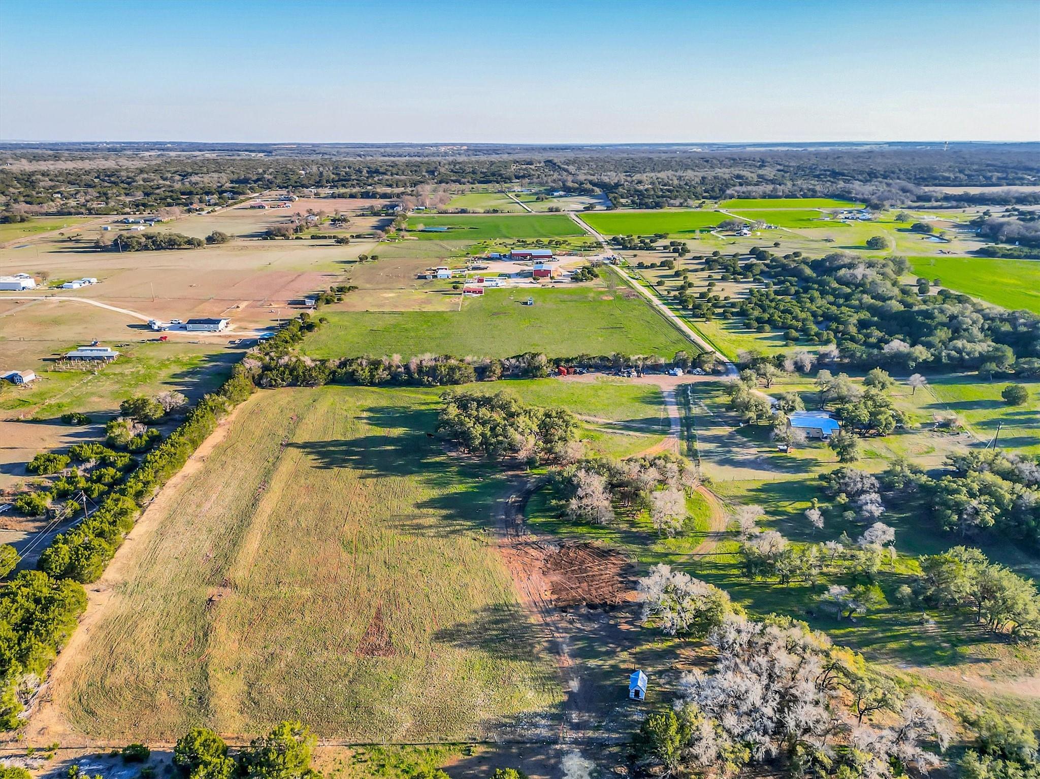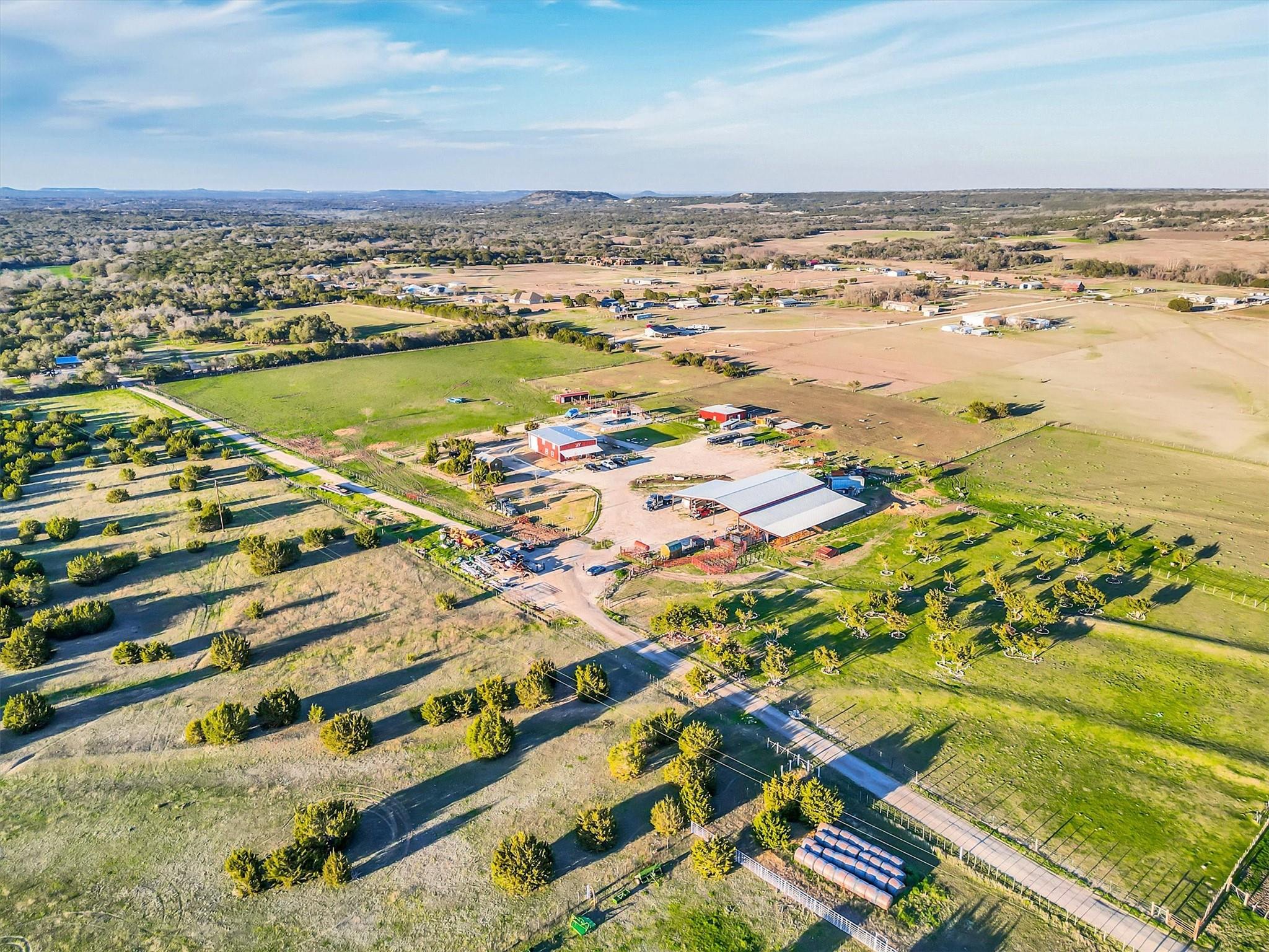 WOW! What a Steal! 45 +/- cross fenced acres with 2 beautiful custom houses, + small studio guest house, in-ground swimming pool & pool house, gigantic 6000+ sq ft Mega Barn w/ working pens, a separate smaller barn/stable w/ 10 stalls - * 2017 built, 2 story, 4 bedrooms/ 3.5 baths/ 2 living/ (wcad reflects 2878 sq ft but may measure closer to 2450 sq ft) 3+ car attached garage/ workshop with roll up door on each end so you can drive through! Drive to back of acreage & find 2021 built, 1 story 3 bedrooms/ 2 baths (wcad reflects 1750 sq ft-maybe closer to 1300 sq ft). Great finishes & covered front porches on both homes. Low 1.56 tax rate & also currently has agricultural exemption = LOW TAXES!. Awesome property with beautiful views, & the lifestyle is limitless! Have your land work for you & pay for itself! Whether you want to breed & raise award winning livestock or just your own family, grow your own food to eat, or farm acres of crops to sell every season, have a home for your family & a 2nd on the back acreage for others to live close/but not too close, or rent for additional income. Maybe even have your own beautiful wedding venue & plan/ host fairytale events. No known restrictions/ zoning, so do what you want, or do nothing at all & bask in the sun by/in the swimming pool, or relax under the stars! You can feel the good vibes & positive energy, as you enter this property & drive past it's front 10 acre pasture & pond! The driveway leads you past the gigantic barn, main house, Covered RV parking & hookup, & small studio guest house, & keeps going on to the back house, as well as another pasture, beautiful trees, & even more land. On the other side of the main house you'll find the private in-ground pool & pool house.