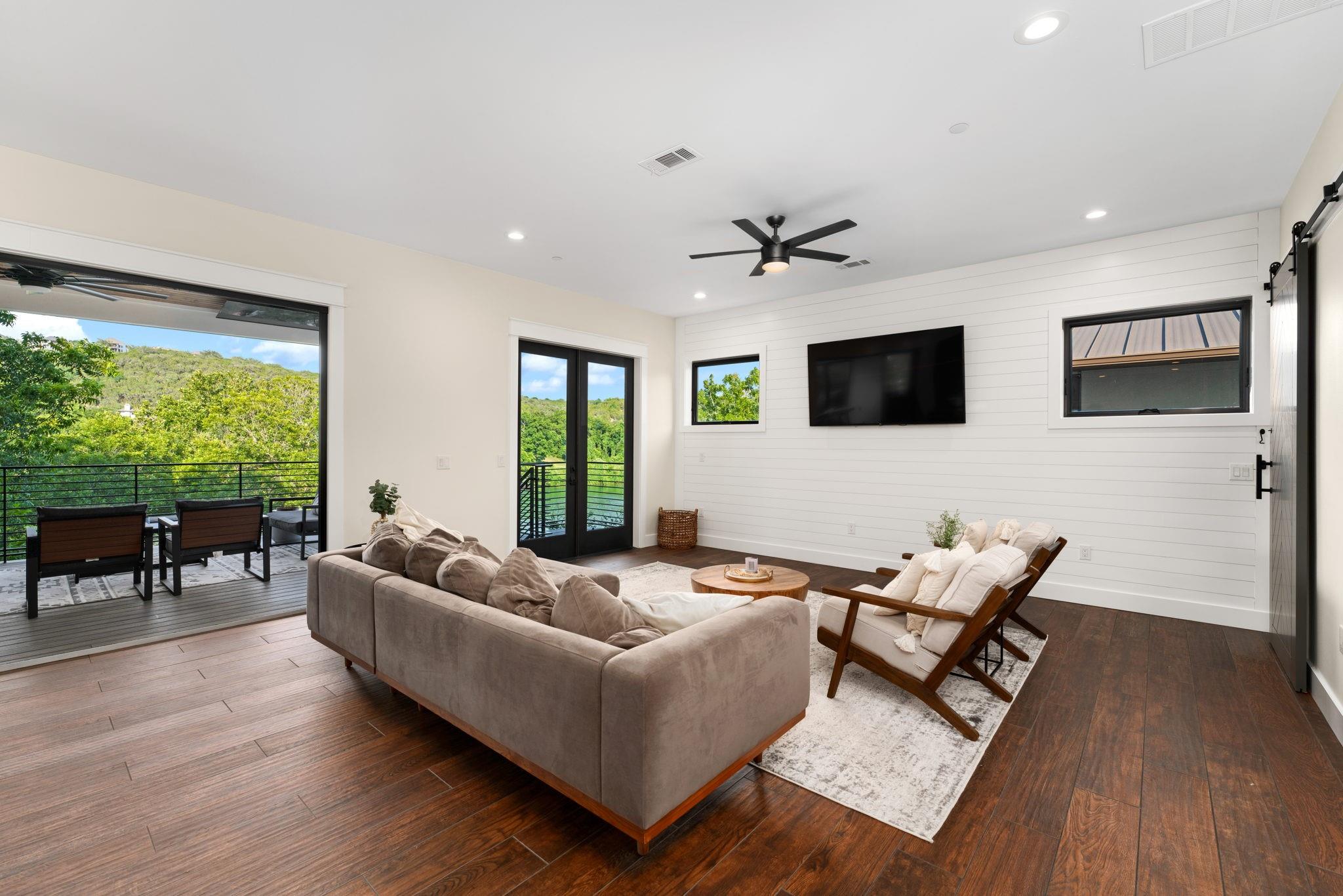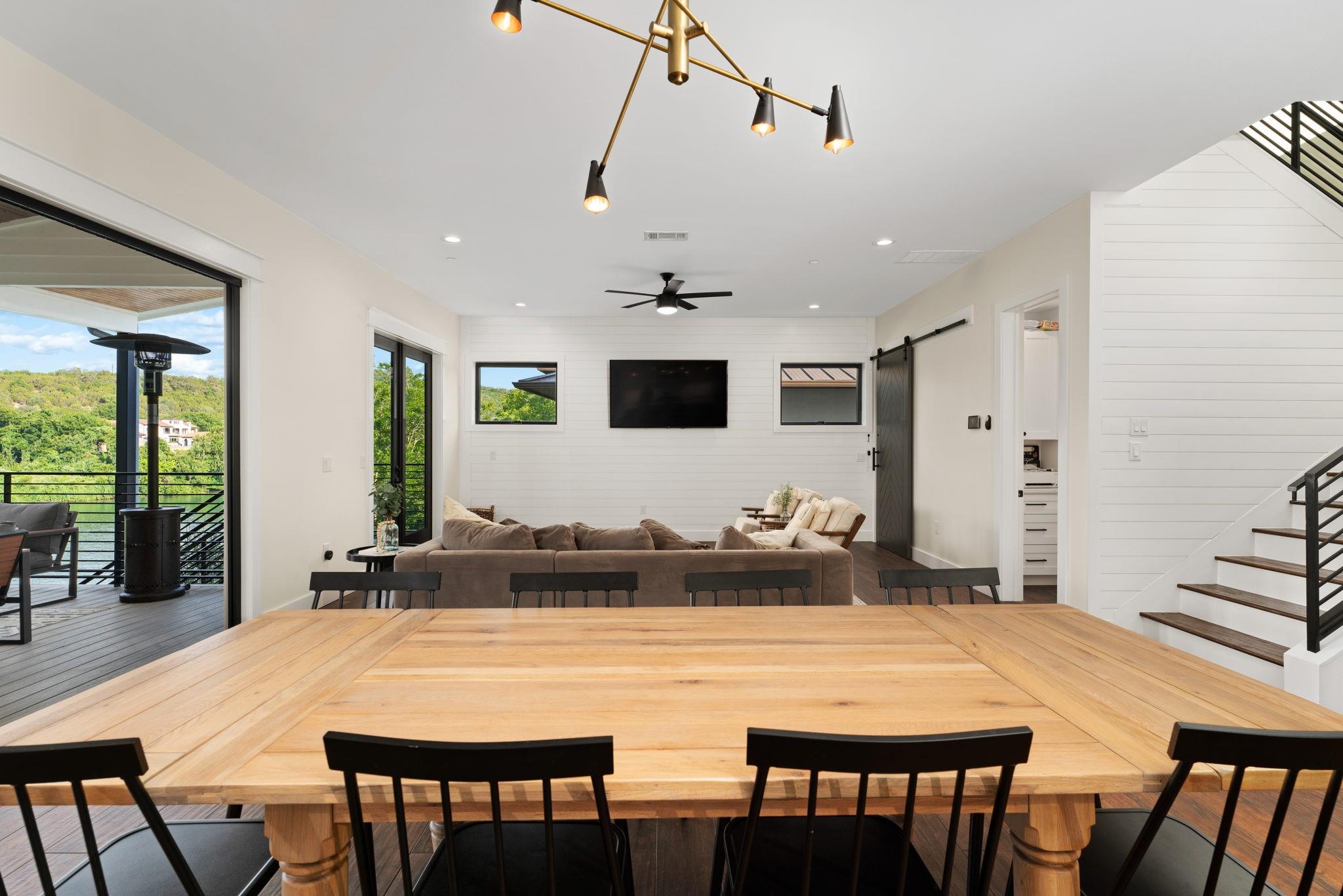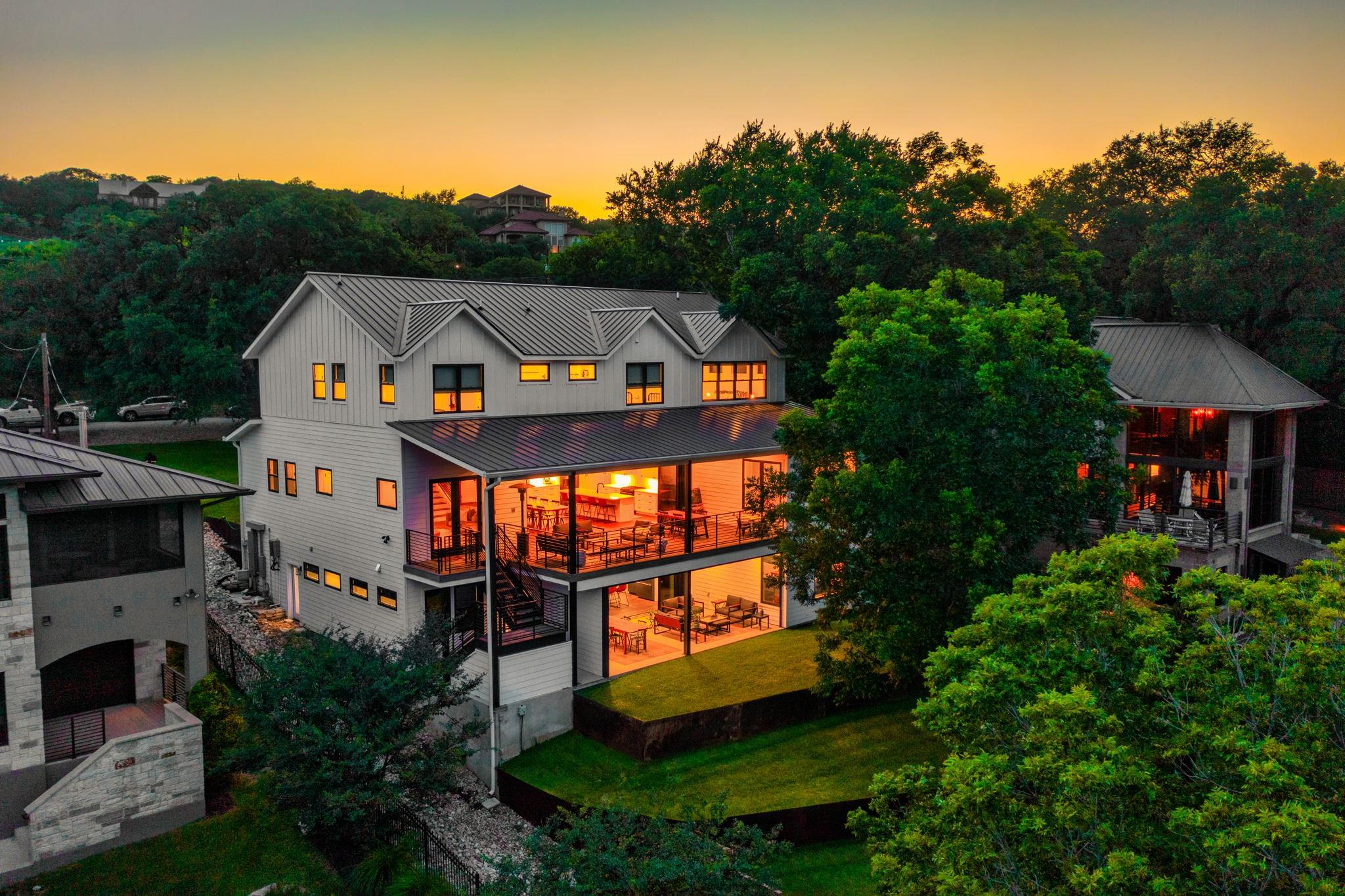 Welcome to an unparalleled waterfront haven! Nestled along the picturesque shores of Lake Austin, this magnificent property unveils a world of endless opportunities, making it a dream come true for astute buyers and investors. This remarkable modern farmhouse, sprawling across 5,413 square feet, presents the perfect synergy of dual living spaces under one roof, catering to multigenerational living, Airbnb hosting, or lucrative long-term rentals. Revel in the luxury of 80 feet of Lake Austin frontage, complete with a private boat dock, beckoning you to embark on water adventures or simply savor awe-inspiring vistas. The home's contemporary elegance, defined by open-concept design, soaring ceilings, and exquisite finishes, invites you to experience a harmonious blend of sophistication and comfort. Dual kitchens and living areas, each with its own entrance, grant the flexibility to effortlessly connect or separate the spaces, while the spectacular 21' panoramic glass doors seamlessly blur the lines between indoors and out. Step onto tiered outdoor living spaces, leading to the boat dock with dedicated slips for both boat and jet skis. Thoughtful extras abound, from golf cart access to a butler's pantry, laundry on every level, and advanced smart home features. The home is designed with foresight, including provisions for a future elevator, ensuring enduring functionality and accessibility. Lake Austin's constant water level guarantees year-round enjoyment of your waterfront paradise. Don't miss your chance to claim this exquisite gem as your next haven. Whether you seek a tranquil retreat, a lucrative investment, or the perfect fusion of both, this "2 Homes in 1" masterpiece is your portal to the ultimate Lake Austin lifestyle. Embrace the boundless possibilities and make it yours today! BONUS...LAKE AUSTIN is a CONSTANT LEVEL LAKE! **ALL FURNISHINGS NEGOTIABLE**