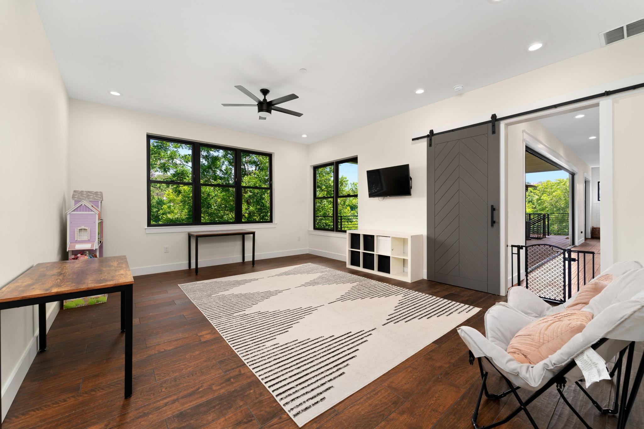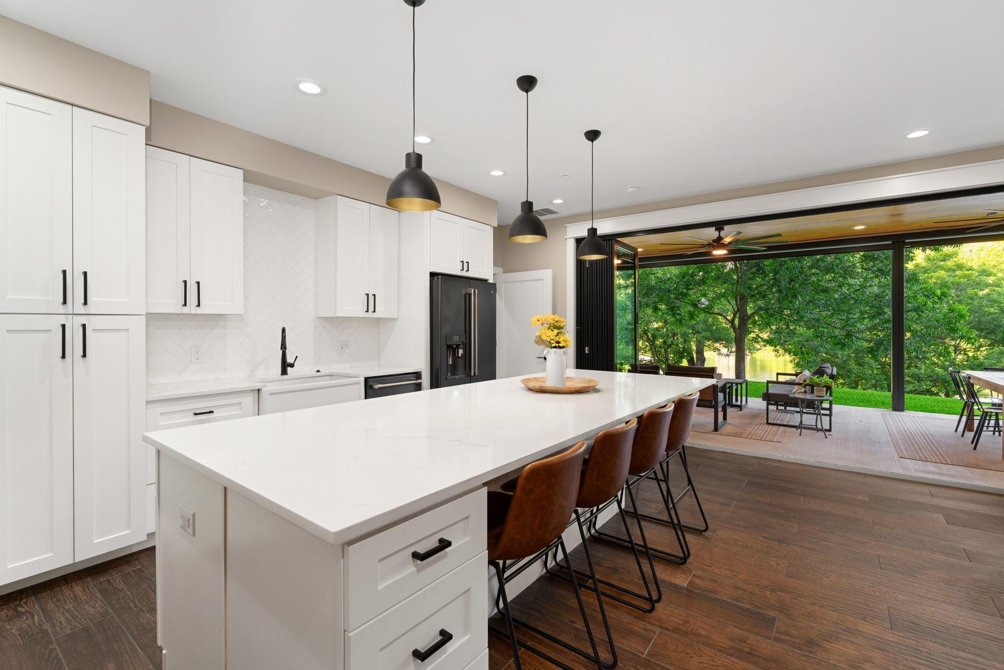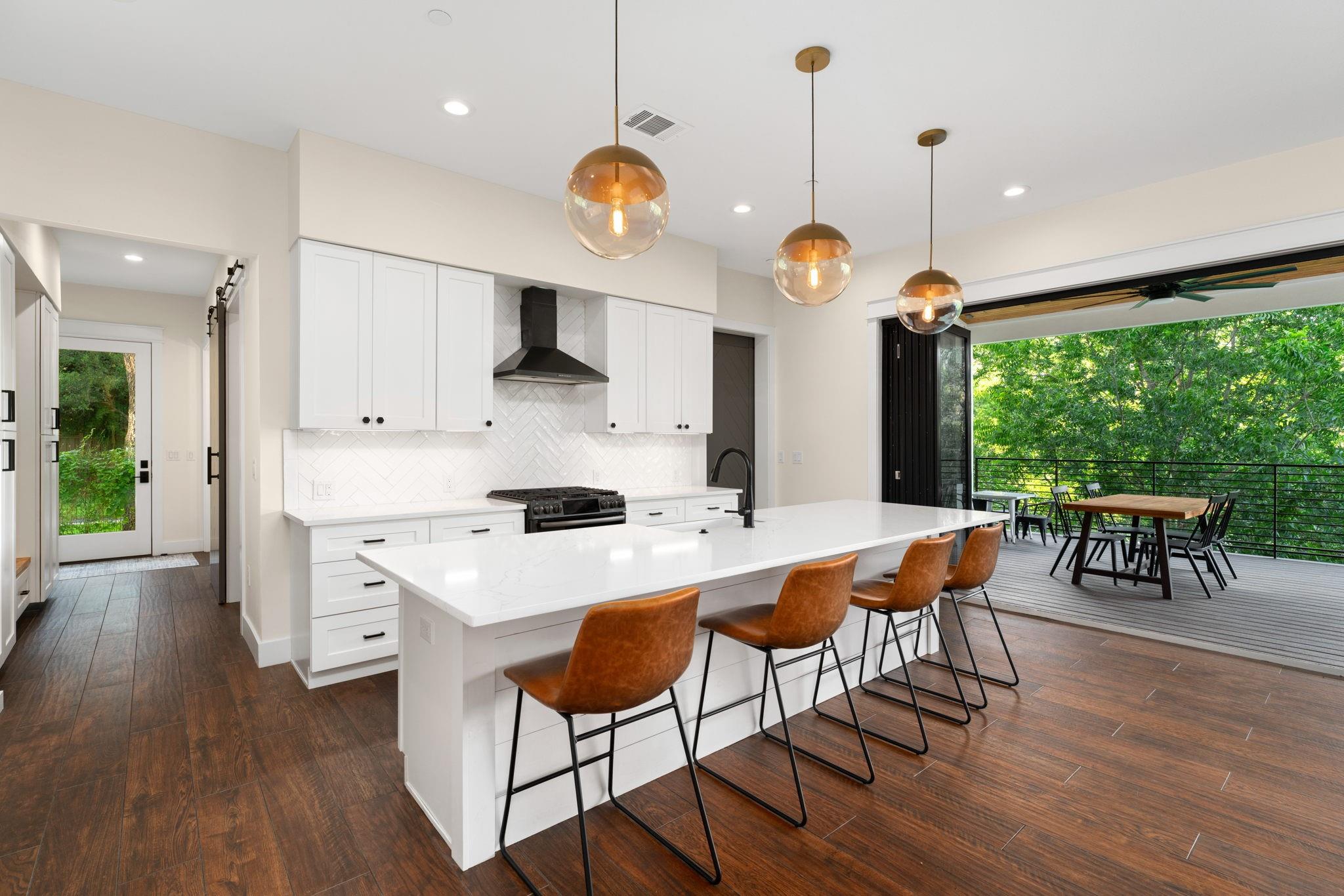 Welcome to an unparalleled waterfront haven! Nestled along the picturesque shores of Lake Austin, this magnificent property unveils a world of endless opportunities, making it a dream come true for astute buyers and investors. This remarkable modern farmhouse, sprawling across 5,413 square feet, presents the perfect synergy of dual living spaces under one roof, catering to multigenerational living, Airbnb hosting, or lucrative long-term rentals. Revel in the luxury of 80 feet of Lake Austin frontage, complete with a private boat dock, beckoning you to embark on water adventures or simply savor awe-inspiring vistas. The home's contemporary elegance, defined by open-concept design, soaring ceilings, and exquisite finishes, invites you to experience a harmonious blend of sophistication and comfort. Dual kitchens and living areas, each with its own entrance, grant the flexibility to effortlessly connect or separate the spaces, while the spectacular 21' panoramic glass doors seamlessly blur the lines between indoors and out. Step onto tiered outdoor living spaces, leading to the boat dock with dedicated slips for both boat and jet skis. Thoughtful extras abound, from golf cart access to a butler's pantry, laundry on every level, and advanced smart home features. The home is designed with foresight, including provisions for a future elevator, ensuring enduring functionality and accessibility. Lake Austin's constant water level guarantees year-round enjoyment of your waterfront paradise. Don't miss your chance to claim this exquisite gem as your next haven. Whether you seek a tranquil retreat, a lucrative investment, or the perfect fusion of both, this "2 Homes in 1" masterpiece is your portal to the ultimate Lake Austin lifestyle. Embrace the boundless possibilities and make it yours today! BONUS...LAKE AUSTIN is a CONSTANT LEVEL LAKE! **ALL FURNISHINGS NEGOTIABLE**