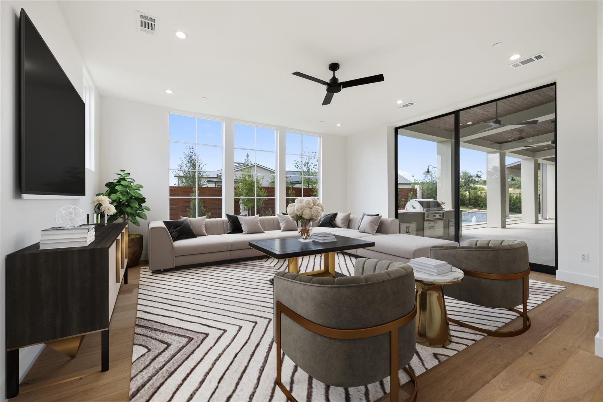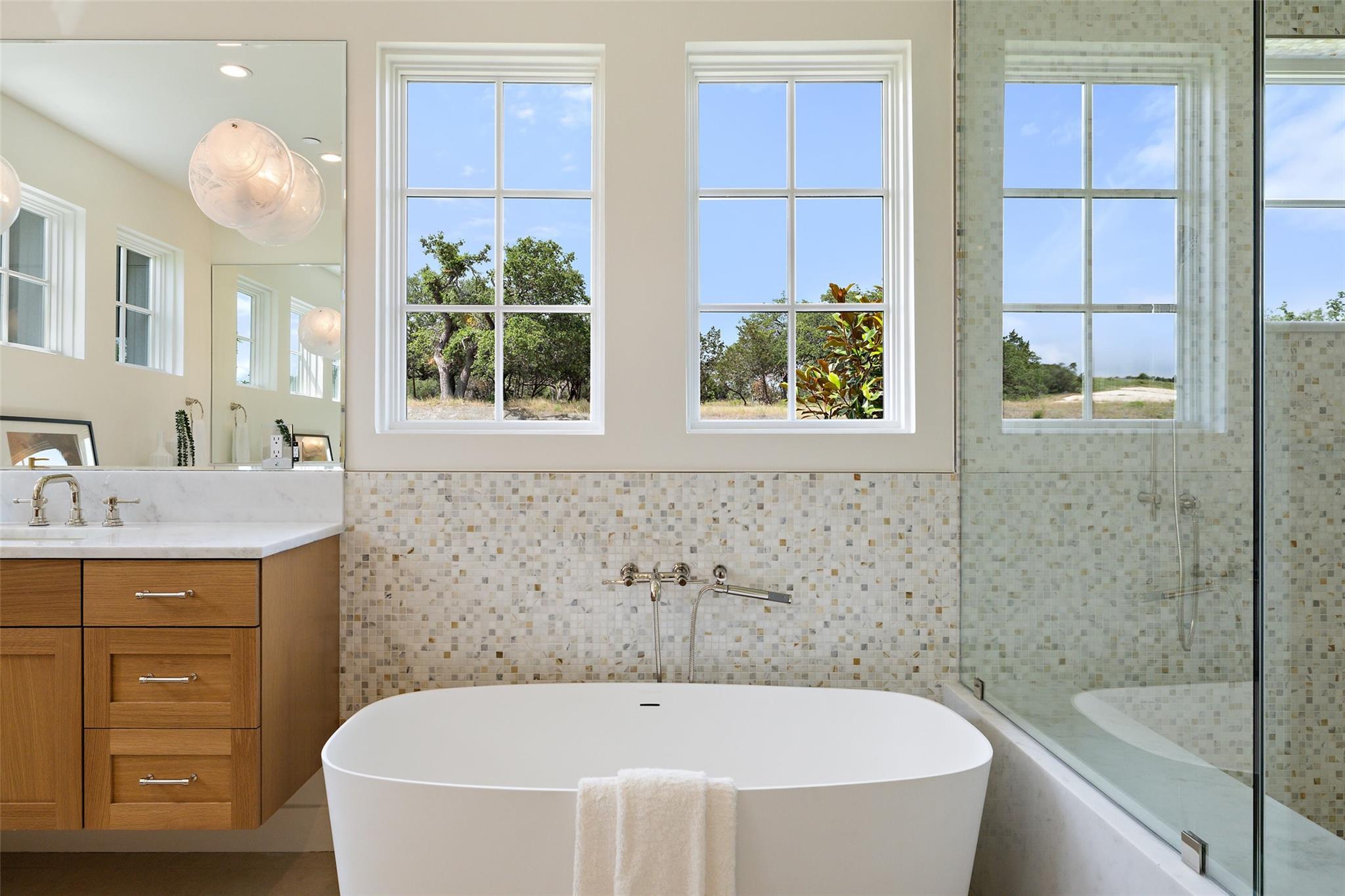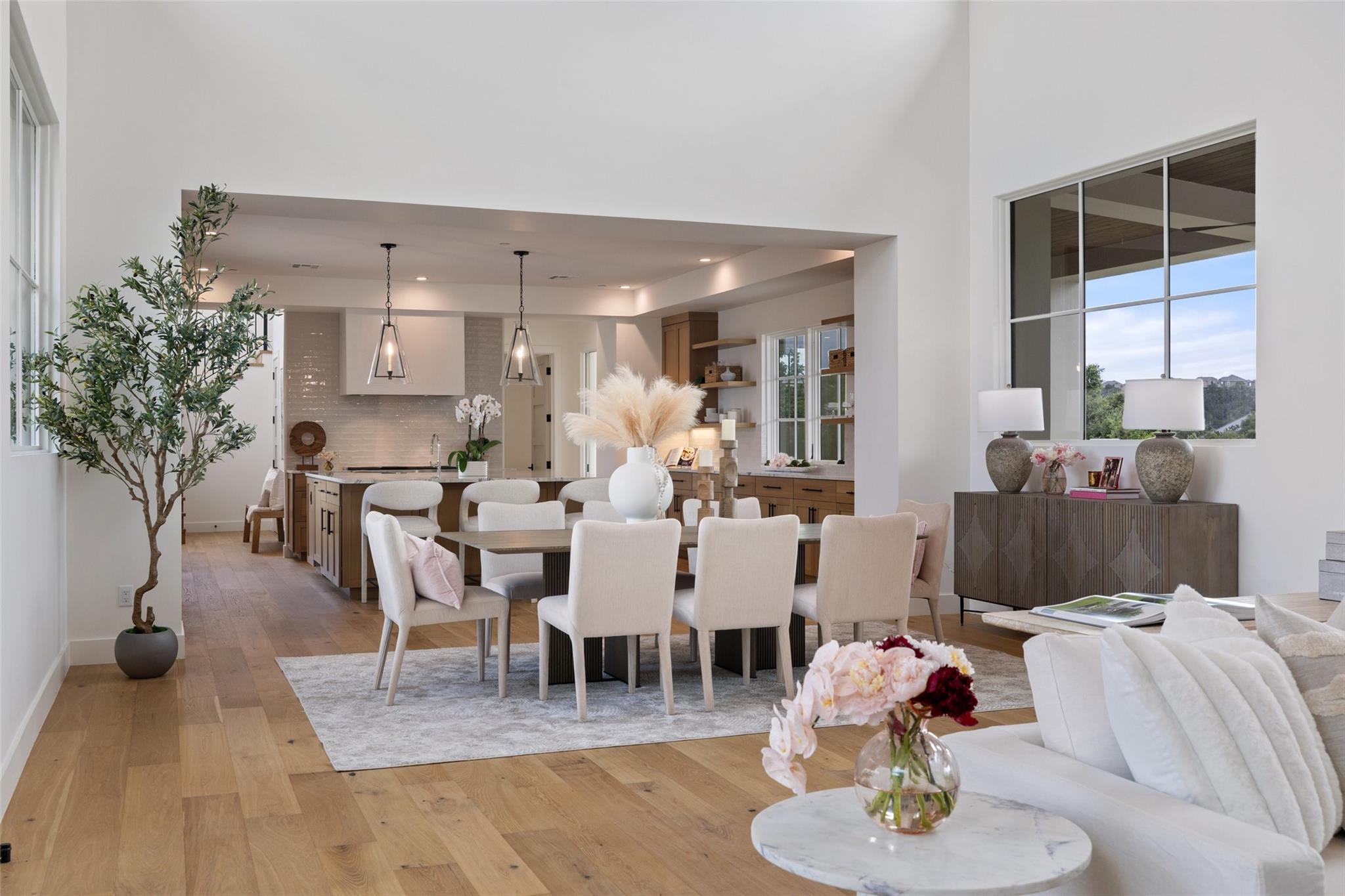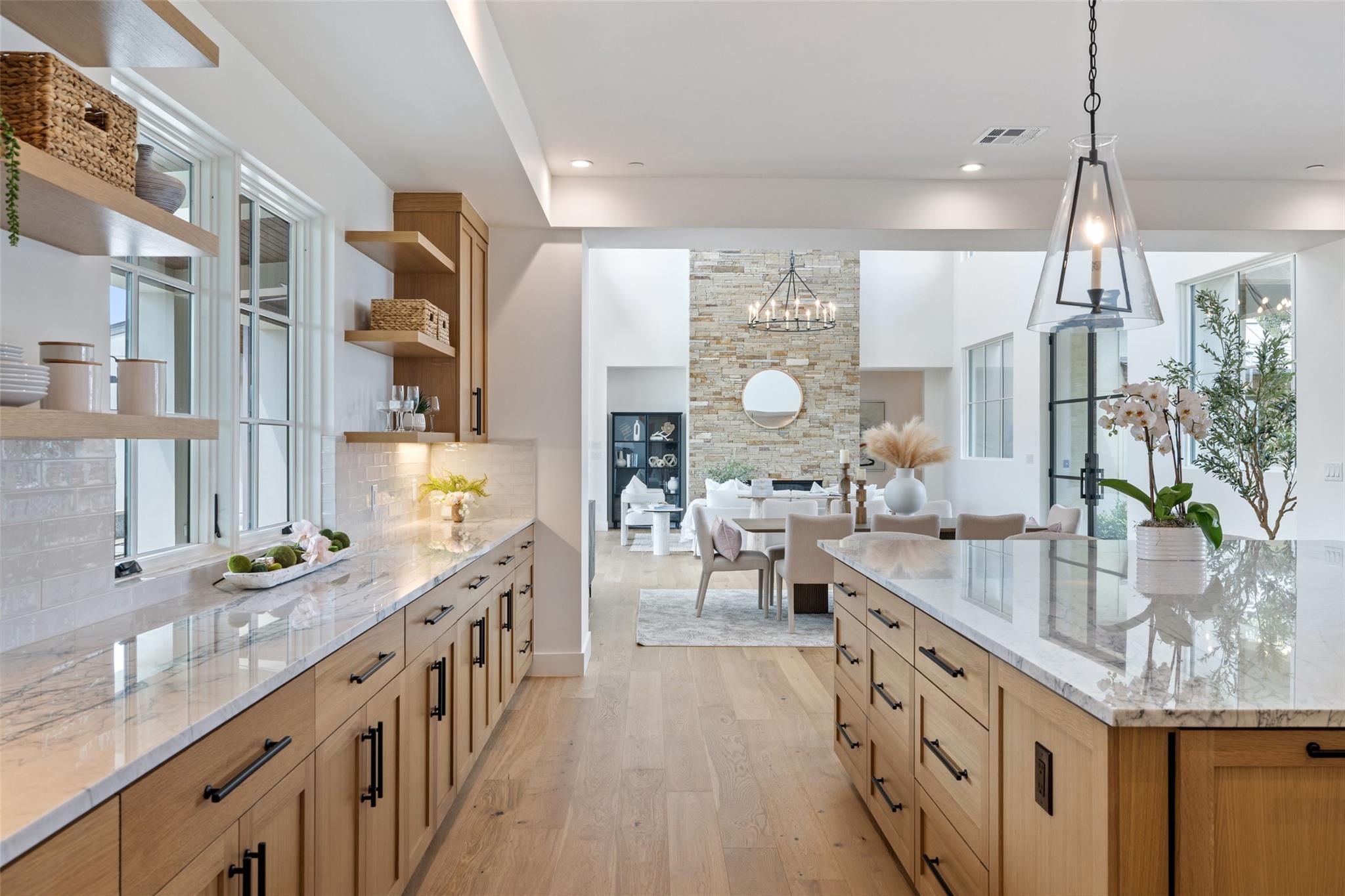 Timeless elegance awaits at Madrone Manor…This newly constructed masterpiece, designed by Ames Design Build, enjoys over $250k of builder upgrades—making it one of the most upgraded homes within the exclusive gates of Madrone Canyon. Step inside this two-story home to find soaring ceilings with stunning wood beams and expansive western sliding doors leading to outdoor entertainment. The home boasts 20-foot ceilings, creating a bright and airy ambiance throughout. The gourmet kitchen features professional Wolf Sub-Zero appliances, including a Wolf steam oven, an oversized island, quartzite countertops, and custom cabinetry. The walk-in pantry is plumbed for a refrigerator, adding ample storage. The living area features a floor-to-ceiling stone fireplace that creates a warm atmosphere. Outside, the serene backyard is designed for relaxation and privacy with an outdoor kitchen ideal for hosting gatherings. Enjoy the luxurious pool and spa, surrounded by thoughtfully designed landscaping. Just off the BBQ area, the media room is perfect for hosting parties while watching the game. The primary suite on the main floor offers a private retreat with a spa-like bathroom. The expansive walk-in closet includes built-in shelving and a dressing area. The other main floor bedroom enjoys a private entrance and can be used as an office, ideal for those who work from home or host visitors. Upstairs, two additional bedrooms have en-suite bathrooms, built-in desk areas, and a living area perfect for children or guests. The second story also boasts a peaceful balcony with stunning Hill Country views. This home includes a GENERAC Guardian 22kw GENERATOR for winter peace of mind, and the garage is equipped with an EV charger. Located minutes from the Hill Country Galleria and within 30 minutes of downtown Austin, this property offers the perfect blend of seclusion and accessibility. Whether you’re seeking a peaceful retreat or a luxurious space to entertain, Madrone Manor offers it all!