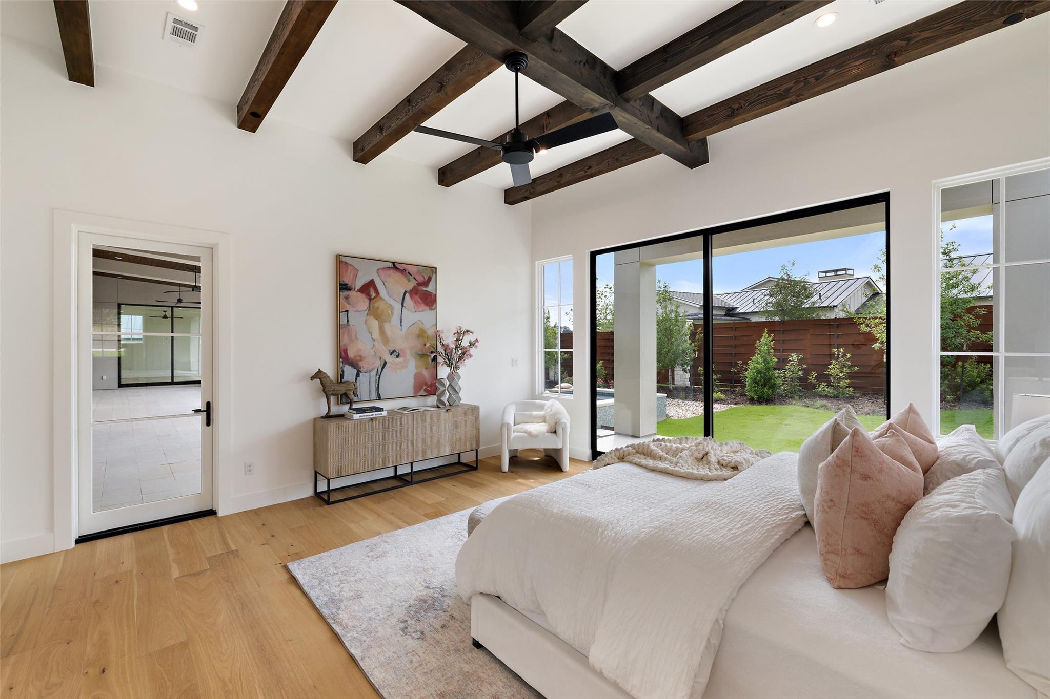 | Interior Features | Ceiling Fan(s), Beamed Ceilings, High Ceilings, Quartz Counters, Double Vanity, Eat-in Kitchen, In-Law Floorplan, Kitchen Island, Multiple Living Areas, Natural Woodwork, Open Floorplan, Pantry, Primary Bedroom on Main, Soaking Tub, Storage, Track Lighting, Walk-In Closet(s) | |
