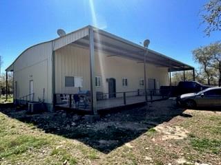 45+- Oak covered acres with beautiful custom Barndominium. The home offers 3 large bedrooms, & 2 full baths. The primary bedroom has a large closet. The ensuite bth has dual sinks, skplit vanity, custom mirrors, garden tub & kitchen has quartz countertops, farm sink, abundance of counter top & cabinet space, double ovens, electric glass cooktop, dishwasher, built in microwave and a large walk in pantry with room for freezer or refrigerator and full size washer and dryer. The home is serviced by PEC electric co, water well and septic. The Barndominium exterior walls are insulated with encapsulated spray foam as well as the interior walls, this includes the shop. The shop has a regular 10 ft roll up door and a 16" roll up door & approx 1200 sq ft. The land has heavy tree cover of live oak, red oak, elm and cedar. Hunting is excellent: Deer, Turkey and Dove. This is a Must See!!! Call Today!