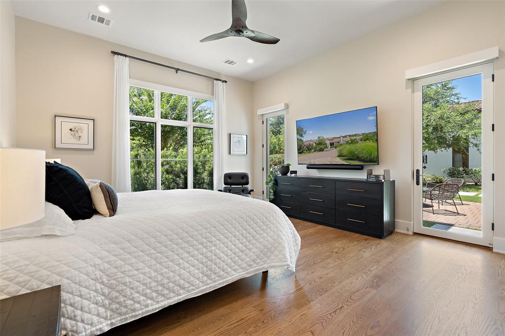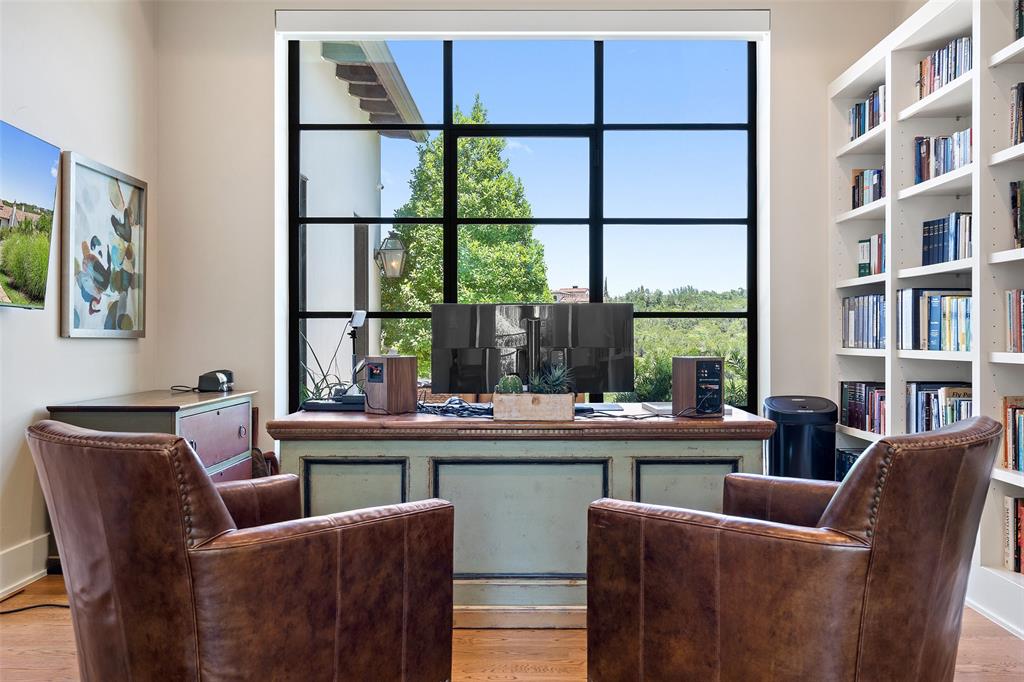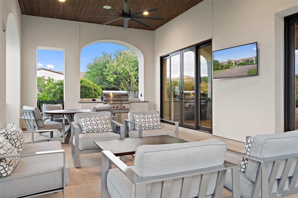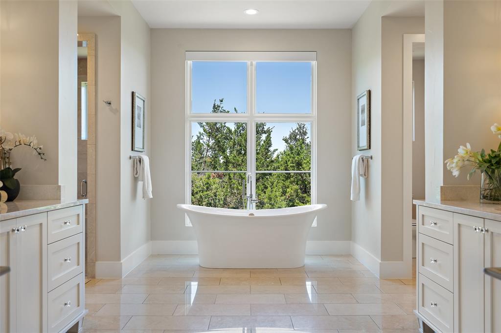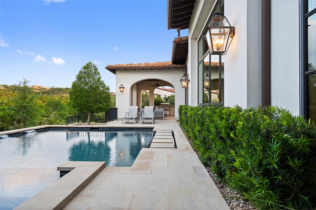 This Santa Barbara style, single story home is a private oasis in desirable Amarra. Situated on a dead end street on over 3 acres with a protected greenbelt view, this former Heyl Homes model perfectly blends modern and timeless design in a functional floor plan. With 4 bedrooms, each with a private ensuite bath, a dedicated office with a view, 2 living areas, and 2 dining areas, there is plenty of space to spread out or gather both inside and out. The front fenced courtyard features an outdoor fireplace while the back patio has the pool and spa as well as a covered porch and grill counter. With a 3 car garage and an expanded driveway, mature landscaping, and owner upgrades, this property a stand out in Barton Creek.