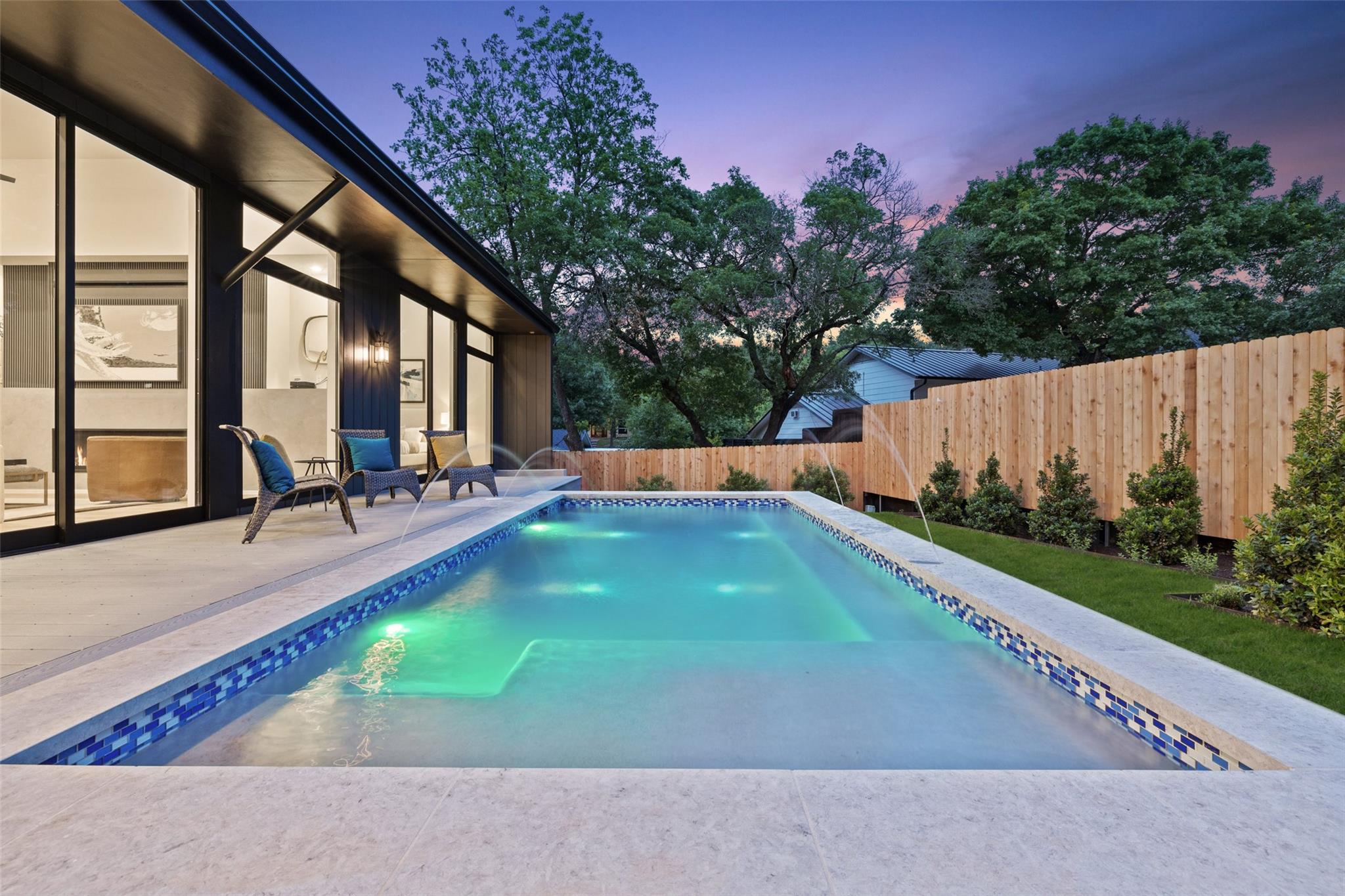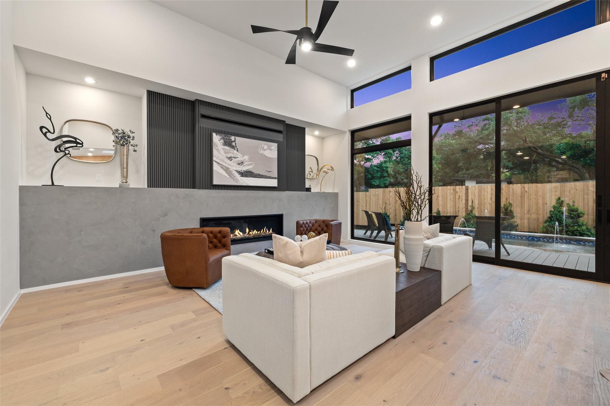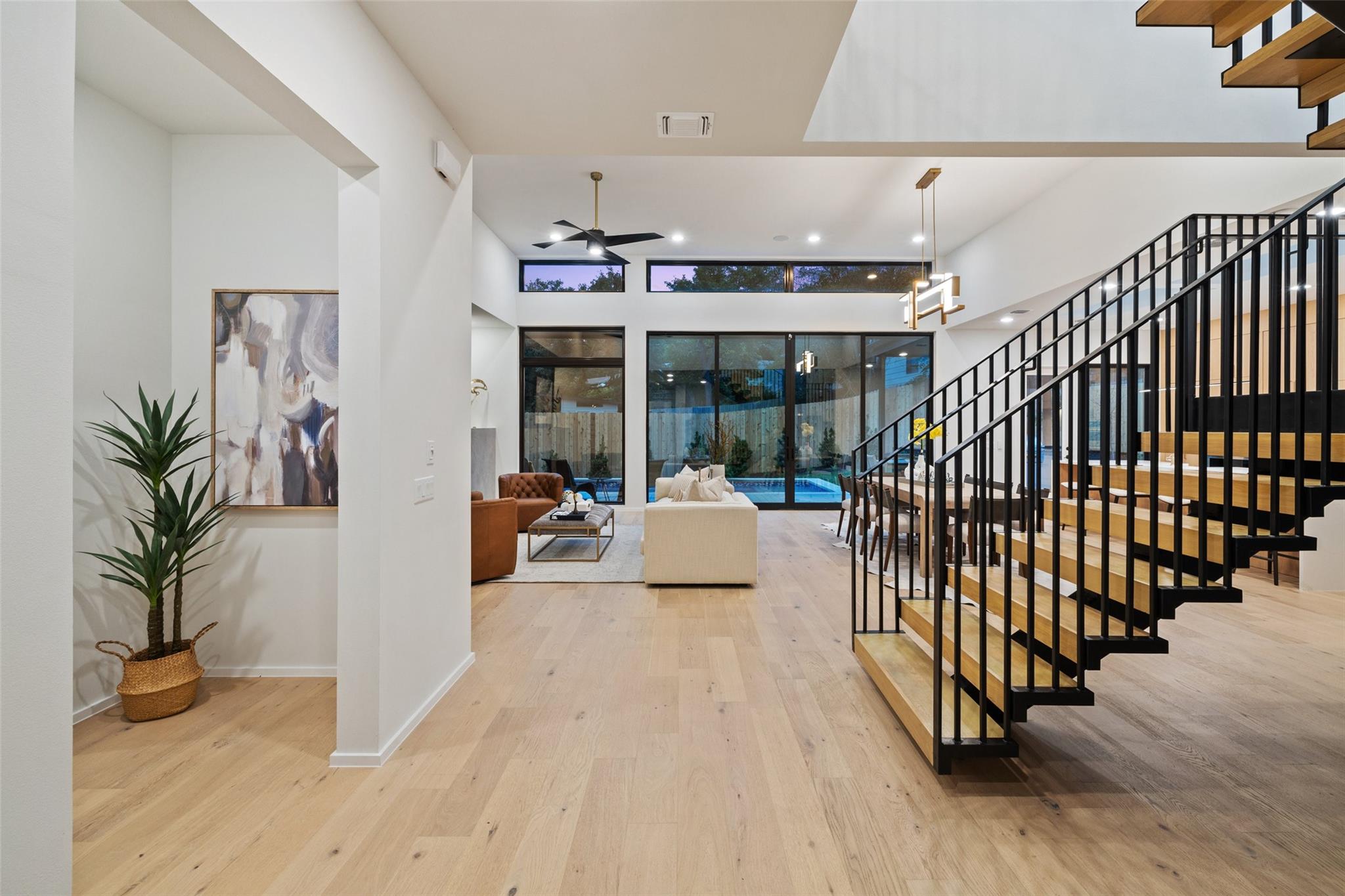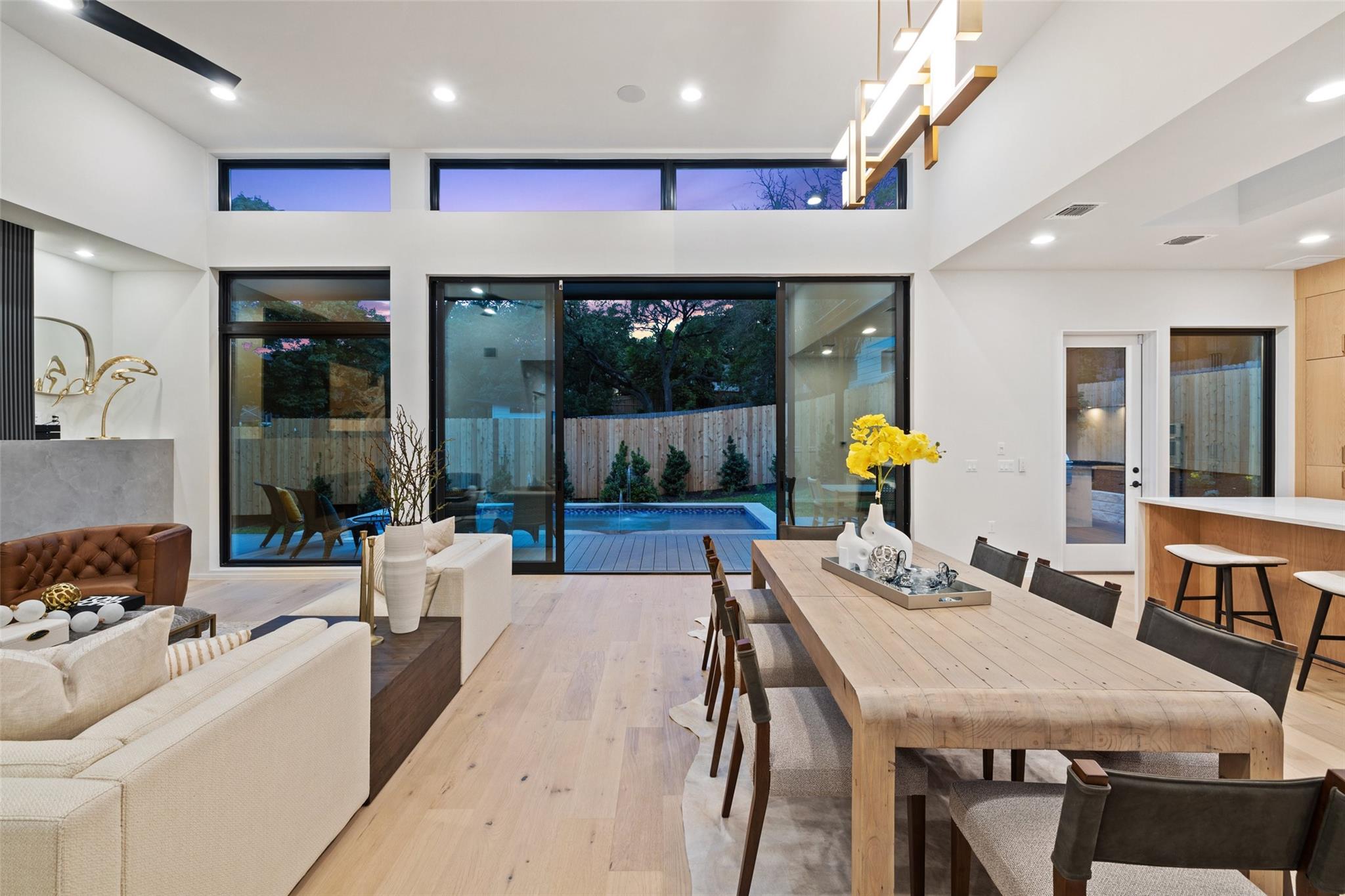 Welcome to 2149 Barton Hills Drive, Where Luxury and Convenience Meet. This Stunning New Build by Rivendale Homes features two floors of Excellence. Step inside to find a light-filled retreat with a stunning kitchen completed with abundant storage and upgraded luxury hardwood floors throughout. The kitchen opens to the living and dining areas, featuring large glass sliding doors leading to a private deck, fenced yard and Pool. The Primary bedroom suite, located on the first level, boasts its own entrance to the rear year and a sophisticated en-suite bath with an oversized shower & soaking tub, spacious vanity, and refined tile work. The generously-sized office can be found on the first level / or Extra Bedroom downstairs, With two extra bedrooms upstairs, including a flex space. Enjoy city living with walkability just moments away from Downtown Austin, Lady Bird lake, Zilker Park, and the south Congress District. NO HOA. 1,2,10 Warranty.