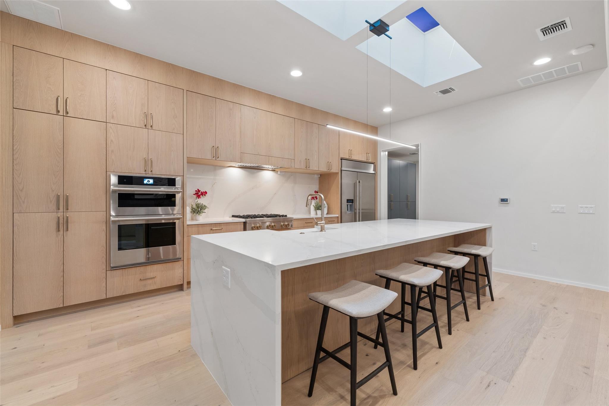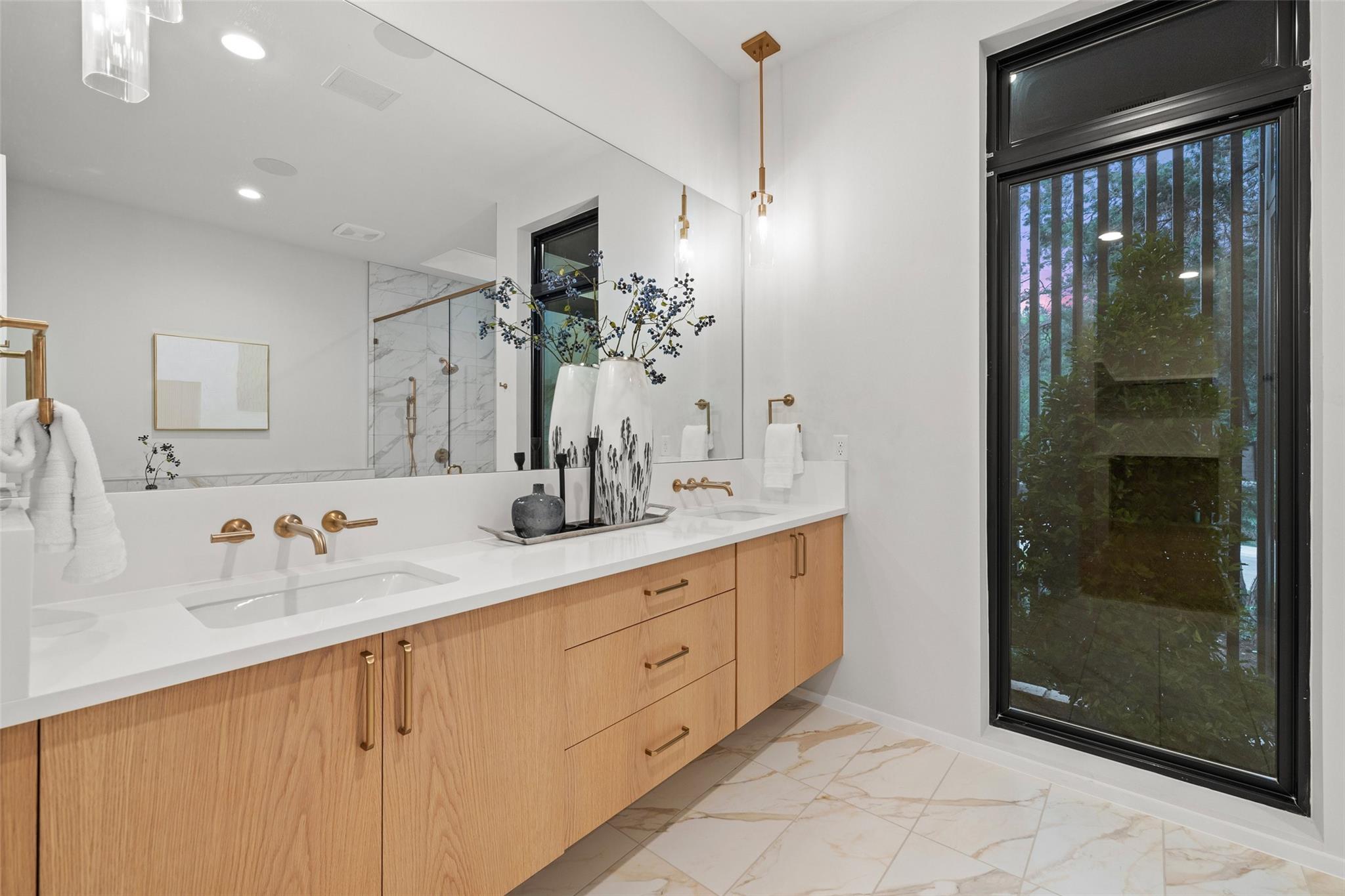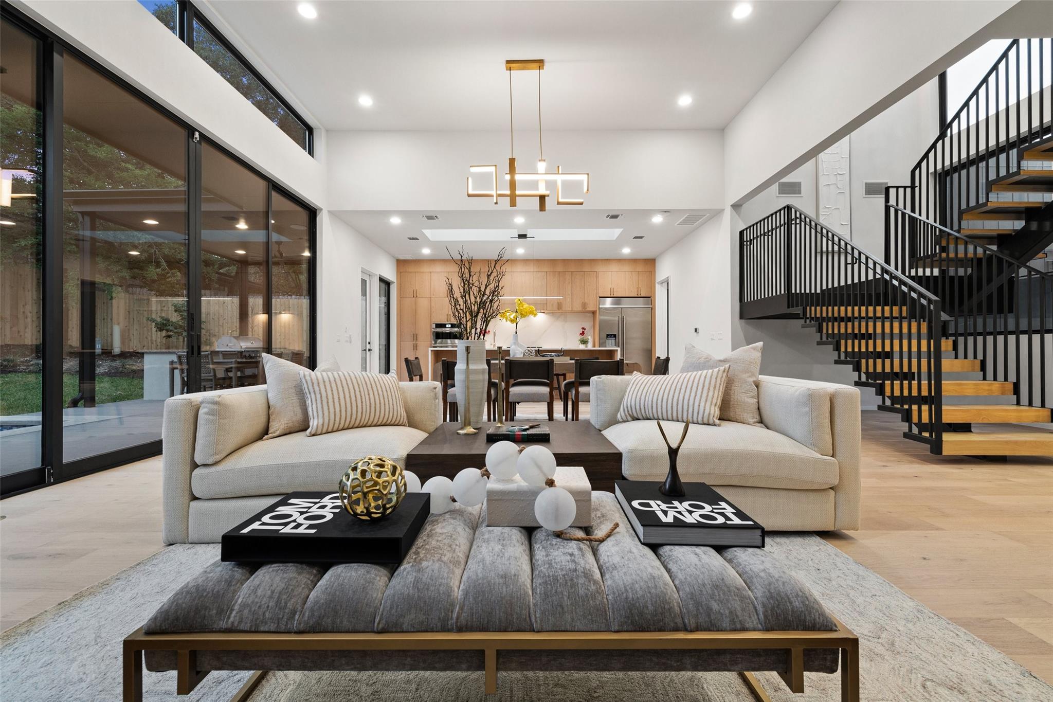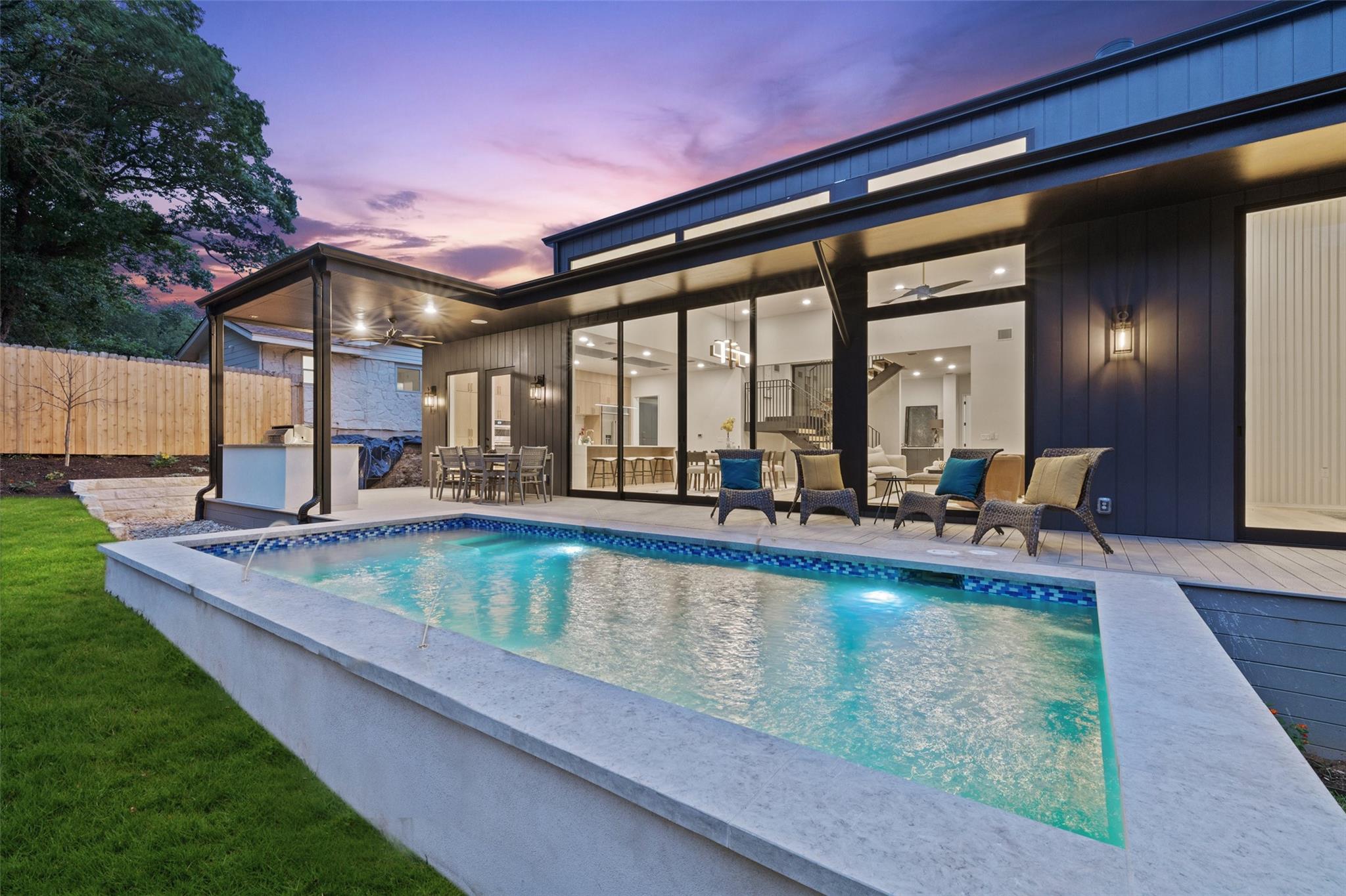 Welcome to 2149 Barton Hills Drive, Where Luxury and Convenience Meet. This Stunning New Build by Rivendale Homes features two floors of Excellence. Step inside to find a light-filled retreat with a stunning kitchen completed with abundant storage and upgraded luxury hardwood floors throughout. The kitchen opens to the living and dining areas, featuring large glass sliding doors leading to a private deck, fenced yard and Pool. The Primary bedroom suite, located on the first level, boasts its own entrance to the rear year and a sophisticated en-suite bath with an oversized shower & soaking tub, spacious vanity, and refined tile work. The generously-sized office can be found on the first level / or Extra Bedroom downstairs, With two extra bedrooms upstairs, including a flex space. Enjoy city living with walkability just moments away from Downtown Austin, Lady Bird lake, Zilker Park, and the south Congress District. NO HOA. 1,2,10 Warranty.