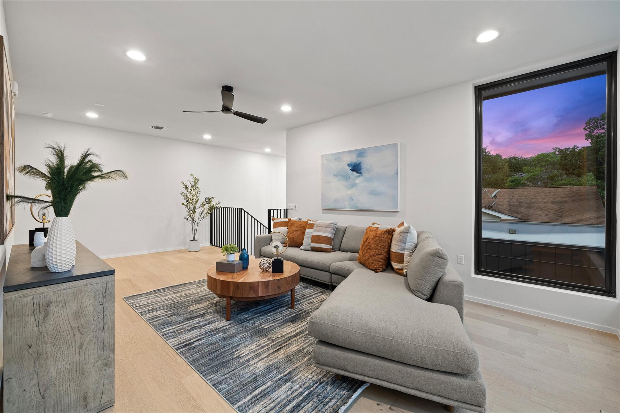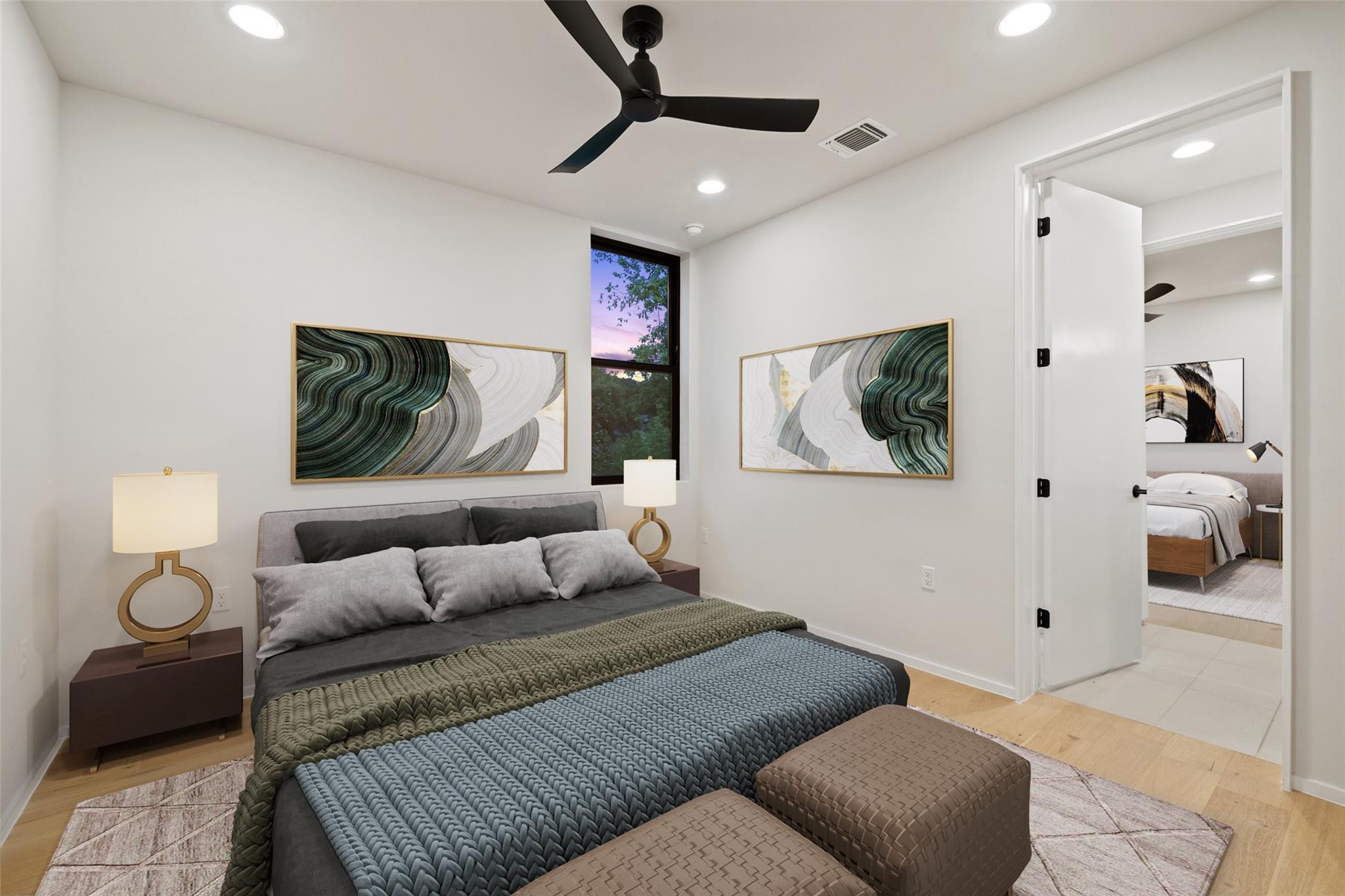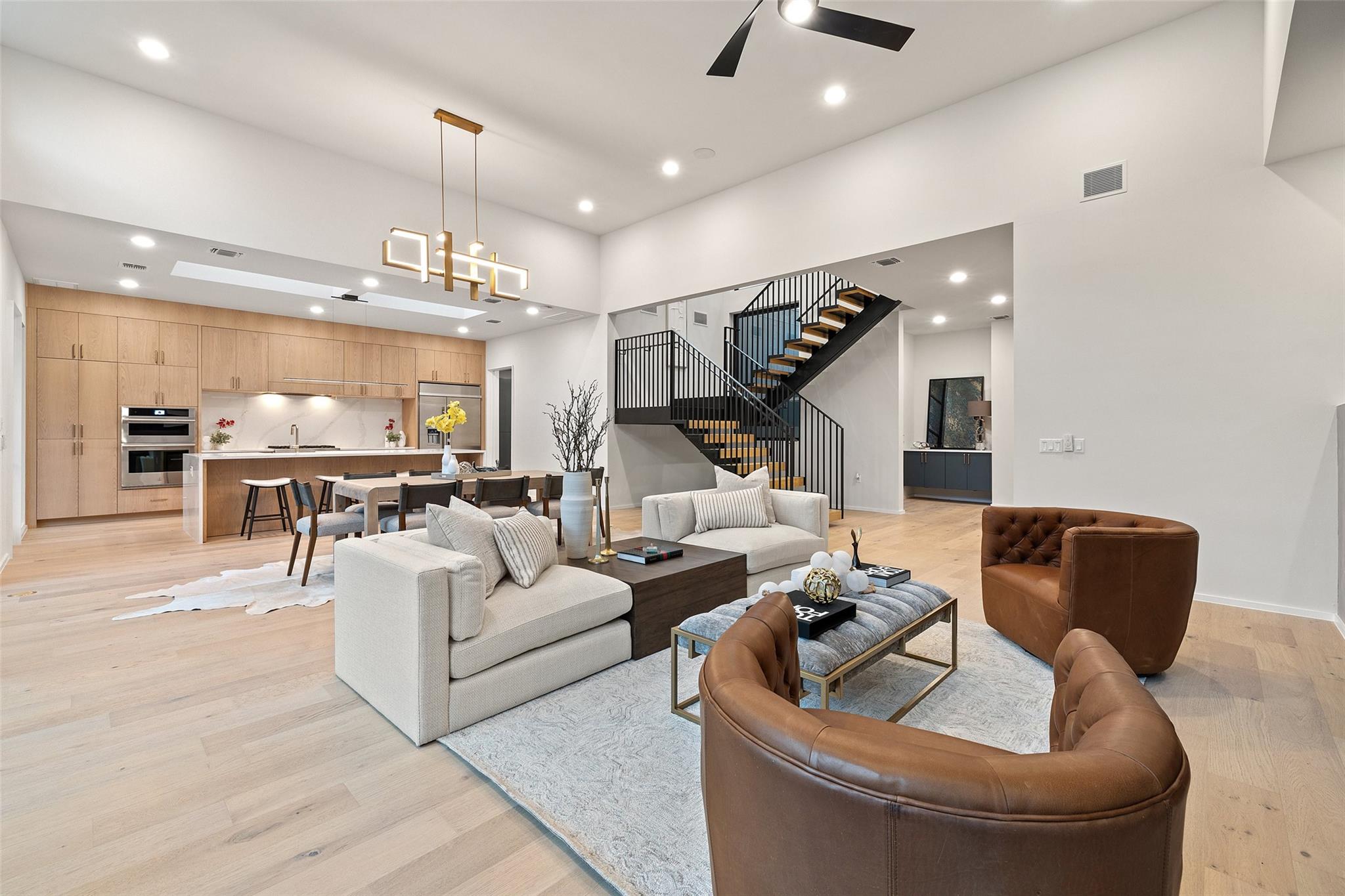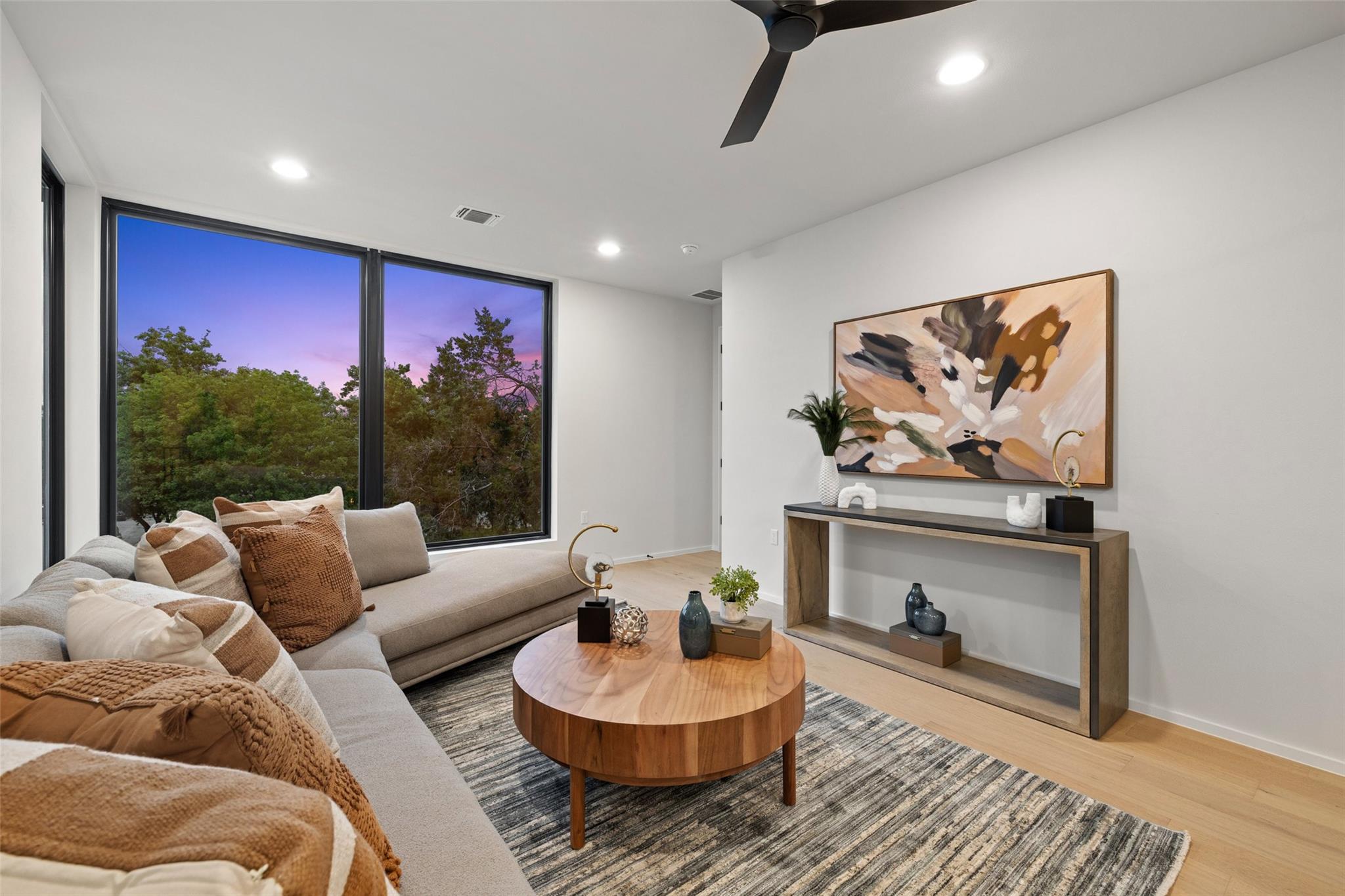 Welcome to 2149 Barton Hills Drive, Where Luxury and Convenience Meet. This Stunning New Build by Rivendale Homes features two floors of Excellence. Step inside to find a light-filled retreat with a stunning kitchen completed with abundant storage and upgraded luxury hardwood floors throughout. The kitchen opens to the living and dining areas, featuring large glass sliding doors leading to a private deck, fenced yard and Pool. The Primary bedroom suite, located on the first level, boasts its own entrance to the rear year and a sophisticated en-suite bath with an oversized shower & soaking tub, spacious vanity, and refined tile work. The generously-sized office can be found on the first level / or Extra Bedroom downstairs, With two extra bedrooms upstairs, including a flex space. Enjoy city living with walkability just moments away from Downtown Austin, Lady Bird lake, Zilker Park, and the south Congress District. NO HOA. 1,2,10 Warranty.