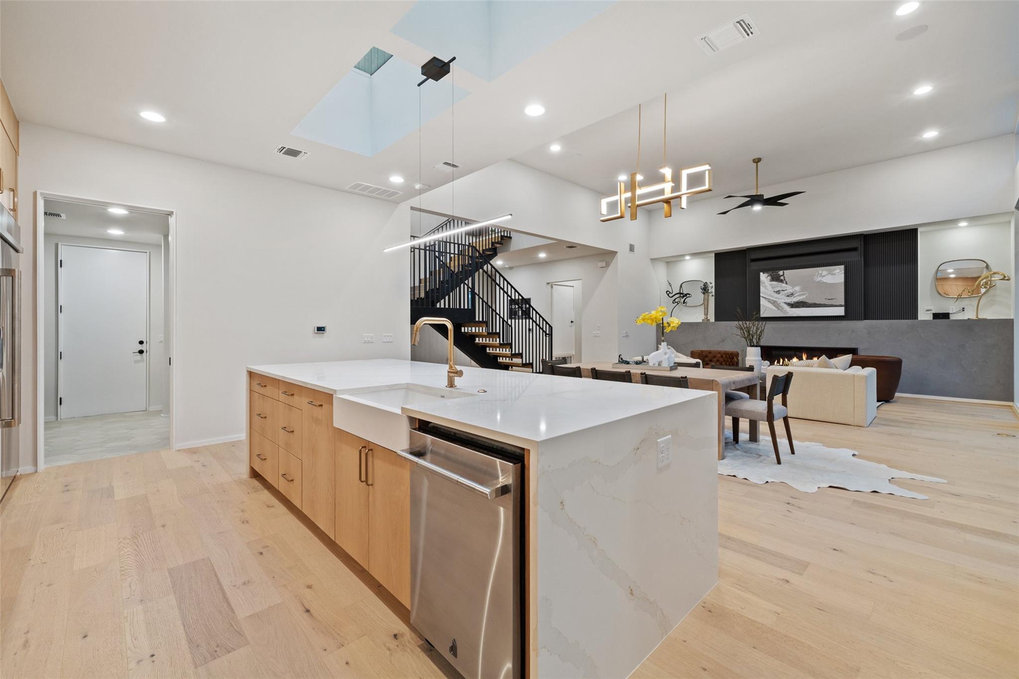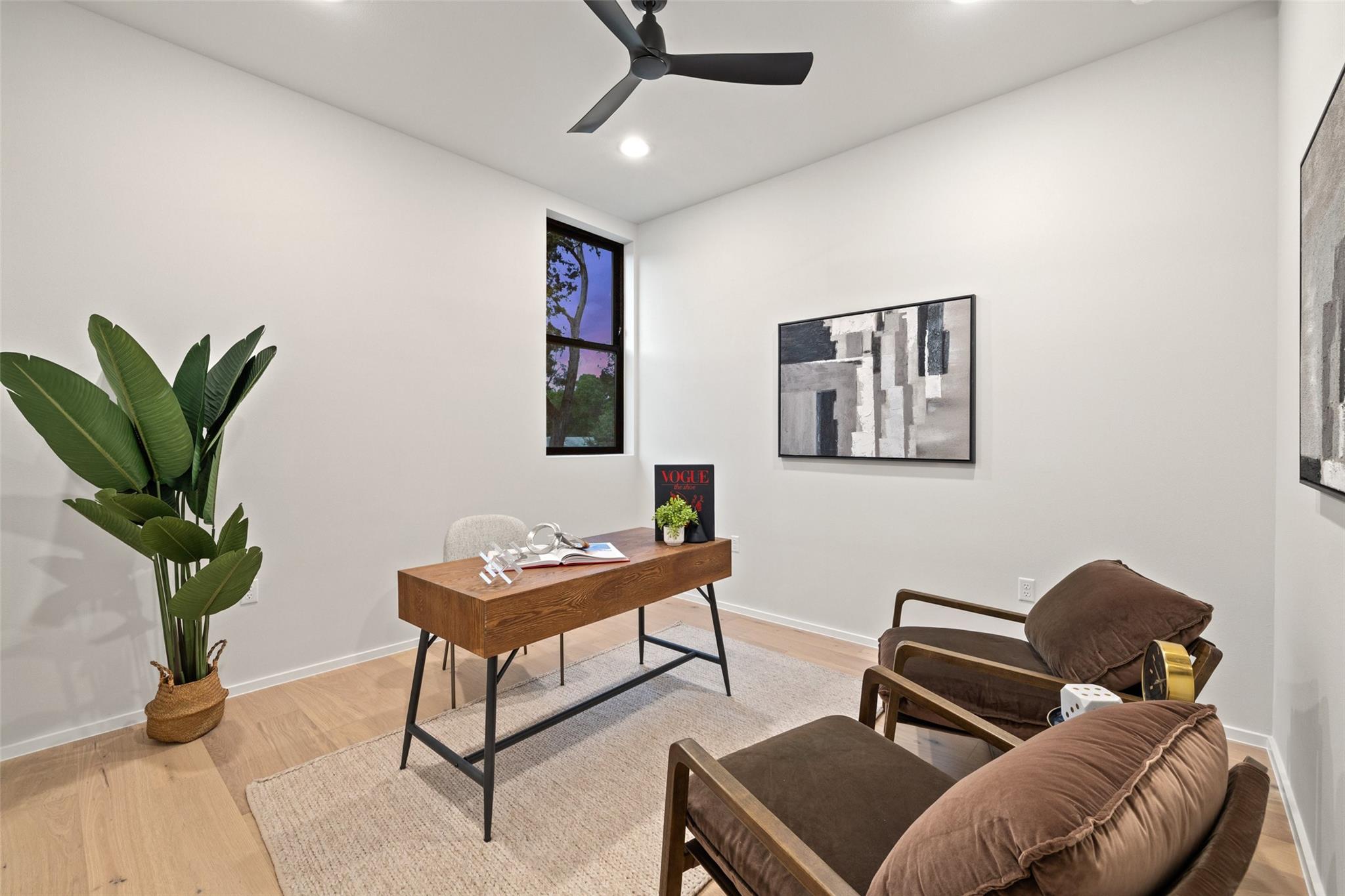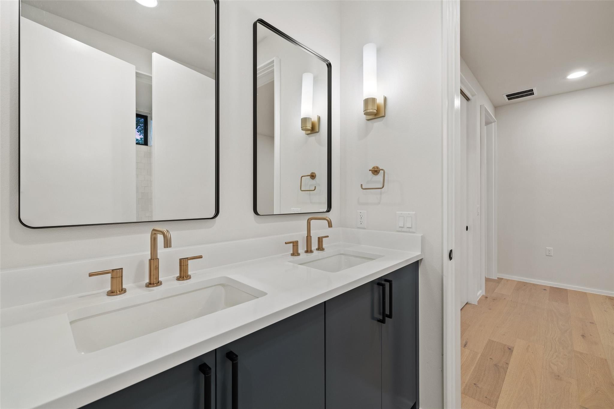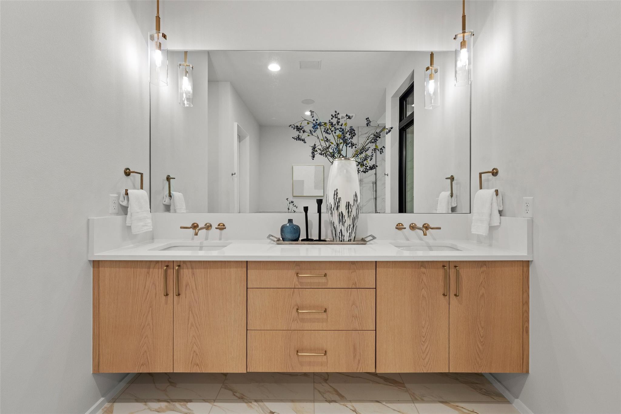 Welcome to 2149 Barton Hills Drive, Where Luxury and Convenience Meet. This Stunning New Build by Rivendale Homes features two floors of Excellence. Step inside to find a light-filled retreat with a stunning kitchen completed with abundant storage and upgraded luxury hardwood floors throughout. The kitchen opens to the living and dining areas, featuring large glass sliding doors leading to a private deck, fenced yard and Pool. The Primary bedroom suite, located on the first level, boasts its own entrance to the rear year and a sophisticated en-suite bath with an oversized shower & soaking tub, spacious vanity, and refined tile work. The generously-sized office can be found on the first level / or Extra Bedroom downstairs, With two extra bedrooms upstairs, including a flex space. Enjoy city living with walkability just moments away from Downtown Austin, Lady Bird lake, Zilker Park, and the south Congress District. NO HOA. 1,2,10 Warranty.