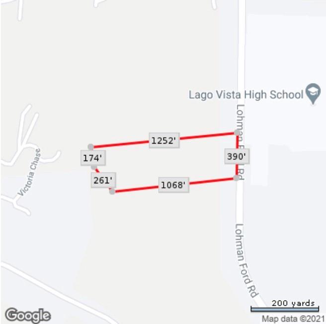 This lot could be used for anything! It’s across from Lago Vista high school and would be a great place for the youth to convene after school or could be a multi family complex. Both are drastically needed in the Lago Vista area. This is unrestricted, ETJ land. It’s 10.5 acres of relatively flat, some rolling hills that allow lake views from the property. Easy access from Lohman Ford; right in the heart of Lago Vista. Suitable for multi family, a single-family estate, strip center, agriculture and farm, camping, hotel, subdivide for a small community, RV park, mobile homes…... anything that comes to mind. There is a septic on the property and a well, but the current owners have never used either one. There is a possibility to annex into the city of Lago Vista. The tax rate is very low on ETJ land.
