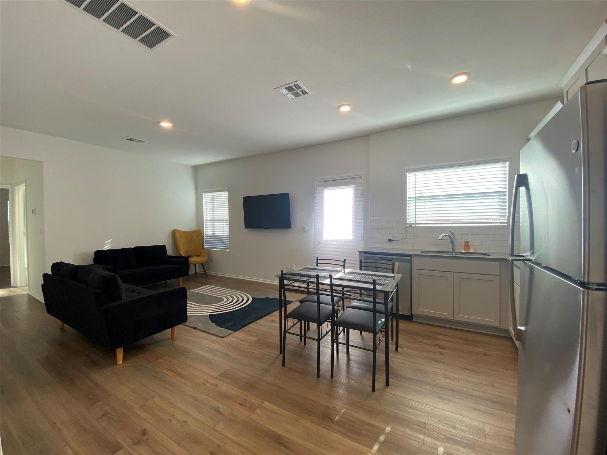 This fully furnished MIL suite offers the best of modern living! Complete with a separate entrance (as well as exit to backyard), bedroom, living area and kitchenette, perfect for independent family members and guests. The fully-equipped kitchenette (no stove) comes complete with stainless-steel appliances and sleek cabinetry. Washer and dryer included. Access to HOA amenities, including community pool. Utilities included. No pets. $295 admin fee due at lease signing